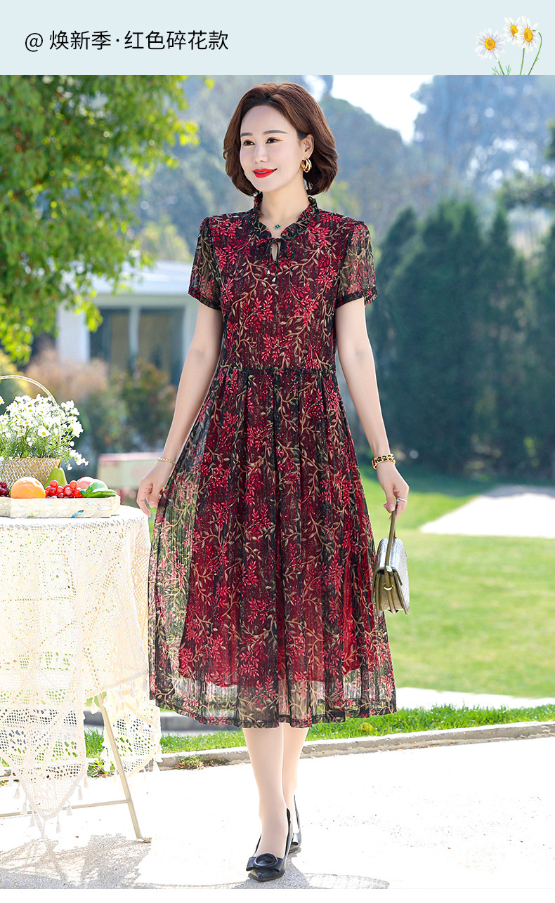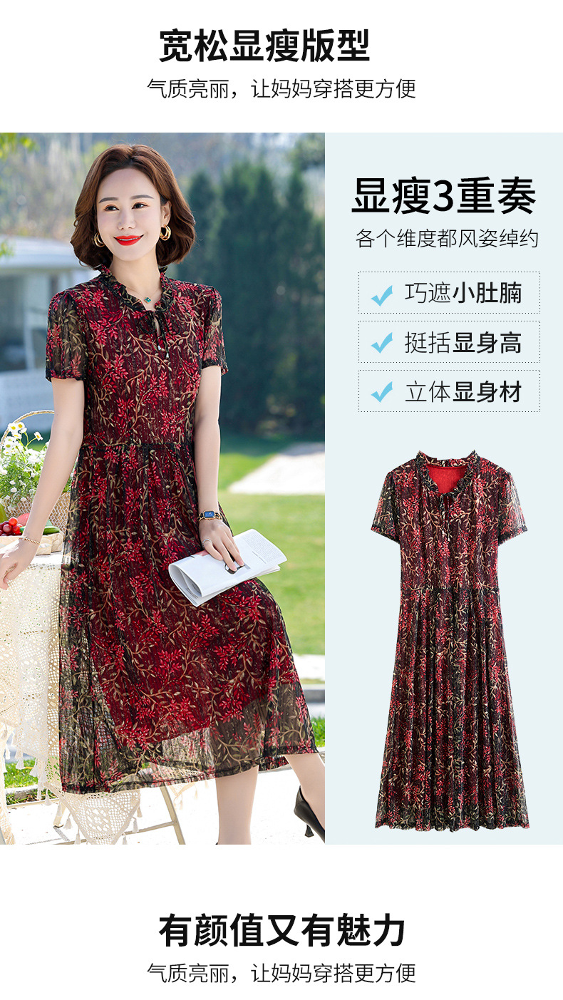 YCEAW-2318中年台湾网纱连衣裙女品牌短袖时尚新款年轻妈妈夏装洋气过膝裙子