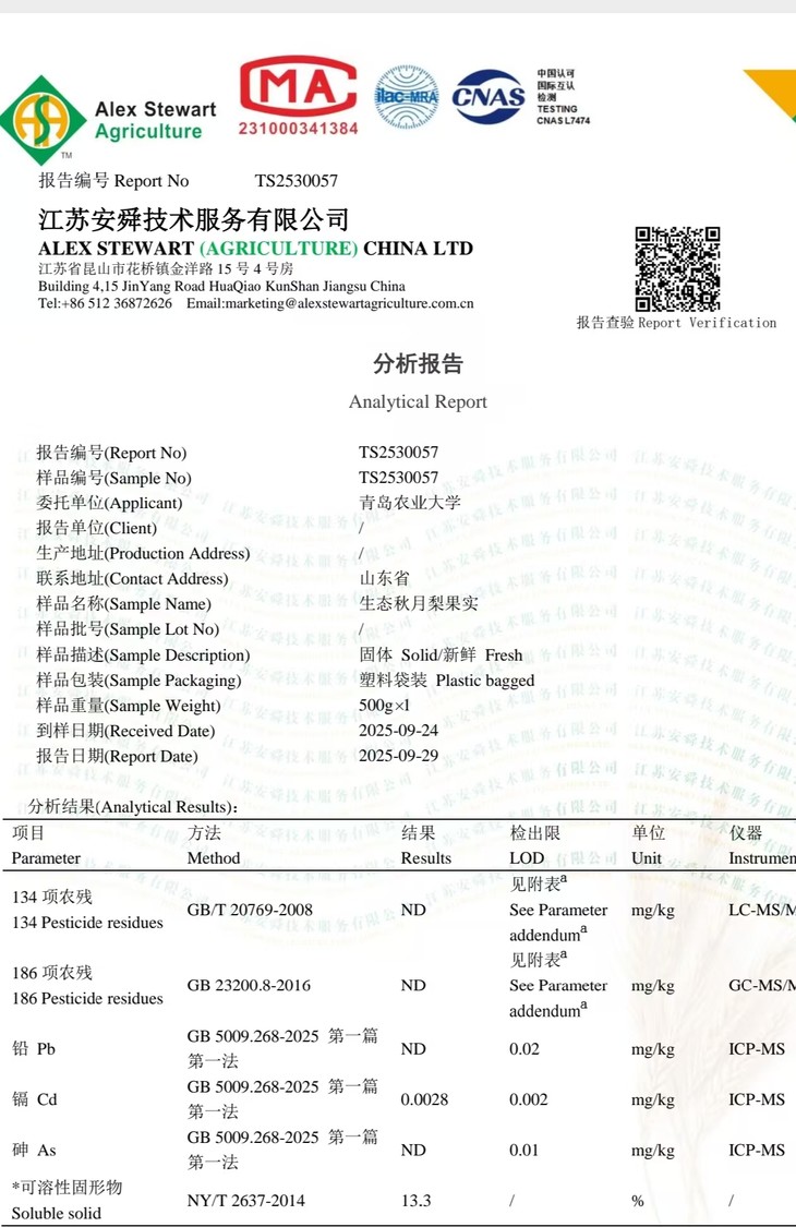 今年绿手指的小伙伴也去了果园实地考察,上架前做了检测,无农残检出。