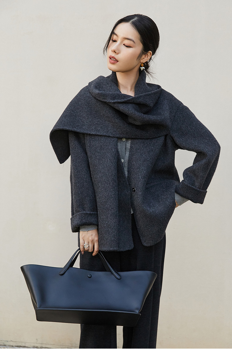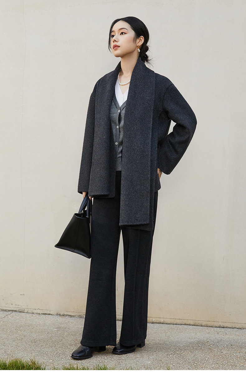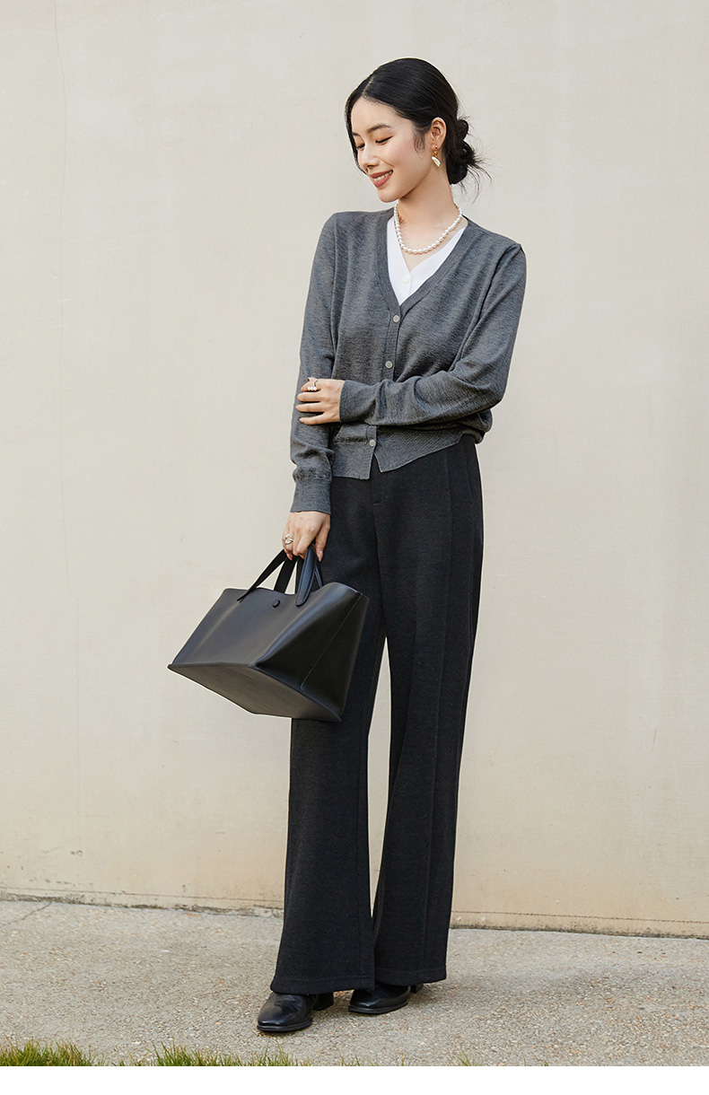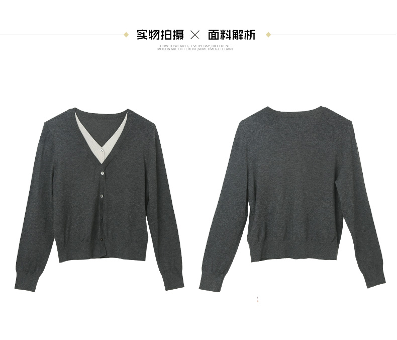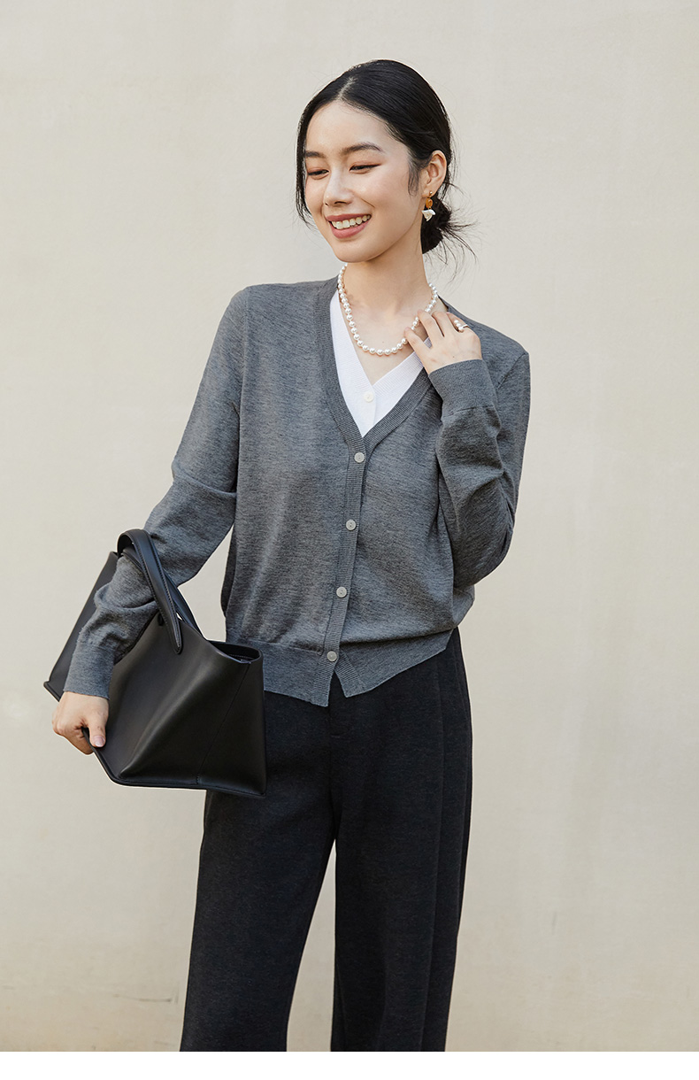 灰色 V 领针织开衫女 秋冬季薄款简约气质 单排扣外搭短款毛衣外套