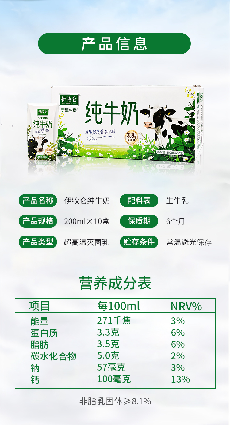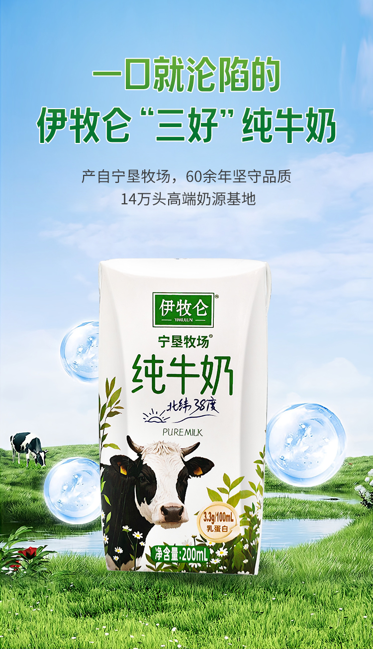 宁垦牧场·伊牧仑纯牛奶200ml*10盒 伊牧仑“三好”纯牛奶