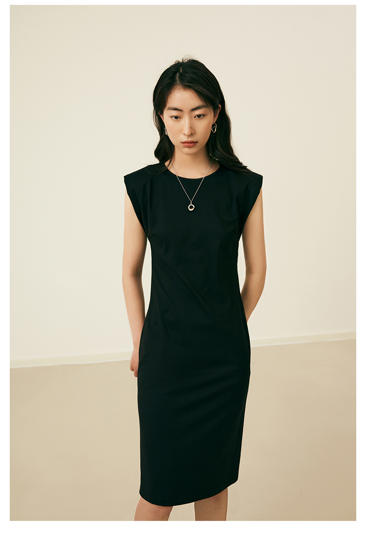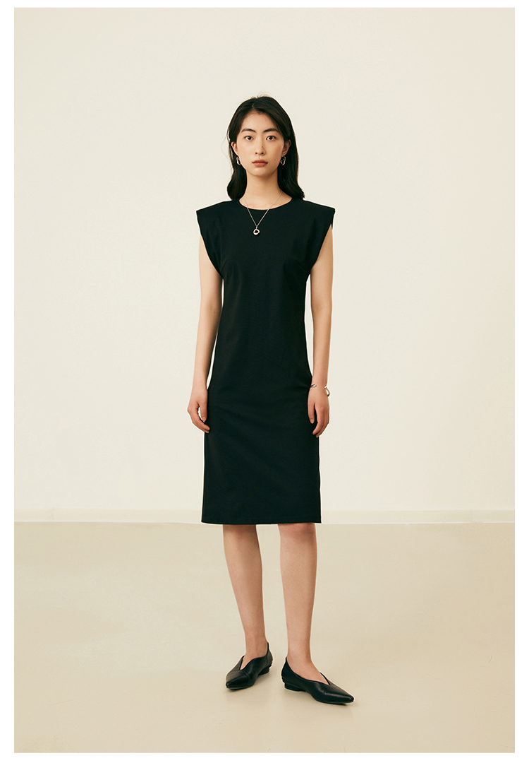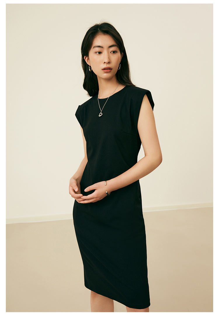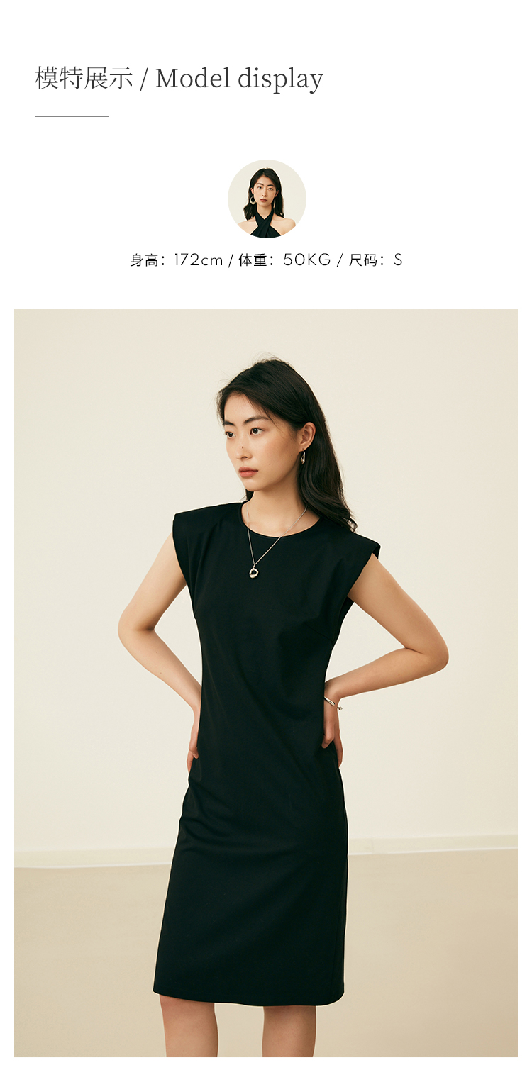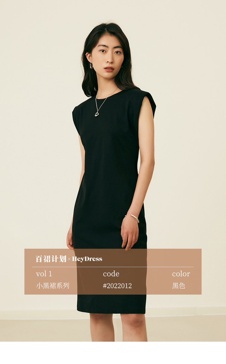 HeyDress复古宽肩连衣裙女夏季收腰直筒小黑裙法式气质小众裙子