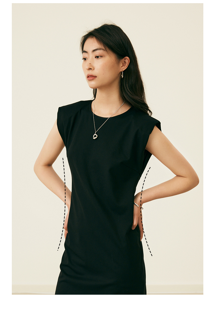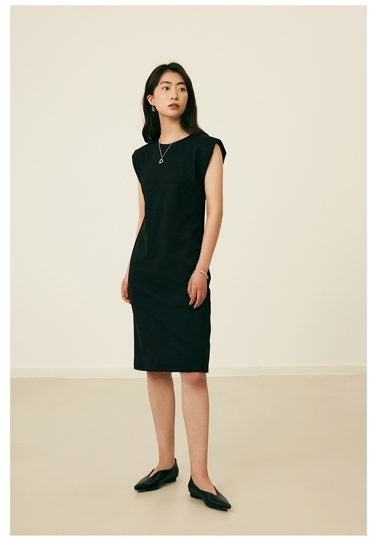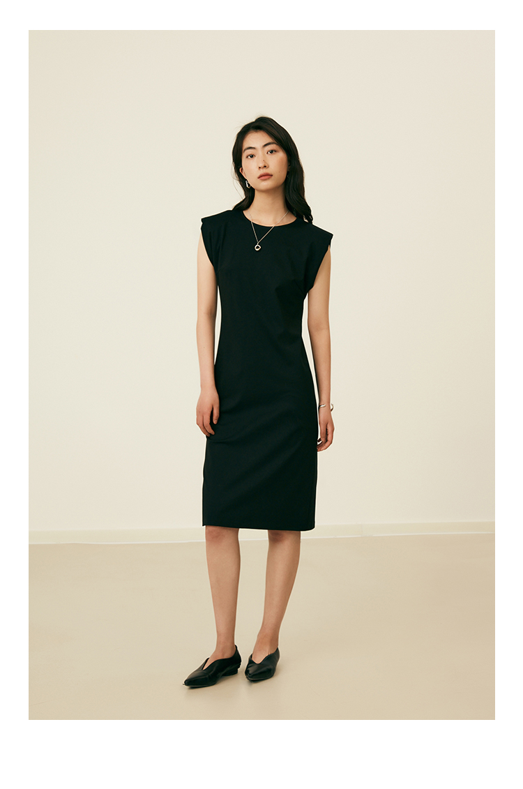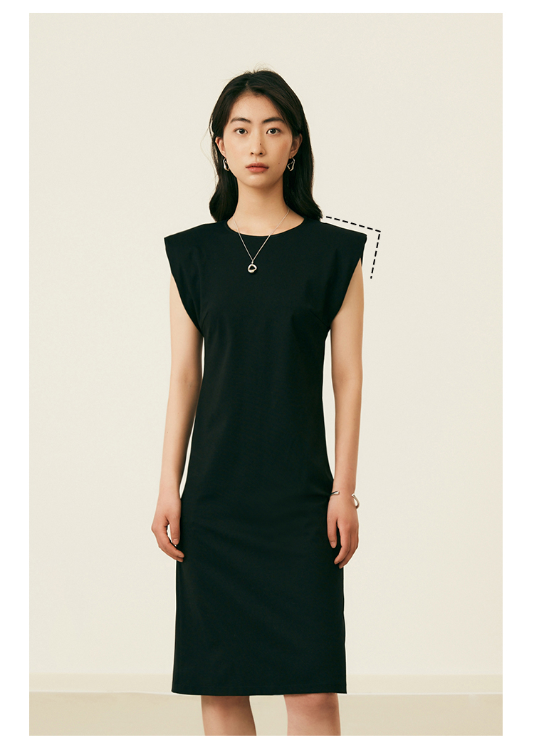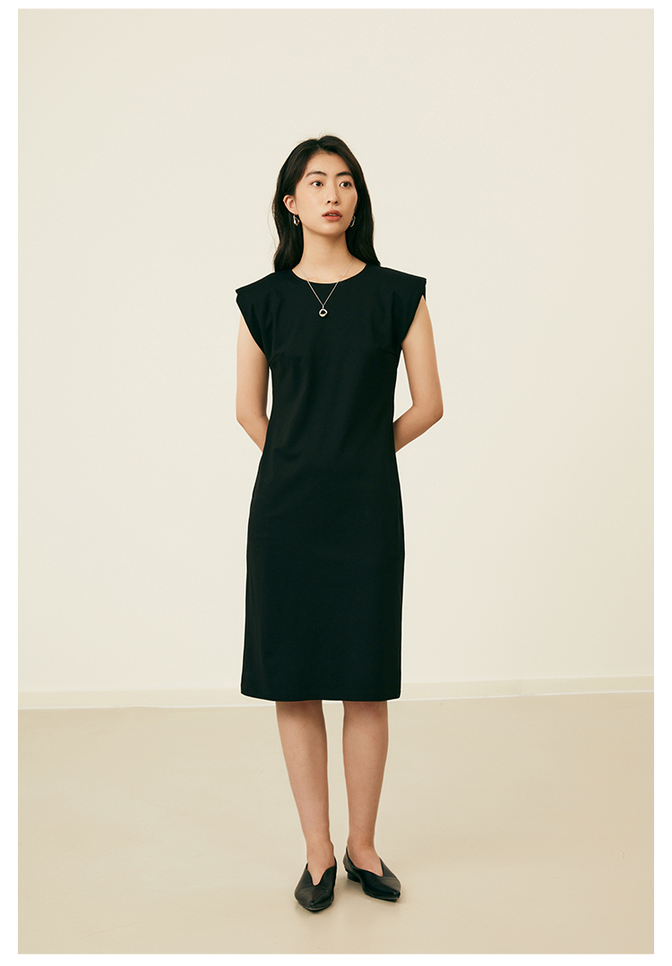HeyDress复古宽肩连衣裙女夏季收腰直筒小黑裙法式气质小众裙子