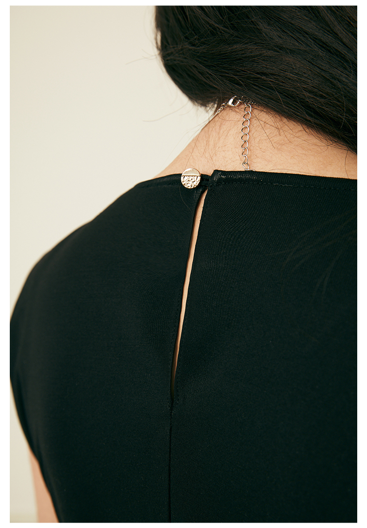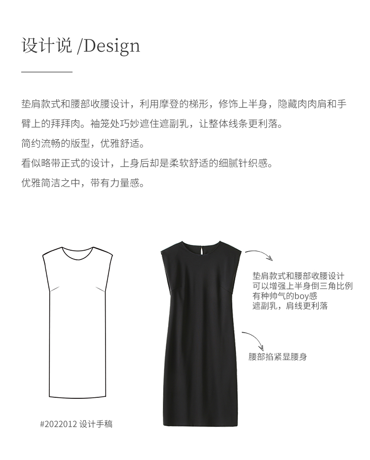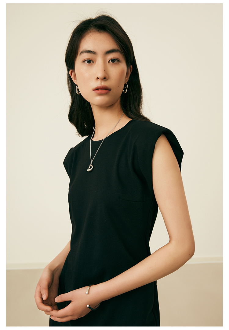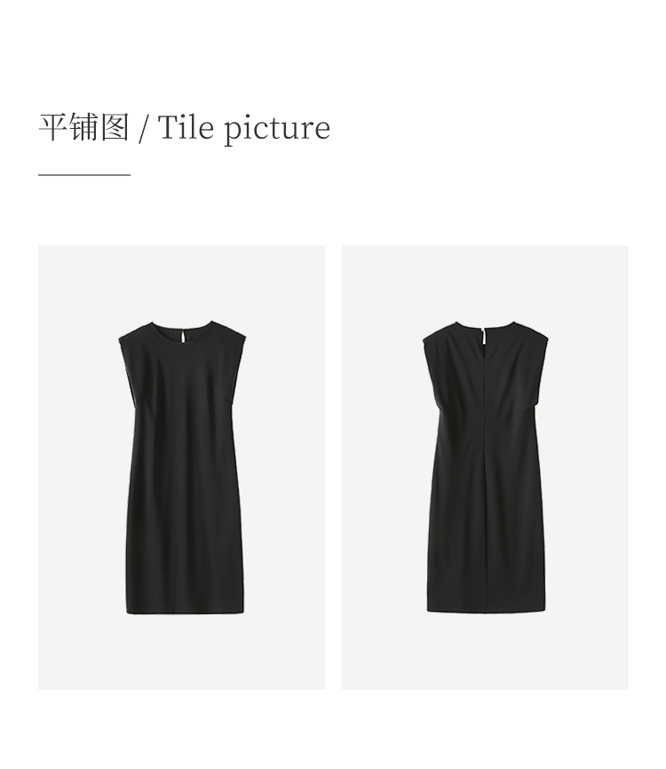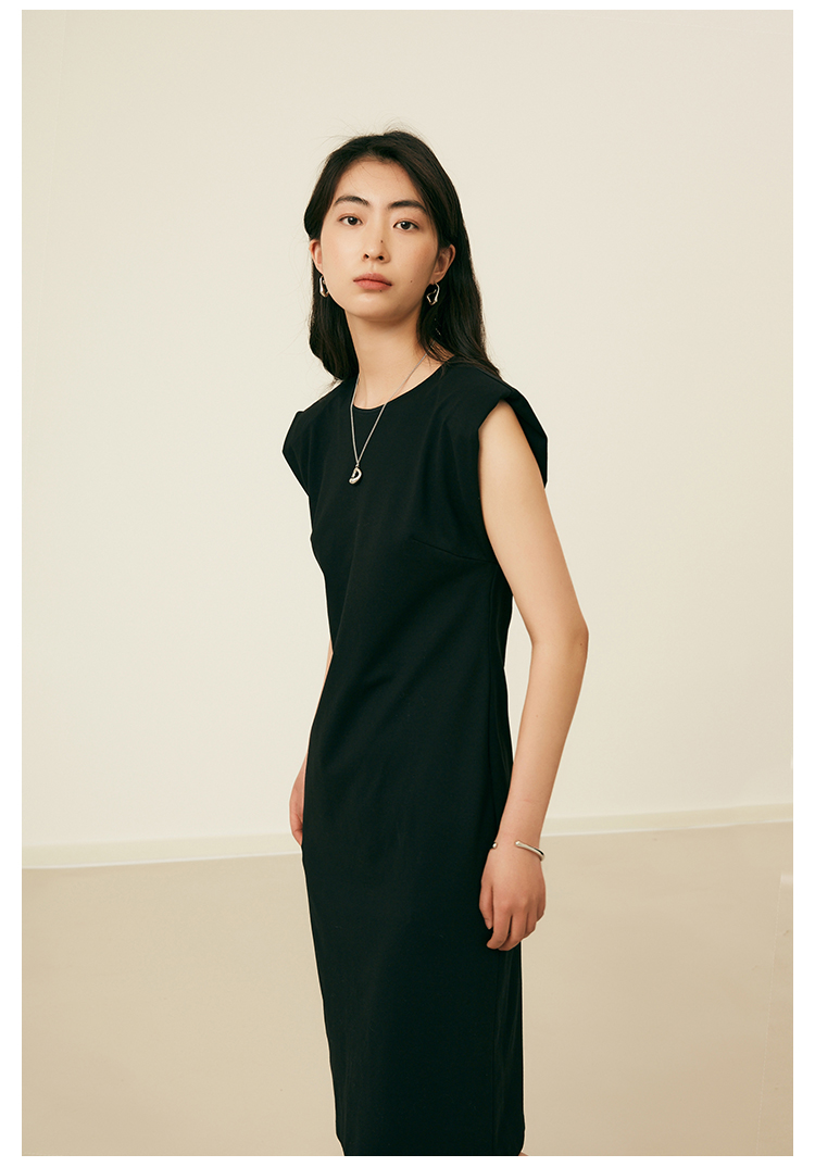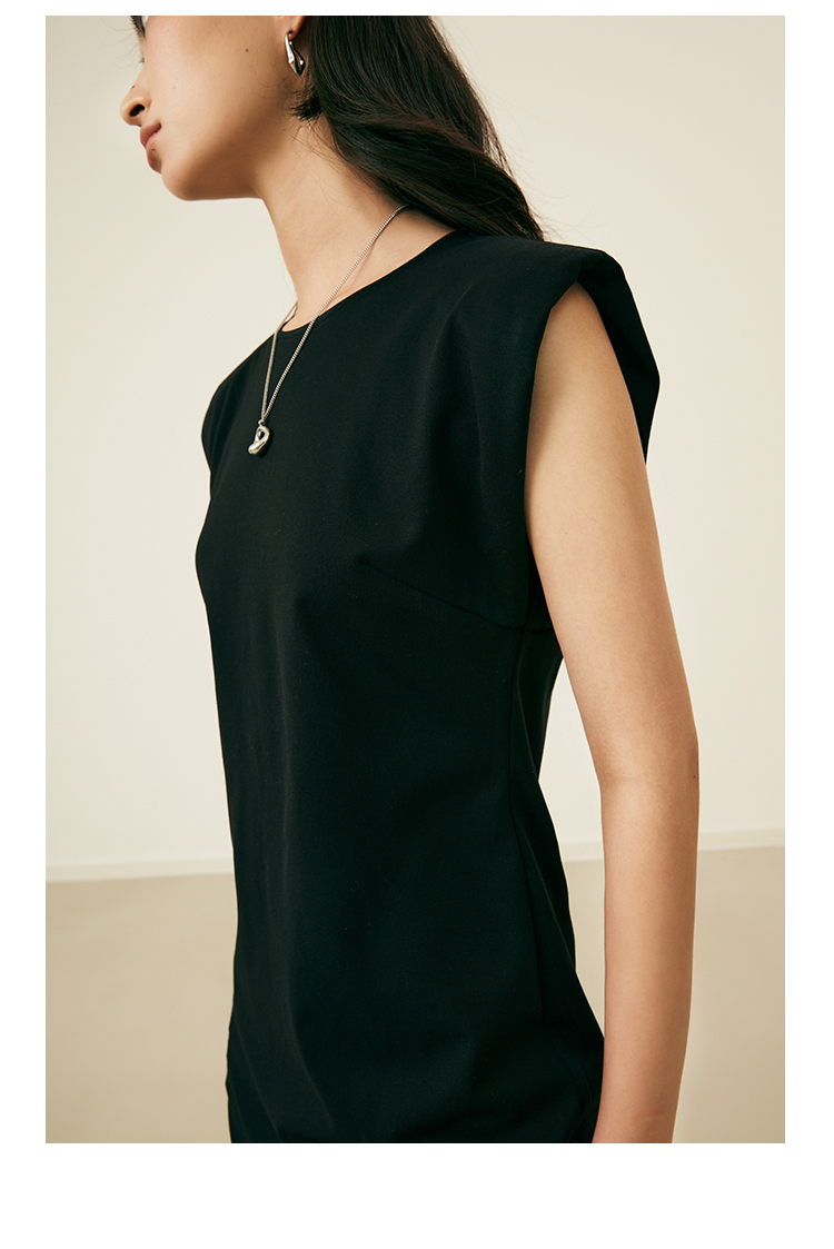 HeyDress复古宽肩连衣裙女夏季收腰直筒小黑裙法式气质小众裙子