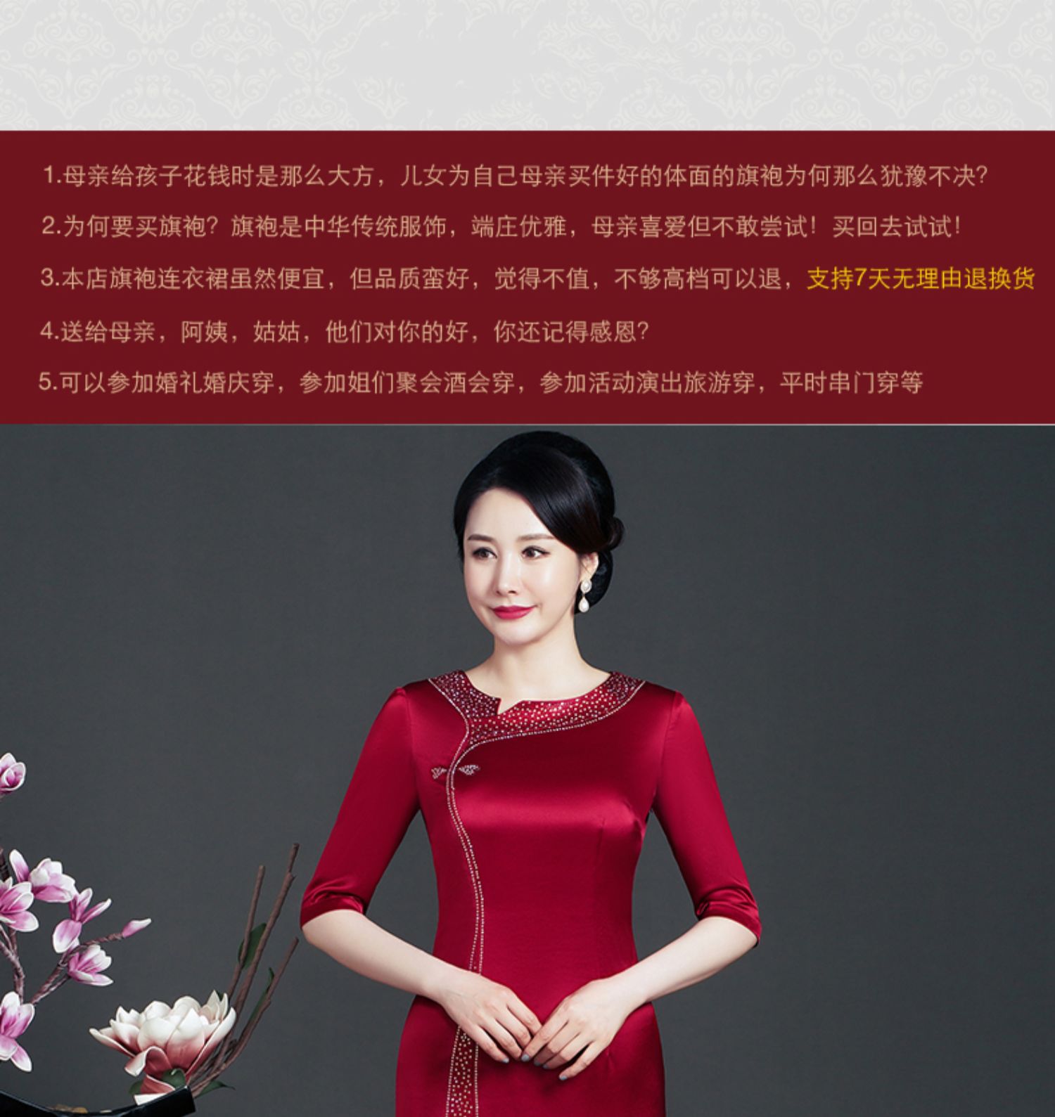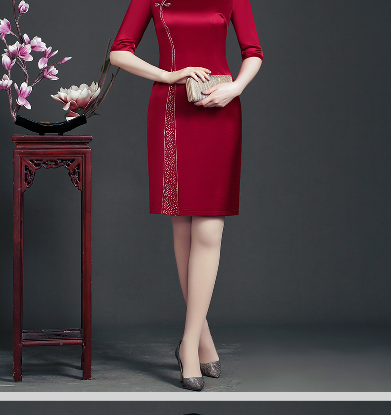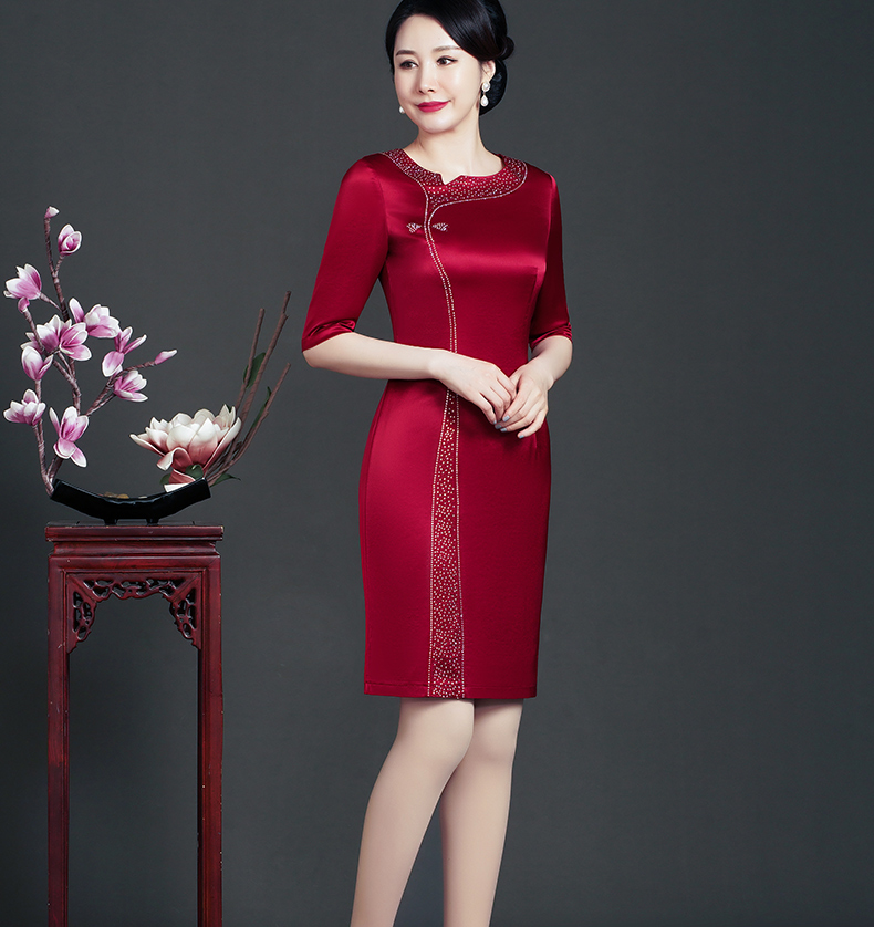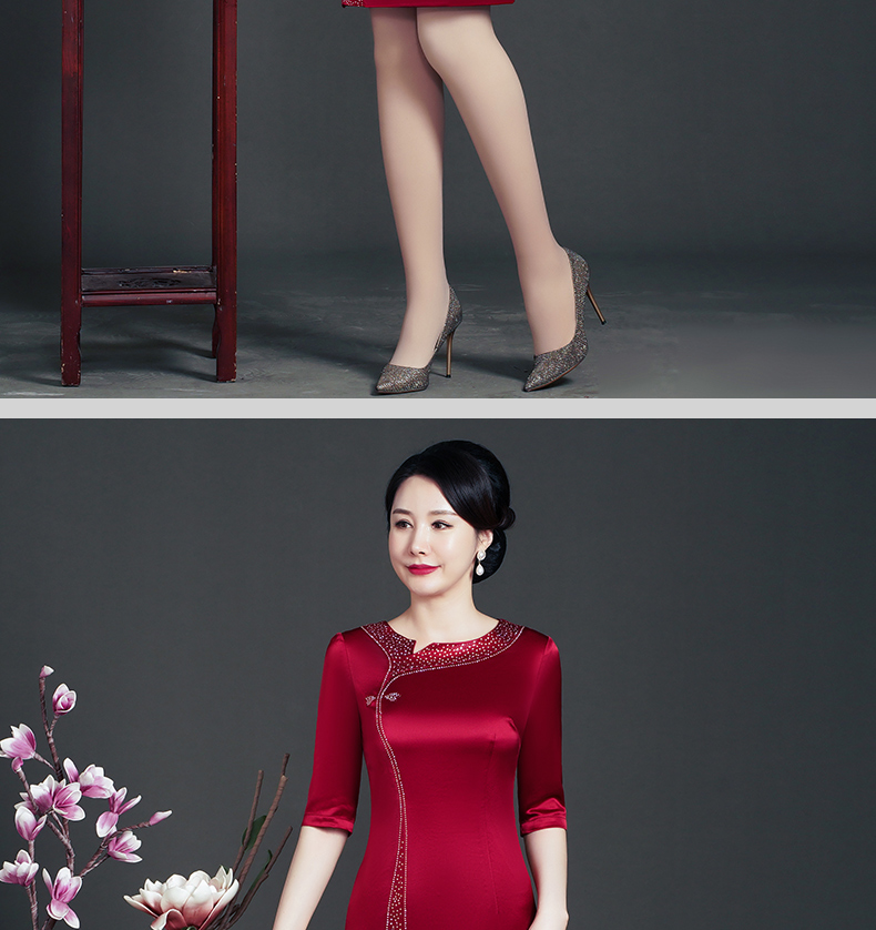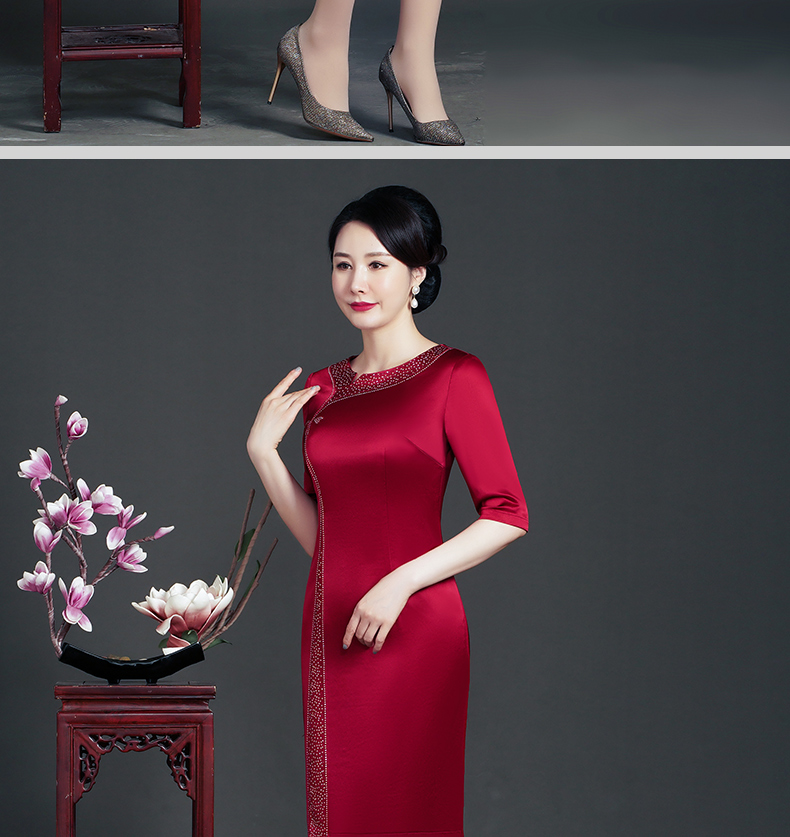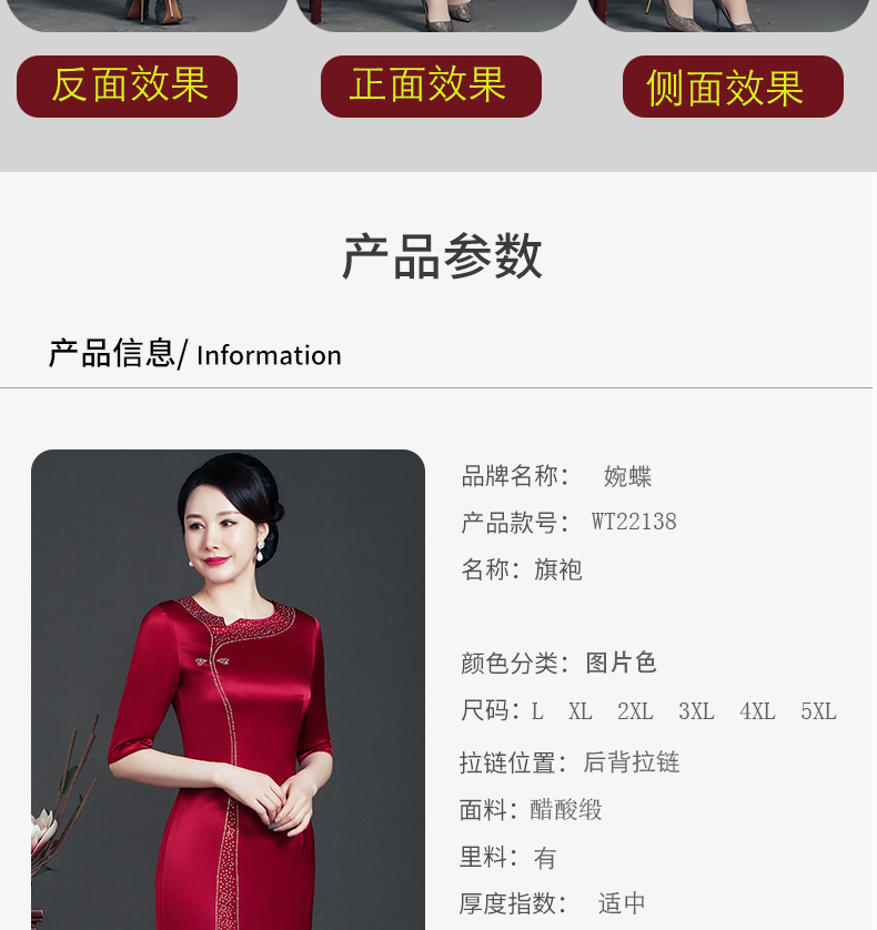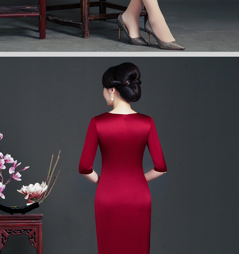WD-WT22138新娘婚宴装胖喜婆婆结婚婚礼礼服优雅醋酸旗袍春款