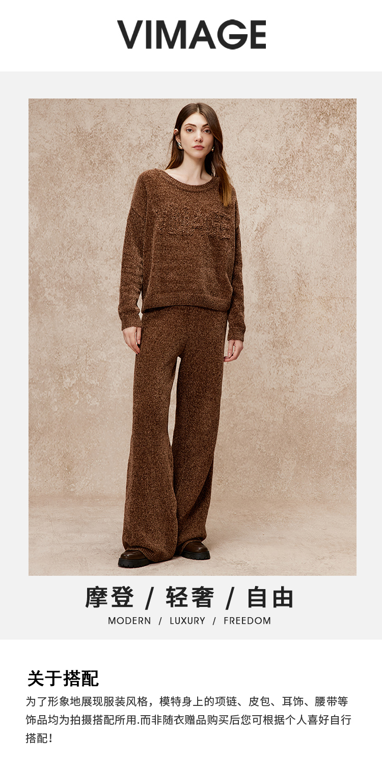 VIMAGE纬漫纪慵懒宽松落肩针织衫毛衣冬季新款V2201813