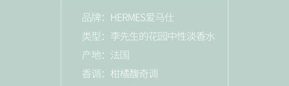 法国 爱马仕(Hermès)李先生的花园淡香水 100ml/瓶【香港直邮】