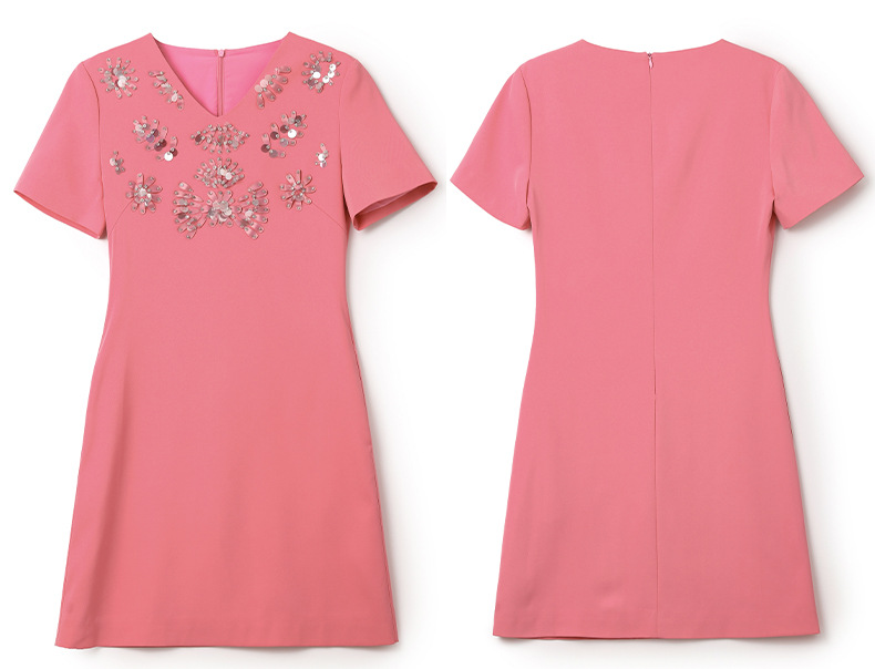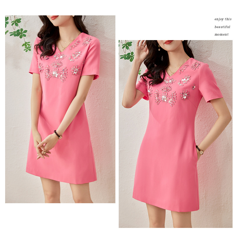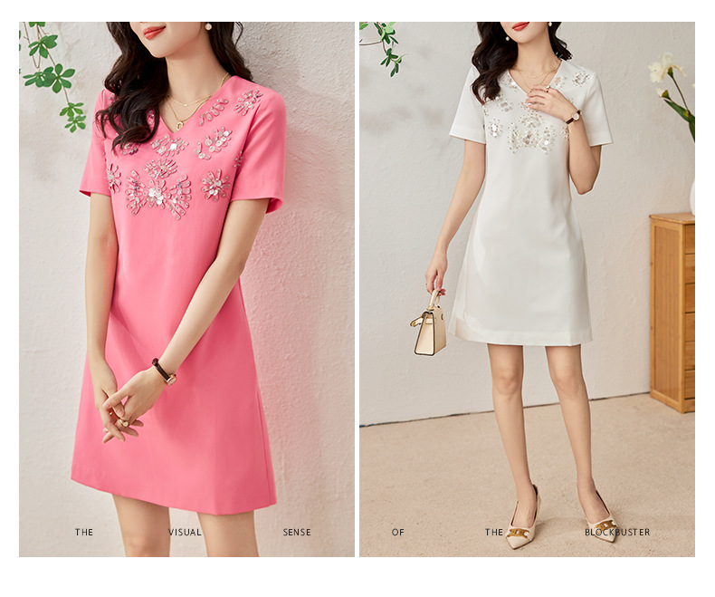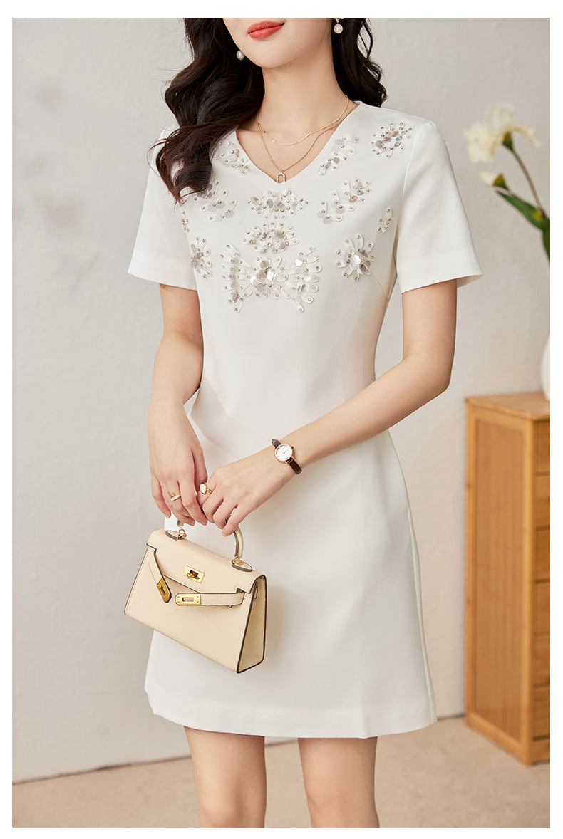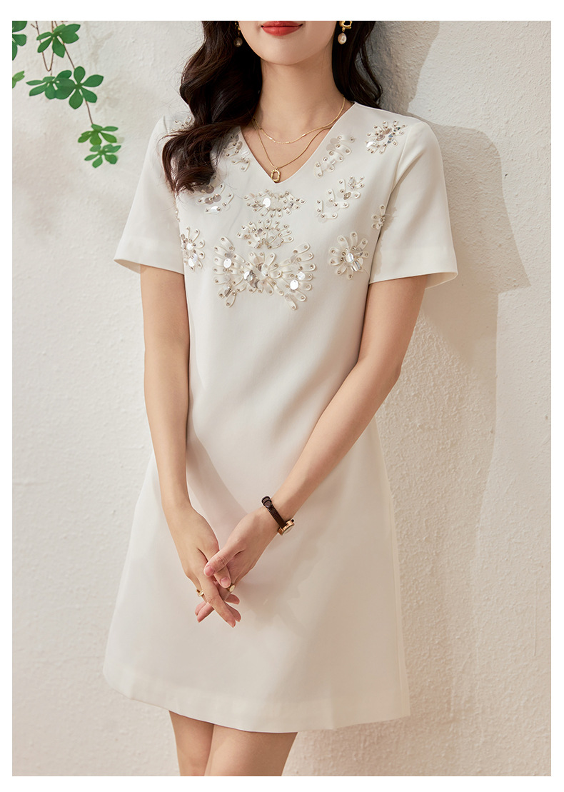 修身显瘦,遮肉气质名媛范新重工钉珠A字连衣裙WLZD-23011001