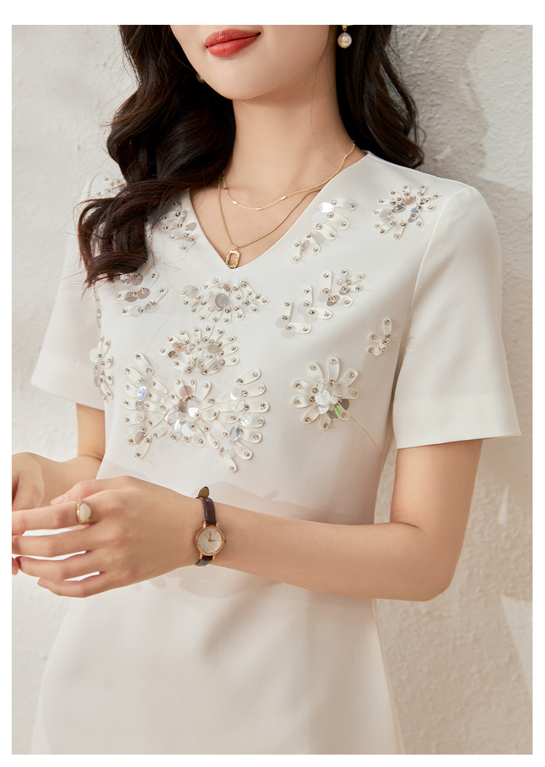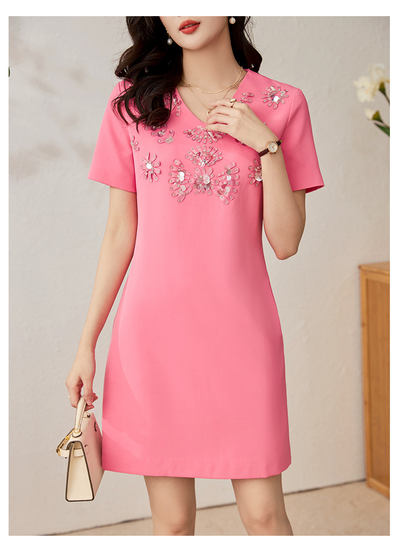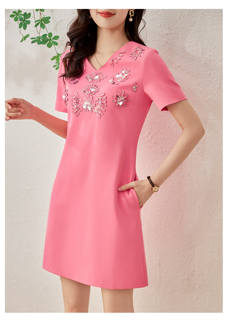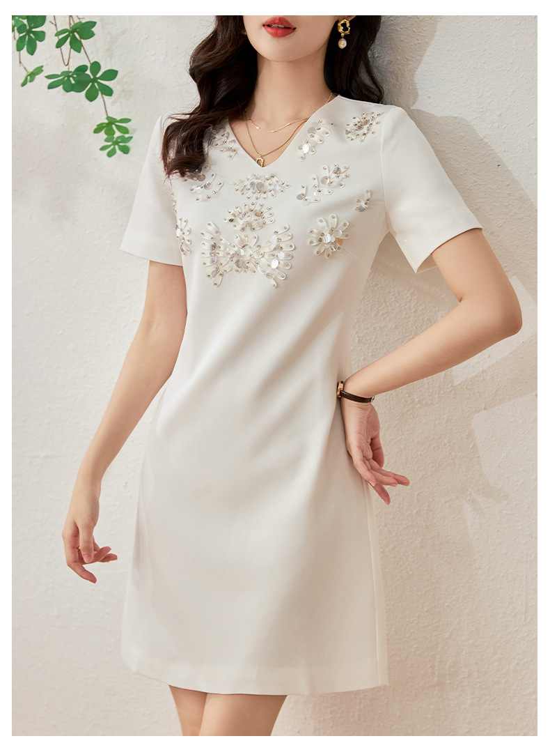 修身显瘦,遮肉气质名媛范新重工钉珠A字连衣裙WLZD-23011001