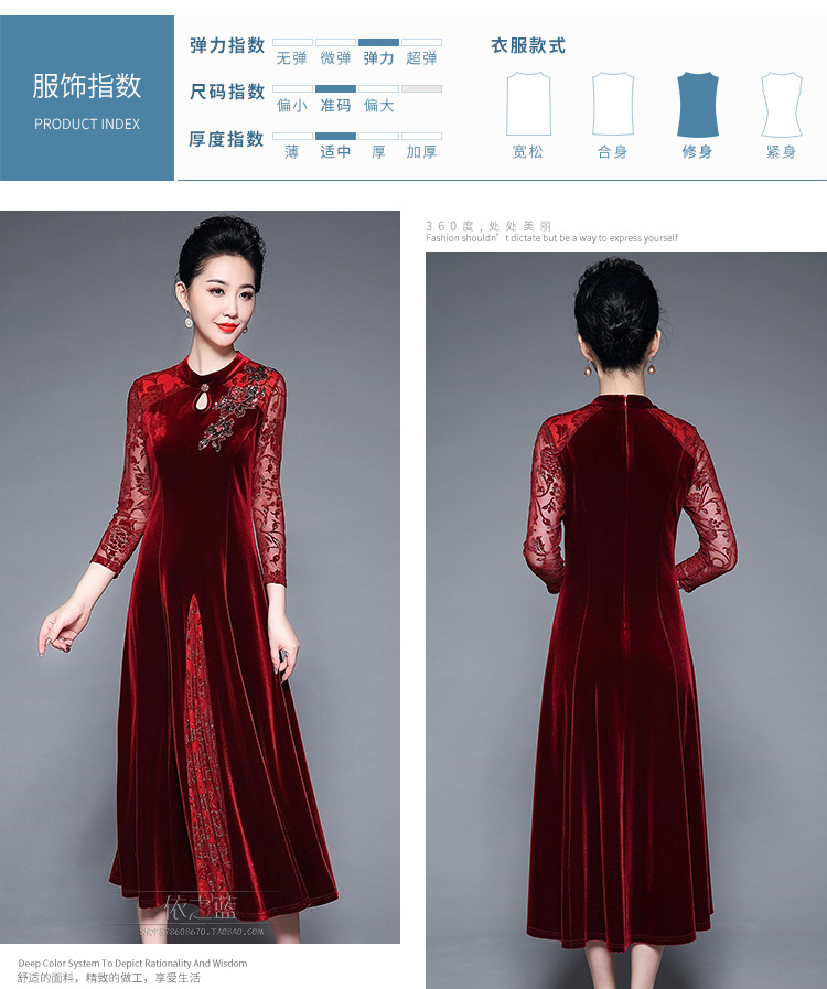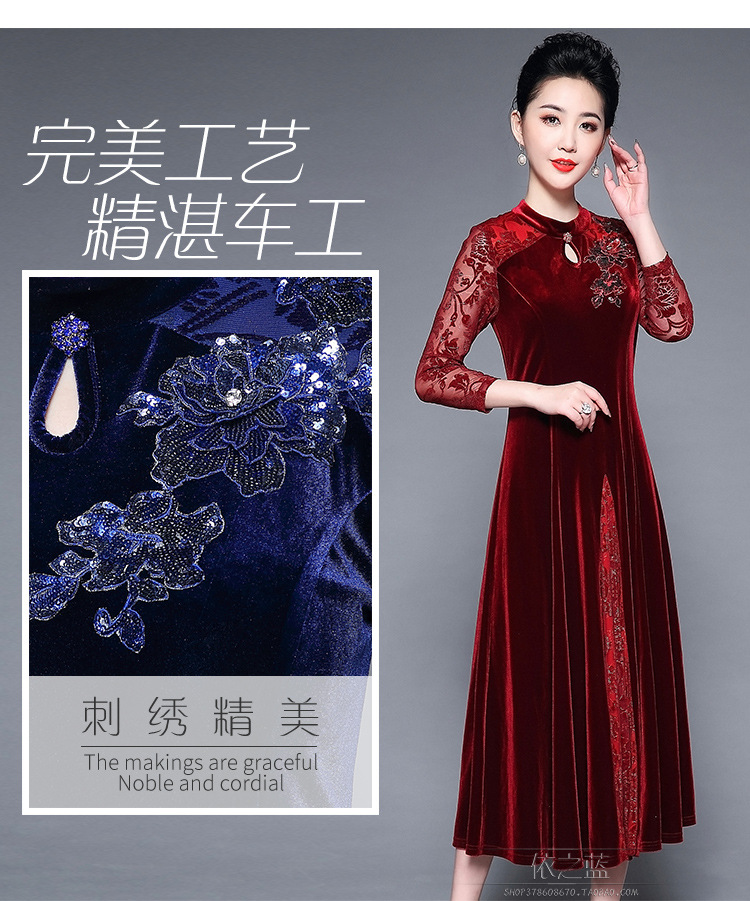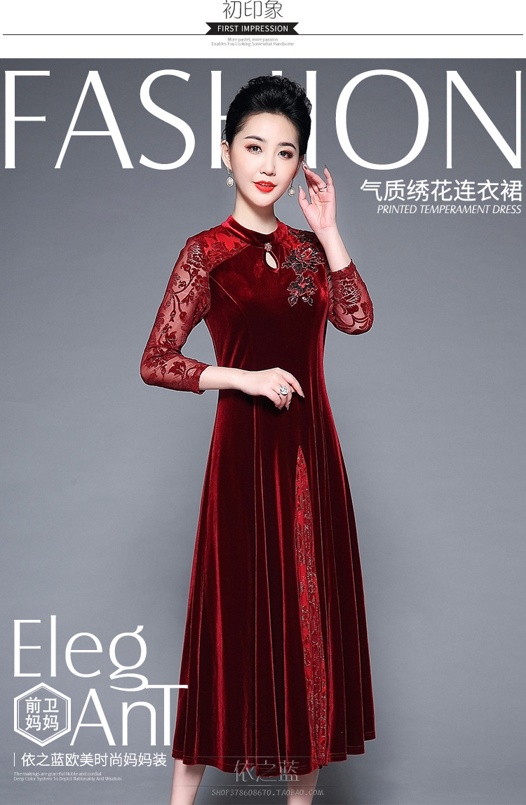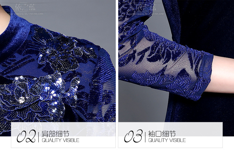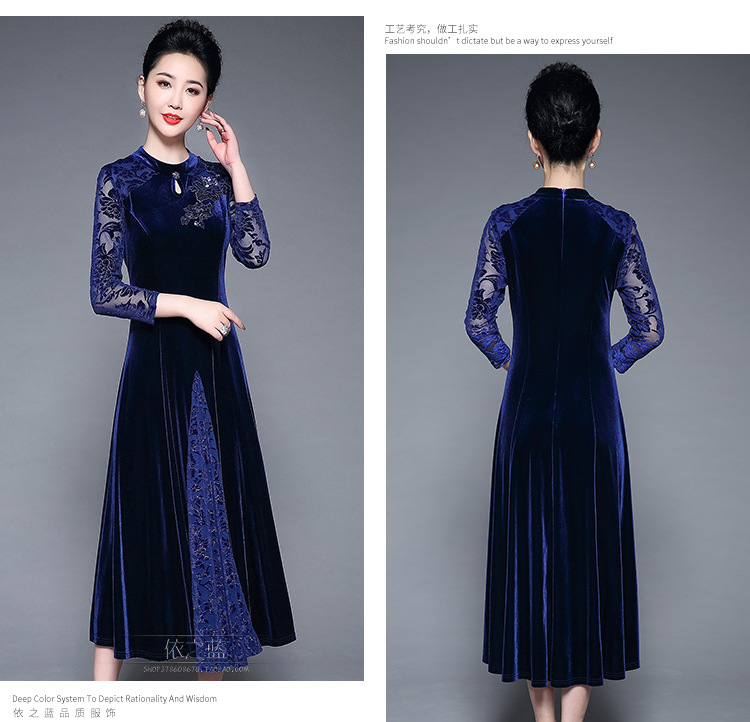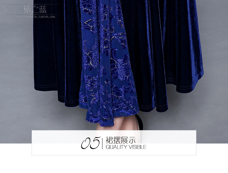 YZL-682新款欧美印花刺绣长袖圆领高腰套头铅笔中长款连衣裙TZW