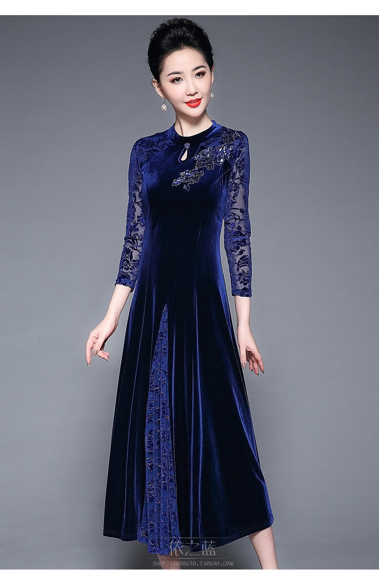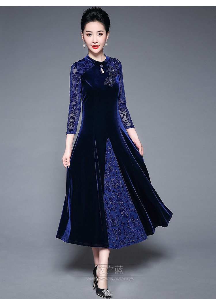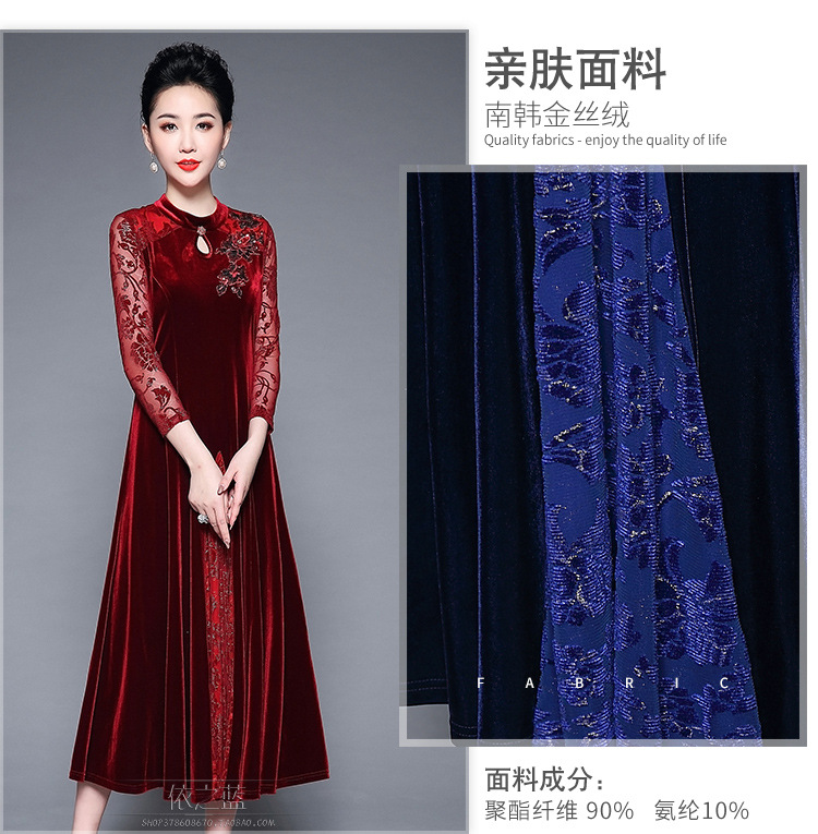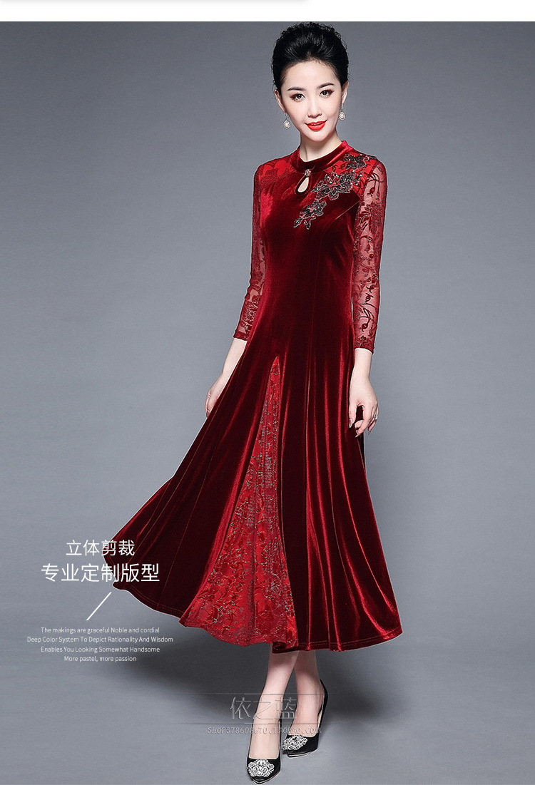 YZL-682新款欧美印花刺绣长袖圆领高腰套头铅笔中长款连衣裙TZW