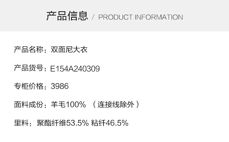 乔万尼羊毛双面呢外套中长款大衣E154A240