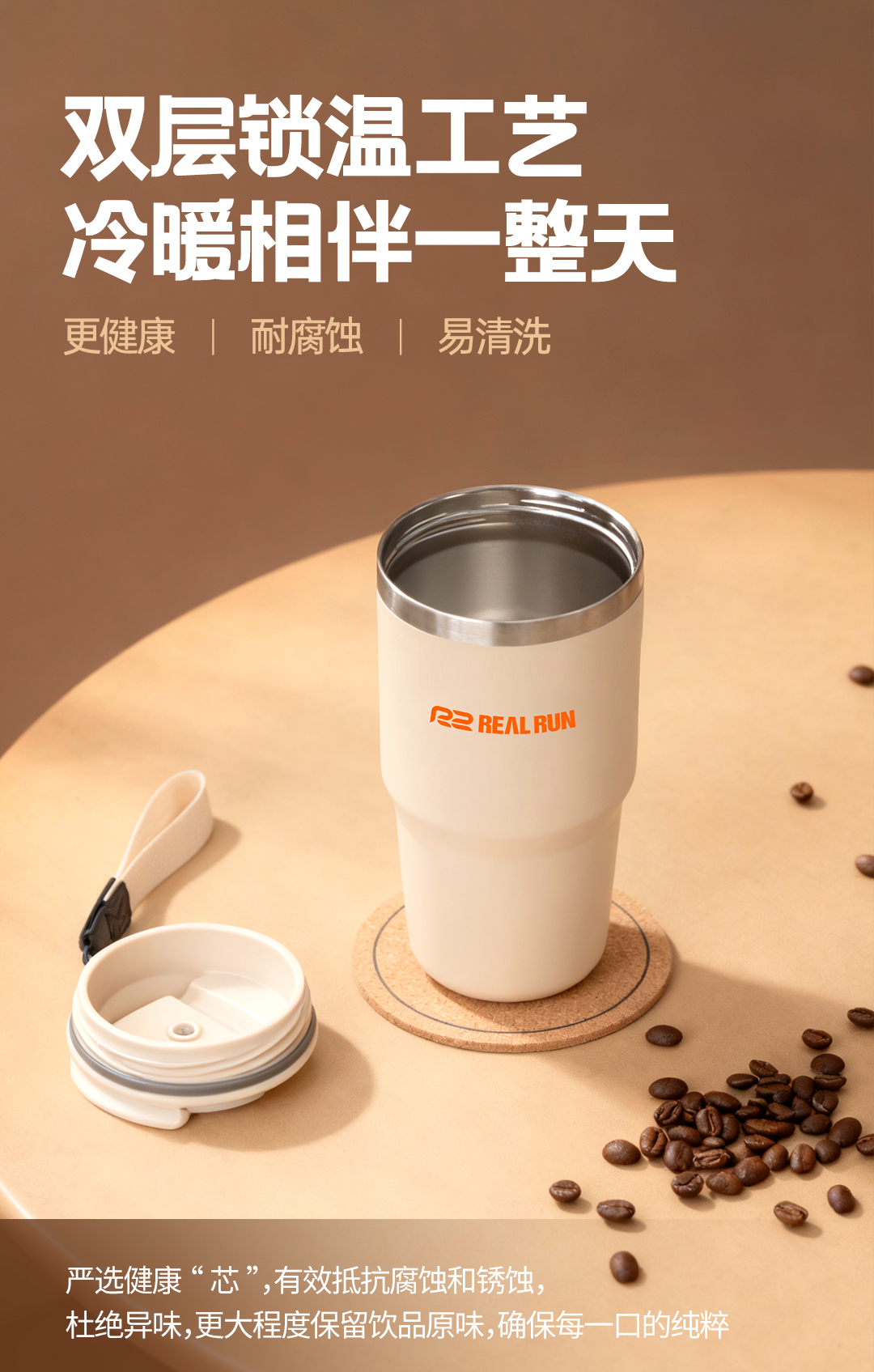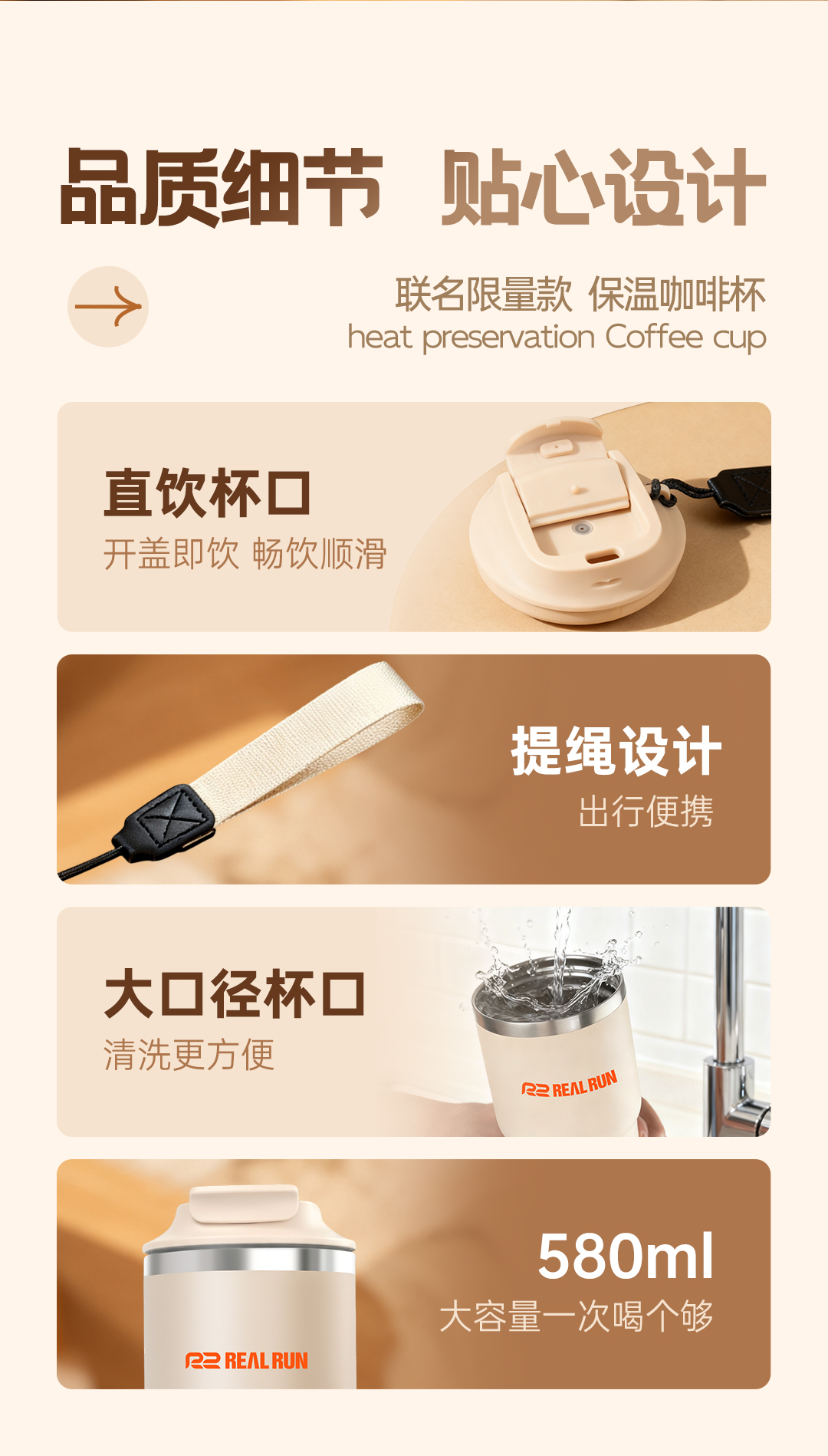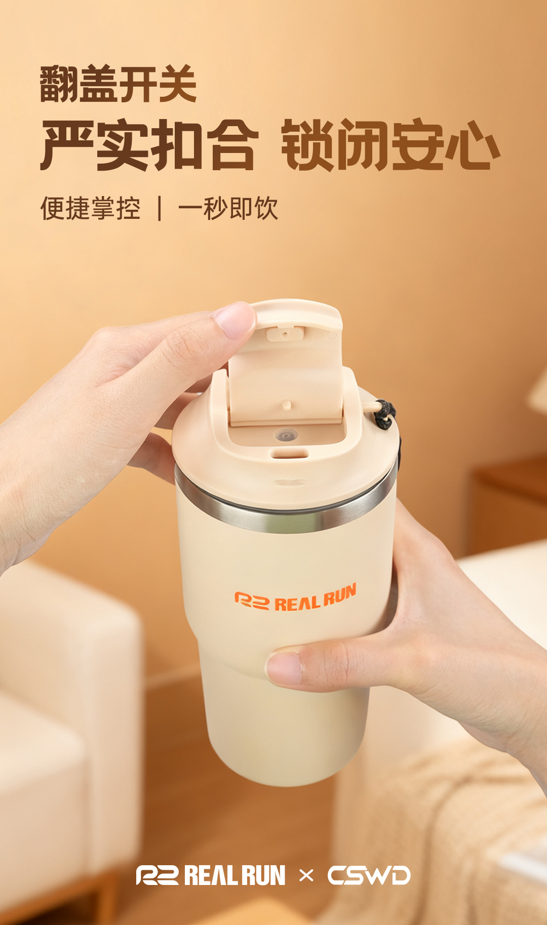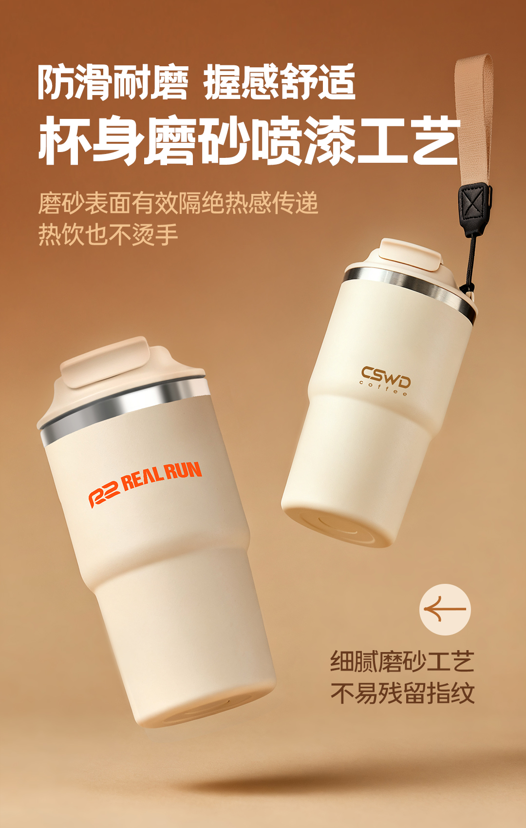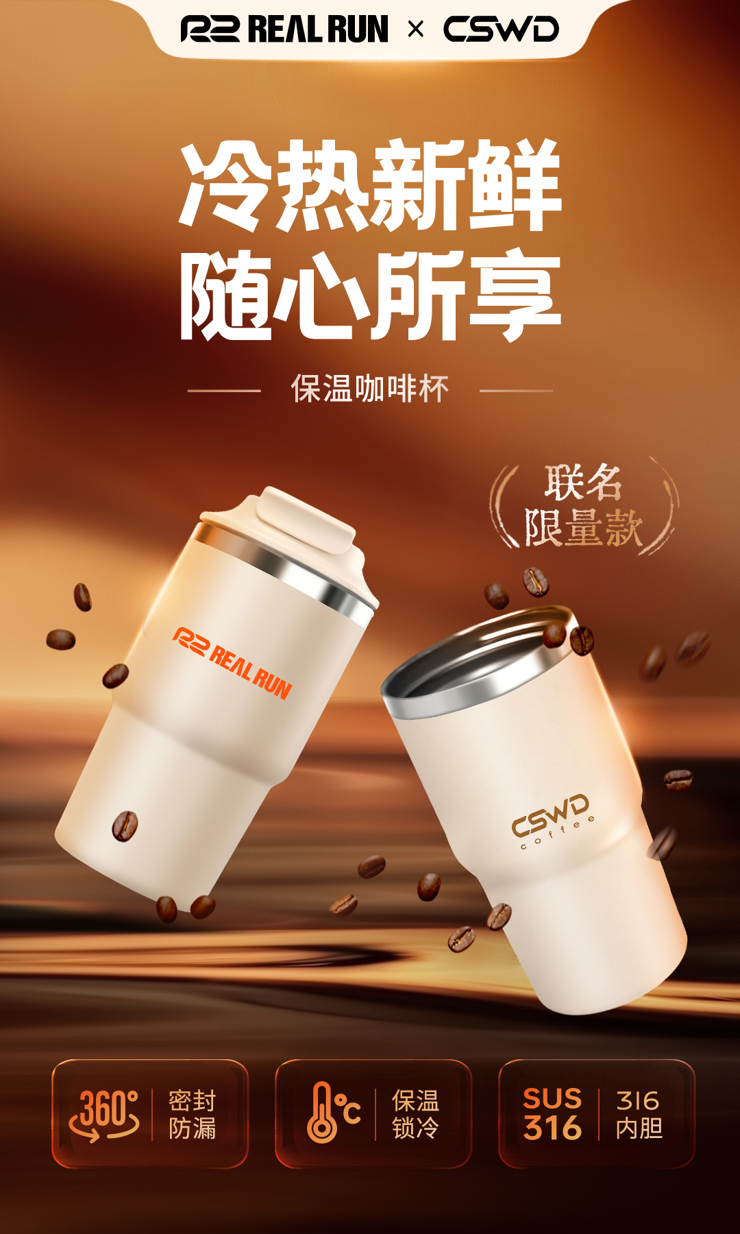 R2REALRUN&CSWD联名保温咖啡杯316不锈钢随行杯大容量直饮保温杯
