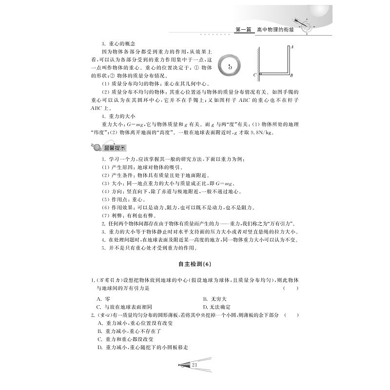 吴瑛翰、许康华编写的《物理(新编高中预备班)》充分体现新课程标准的精神,既强化与高中知识密切相关的初中知识模块,又不是对这些知识模块的简单回顾与复习,而是同时渗透高中学科的知识与方法,化解高中教学中的一些难点,为高中学习做好必要的铺垫。