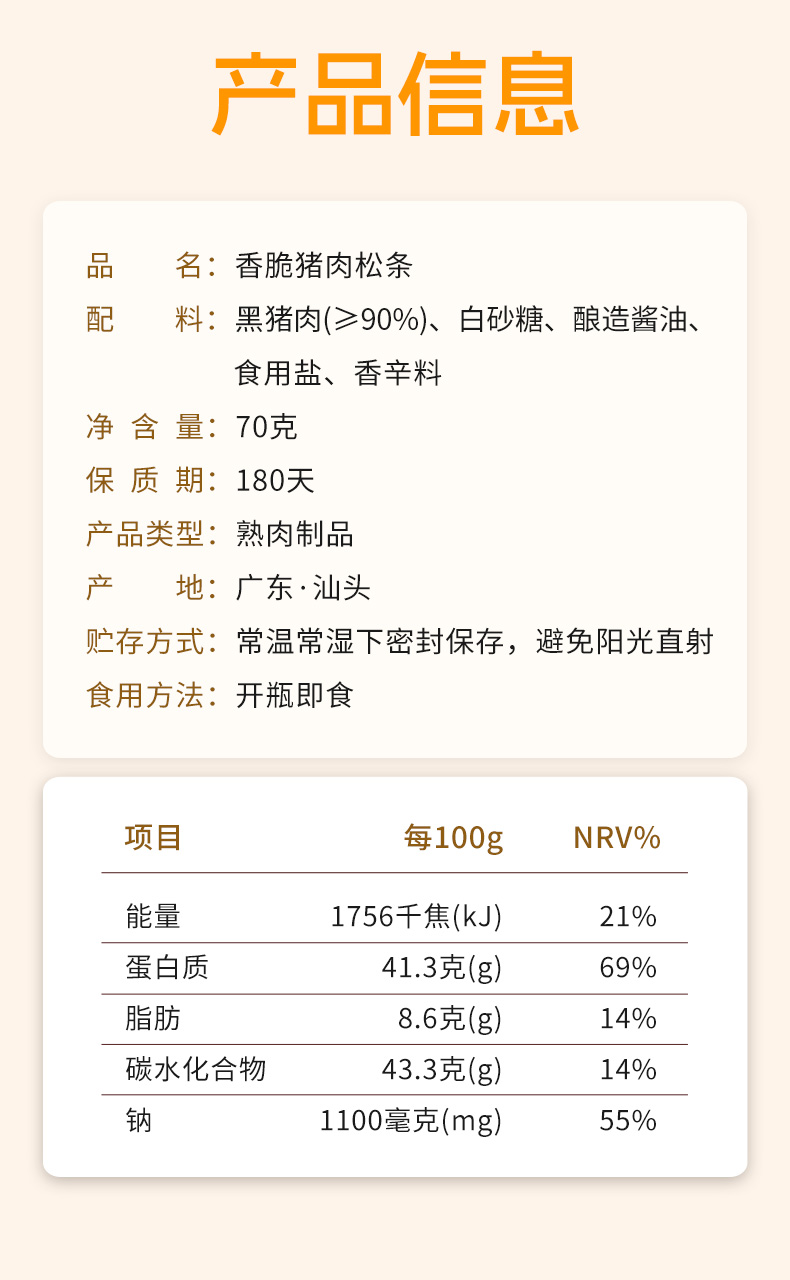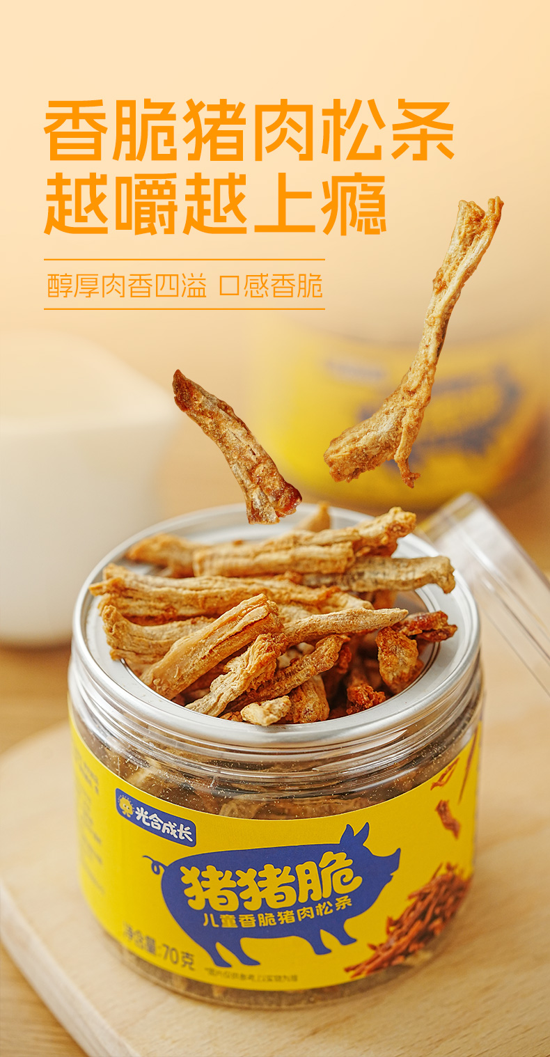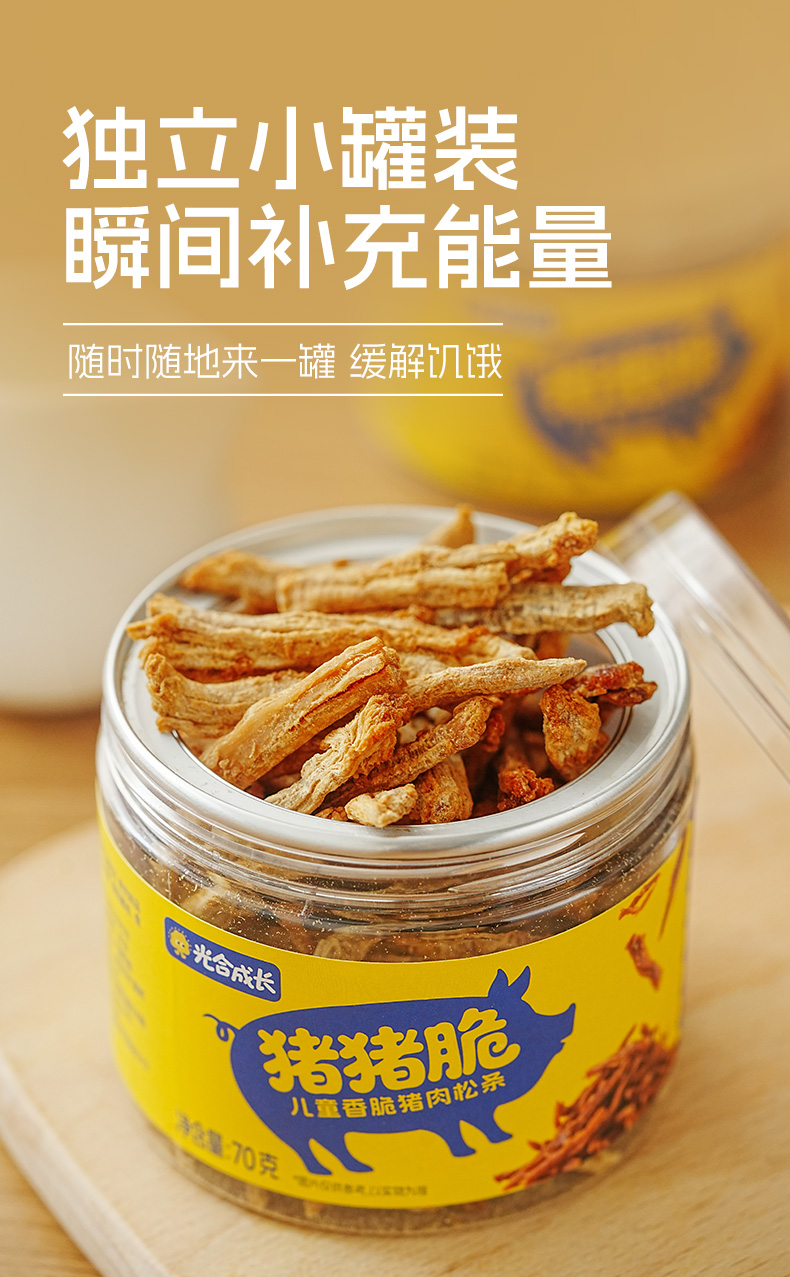 光合成长猪猪脆 香脆猪肉松条 非油炸低温慢烤 下午茶/追剧零食 70克/瓶