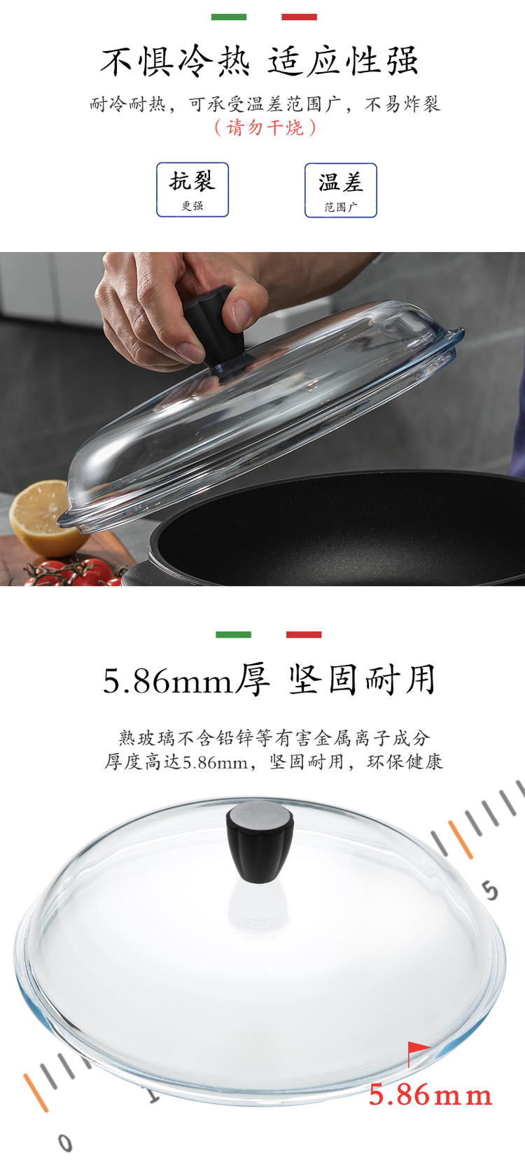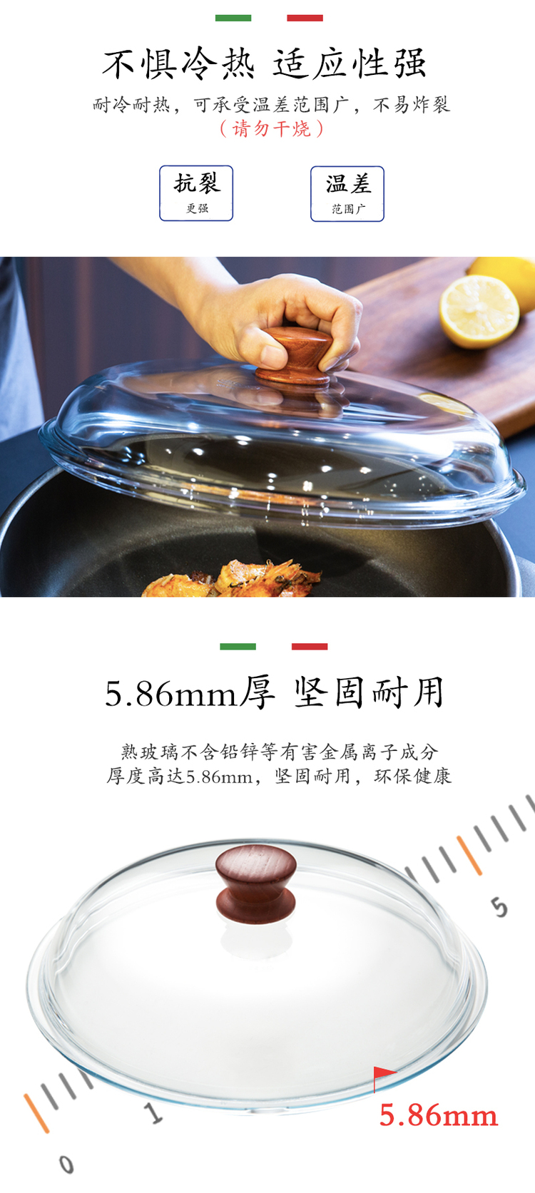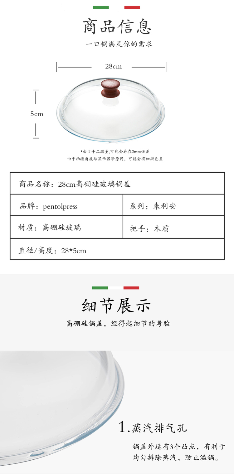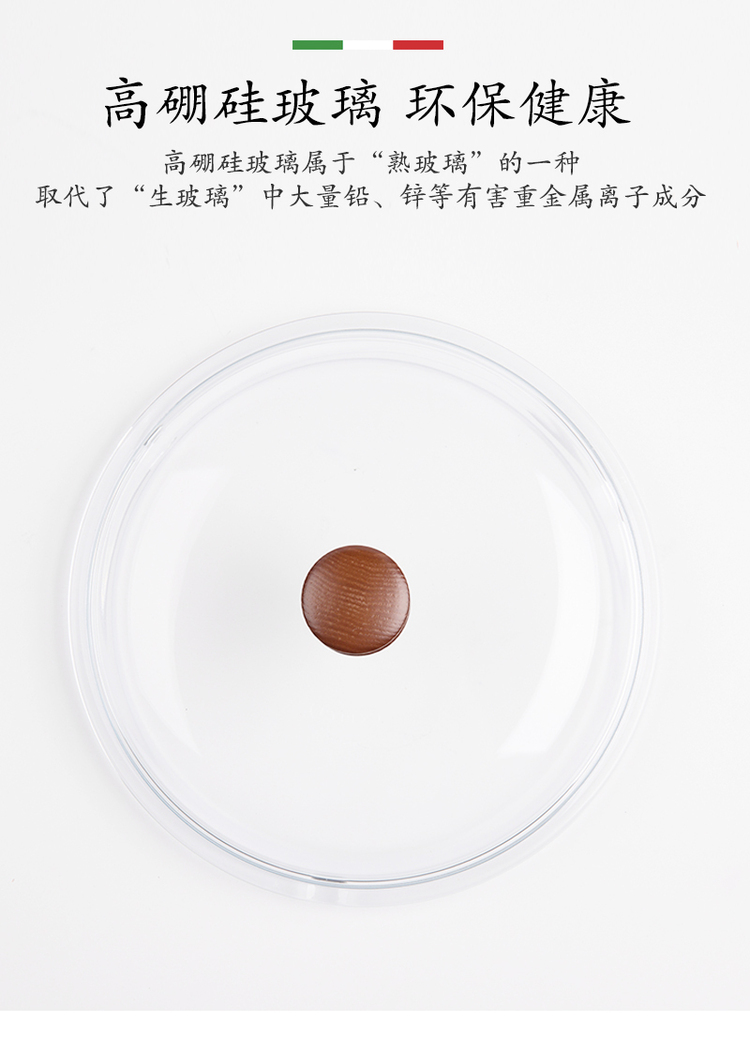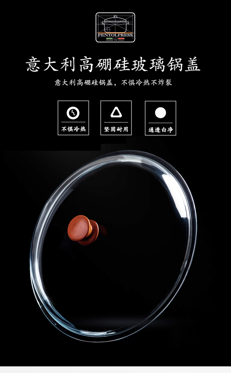 意大利PENTOLPRESS高硼硅玻璃锅盖木质款24/28/32cm