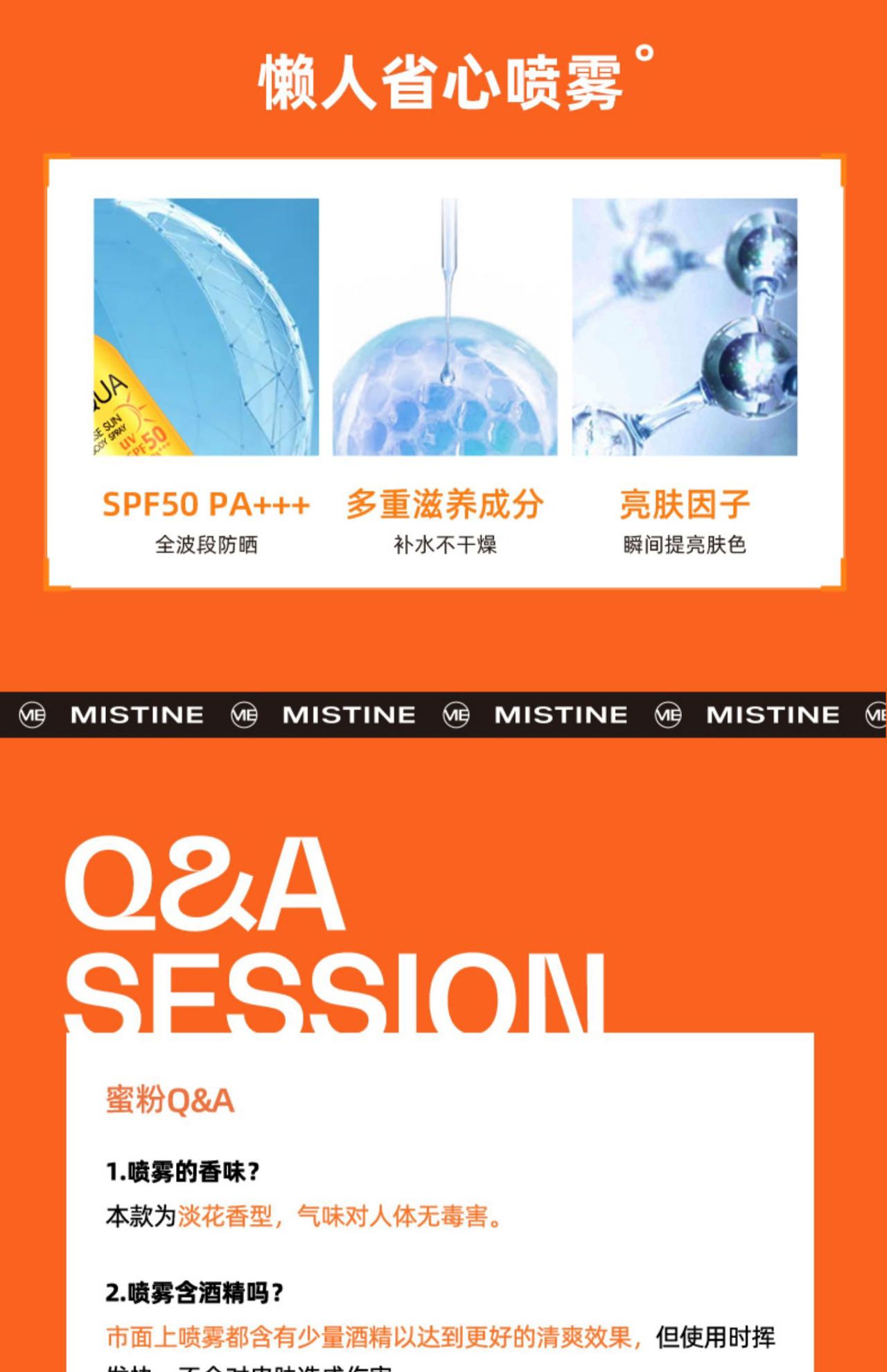 Mistine蜜丝婷小黄瓶防晒喷雾/1瓶(100ml)有效期至:28年3月补单专用