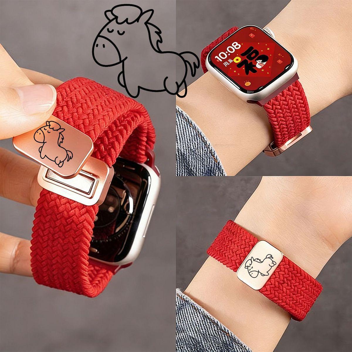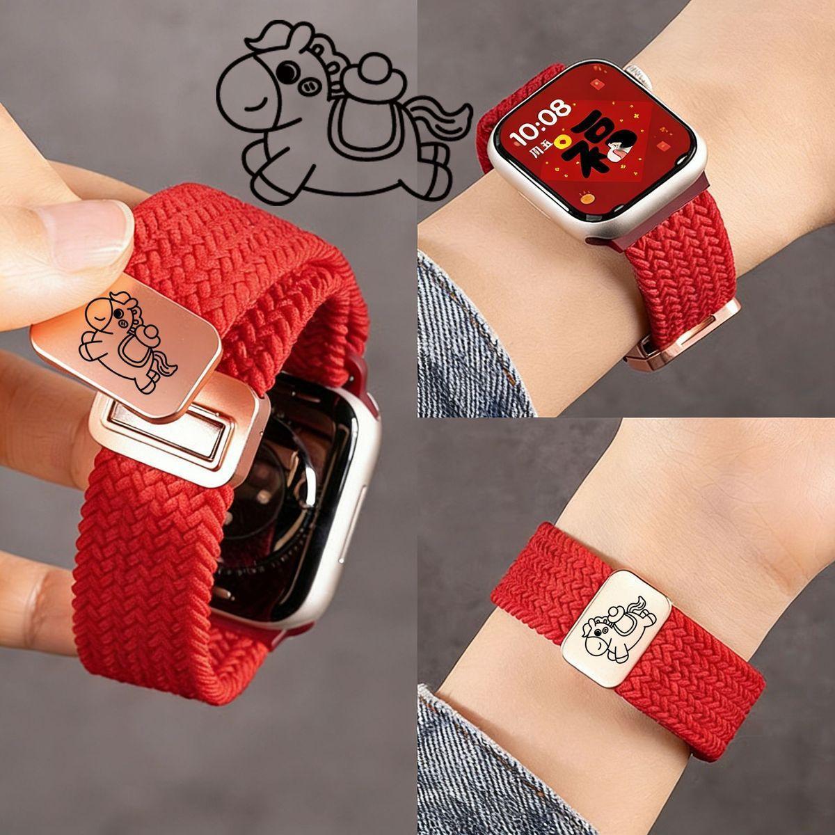 【舒适亲肤百搭❗️精致可爱小马图案】马上发财适用iwatchs810表带ApplewatchS8/S9表带se3编织6表带s11。jc