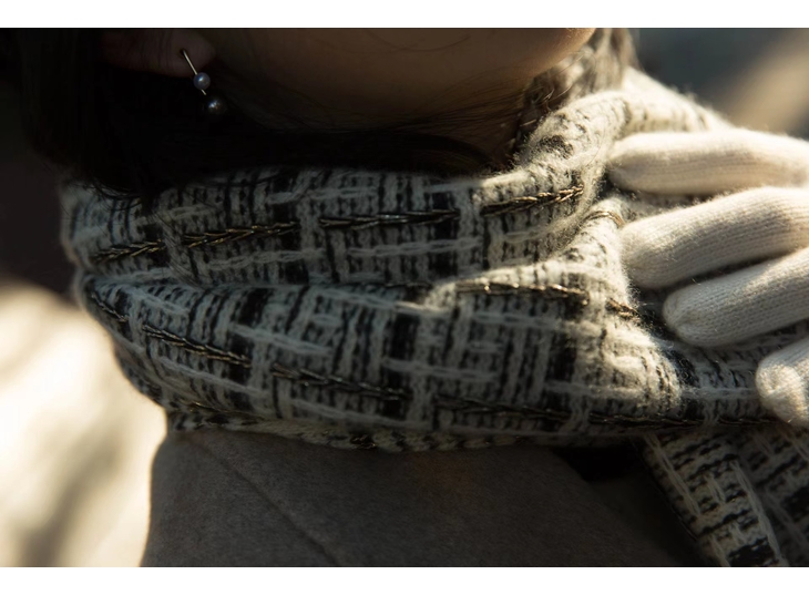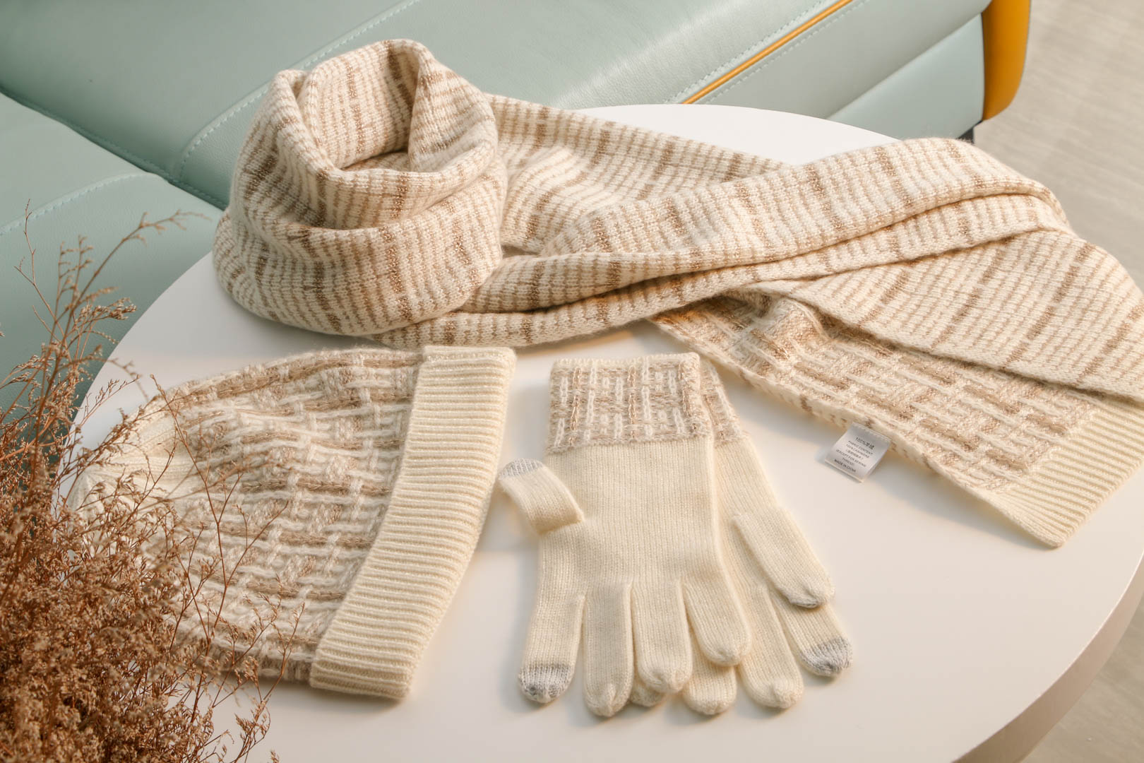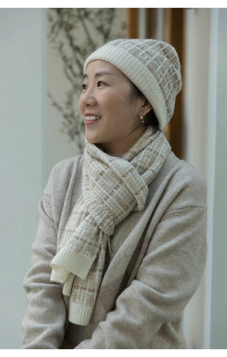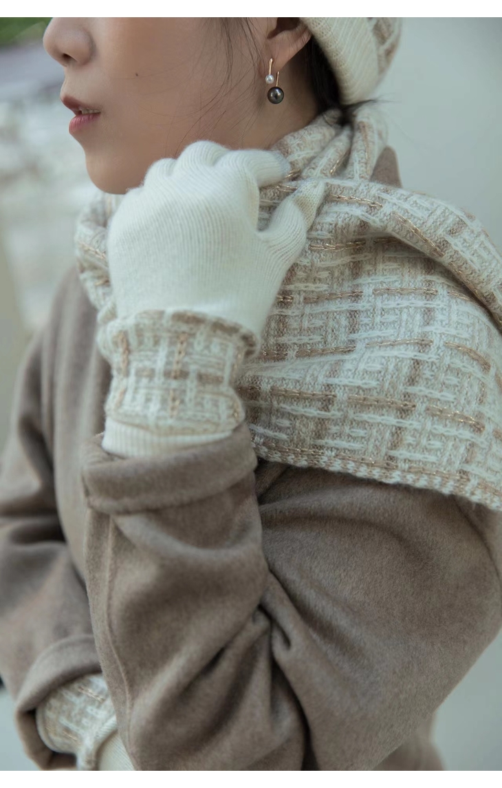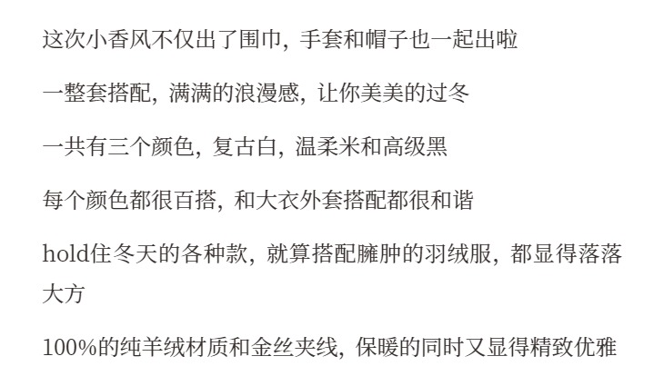 【漫步香榭丽舍】 纯羊绒小香风围巾手套帽子三件套