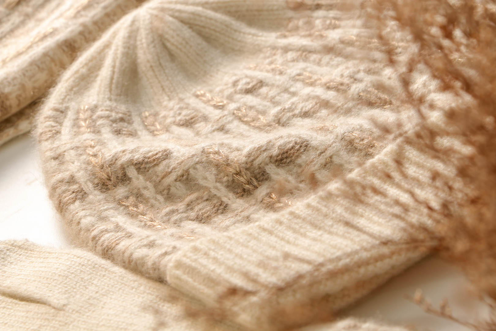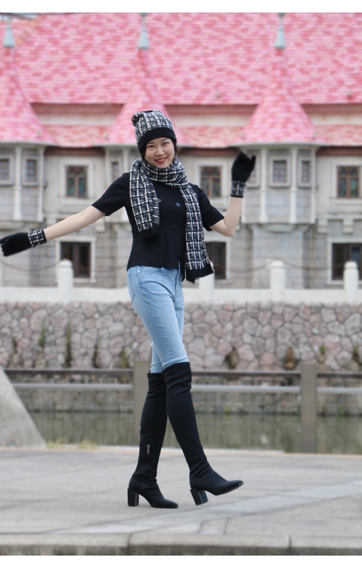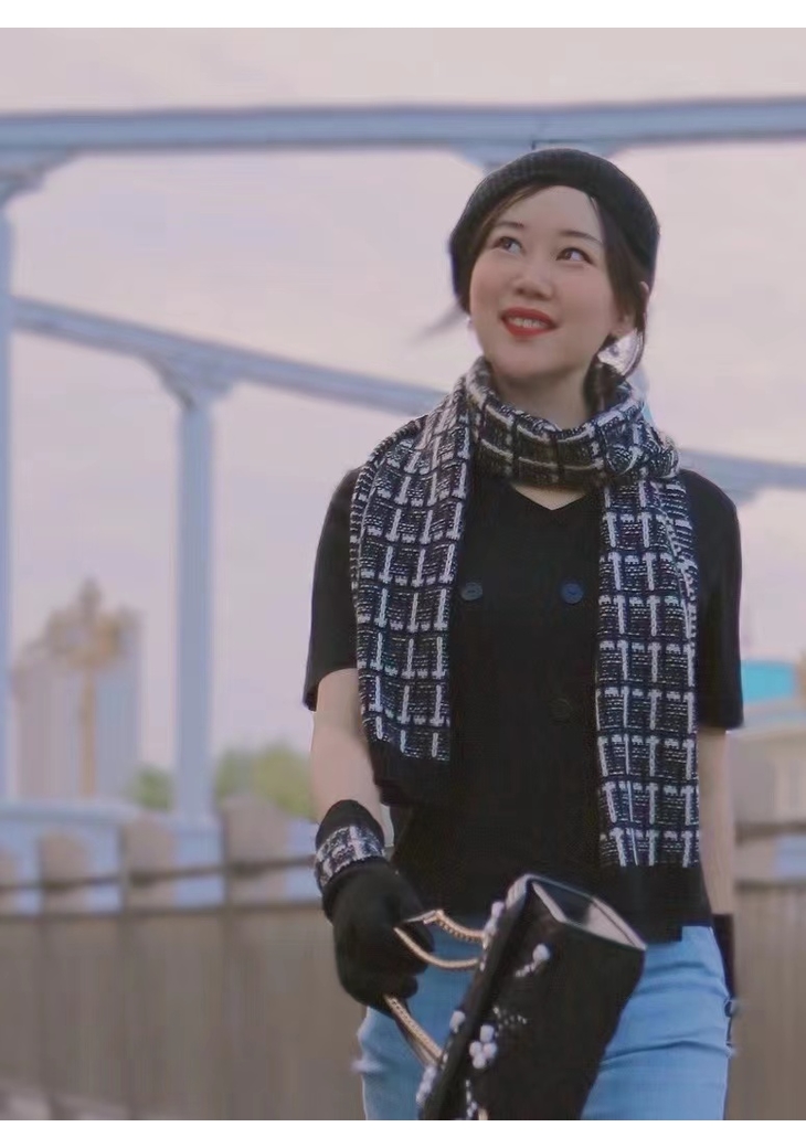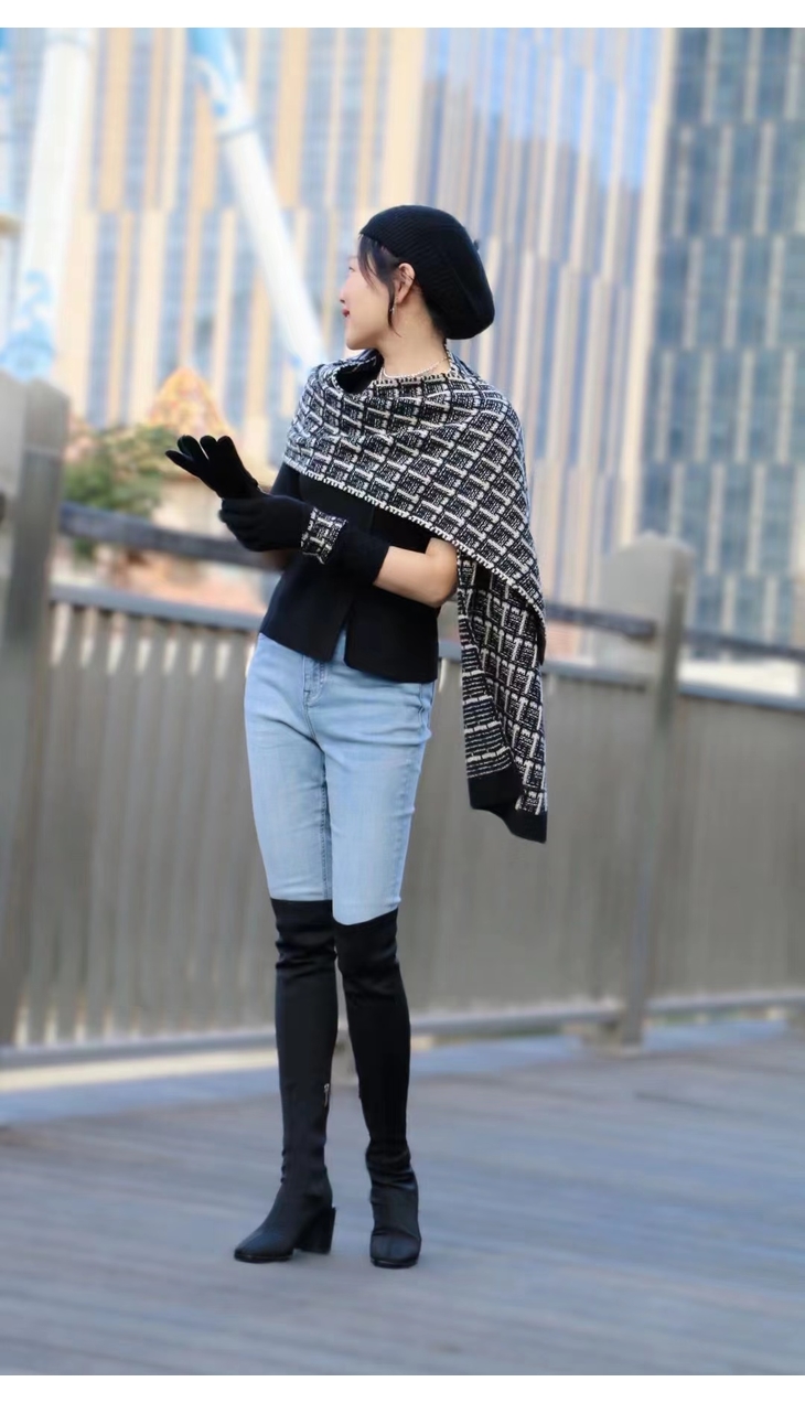 【漫步香榭丽舍】 纯羊绒小香风围巾手套帽子三件套