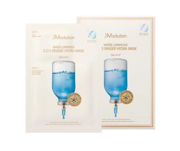 👑JM solution急救补水面膜30ml*5(蓝色白盒) 👍从卸妆清洁到保湿补水,一次性解决 💎清洁:毛孔净化、深层清洁效果 💦面膜蕴含:五种透明质酸+肽、泛苯酚、阿兰托因、橡树水 ✅有效:深层清洁、水油水分平衡保护、滋润保湿 💛步骤一:清洁面部,可吸附多余油脂污垢,残留底妆可去除! 🏵️步骤二:敷面膜,10~20分钟后,清洁或按摩皮肤吸收多余精华 ✨适合:懒人福星、外出没有带洗面奶/面膜人群
