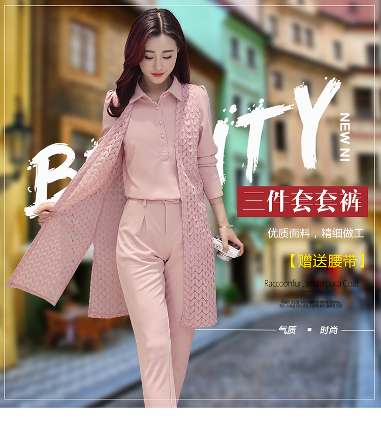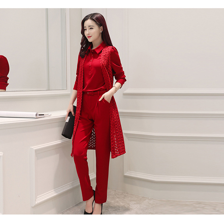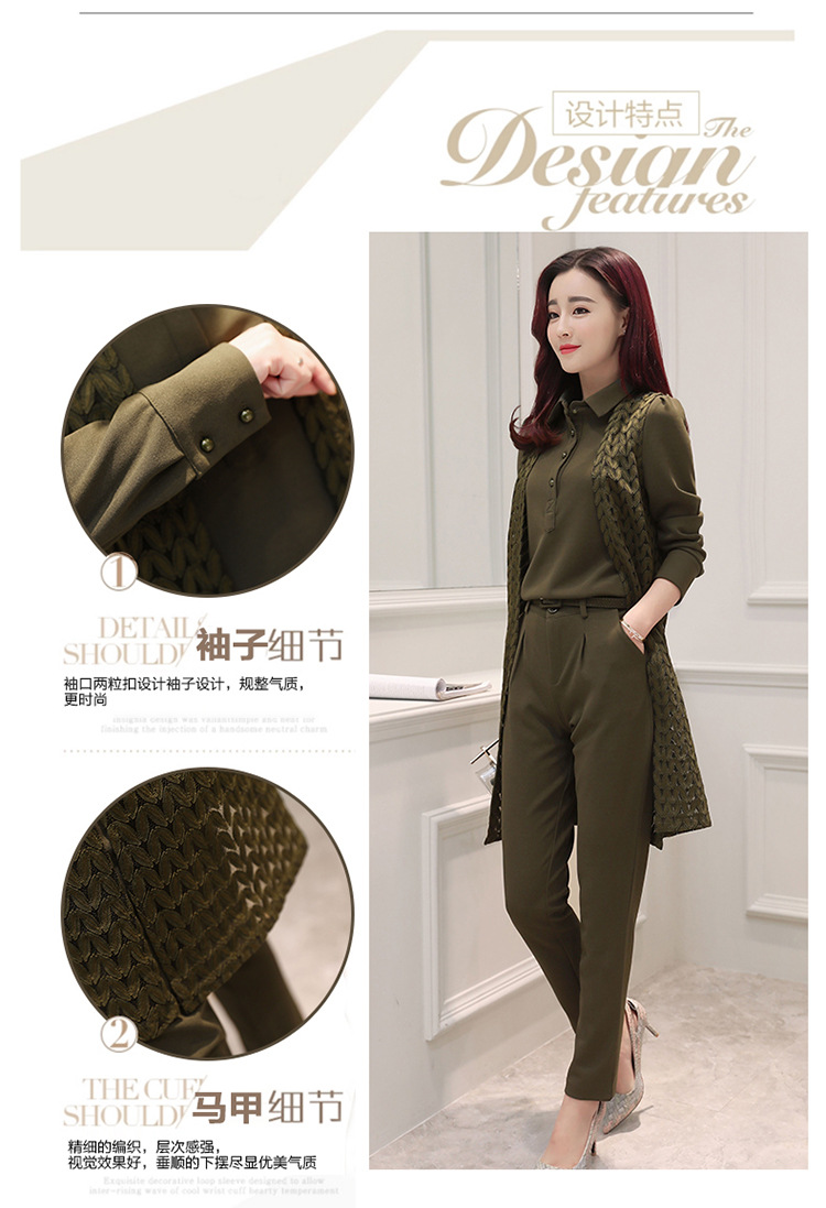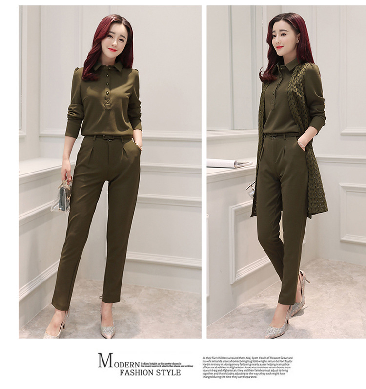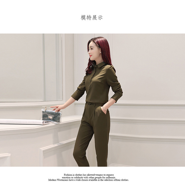 CQ HBLJR6016 春季新品翻领长袖纯色雪纺衫女式哈伦裤三件套