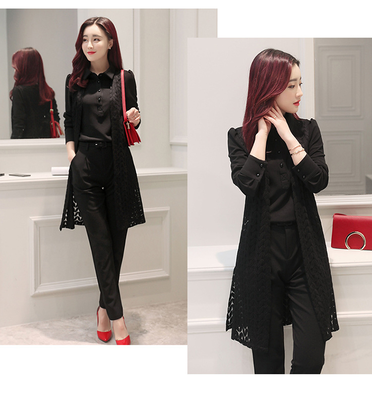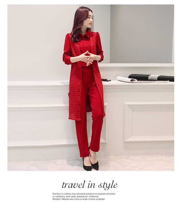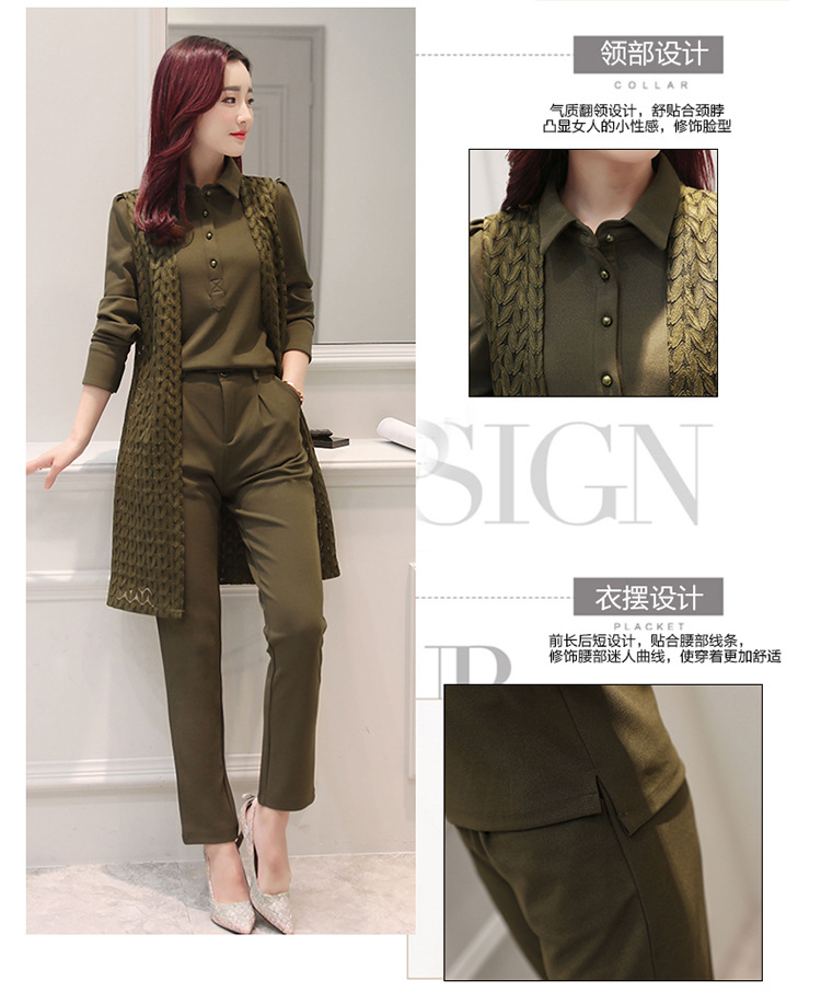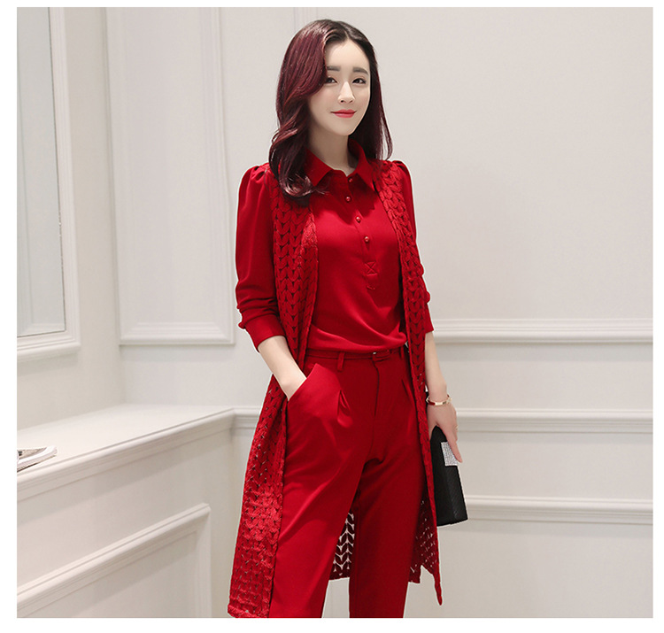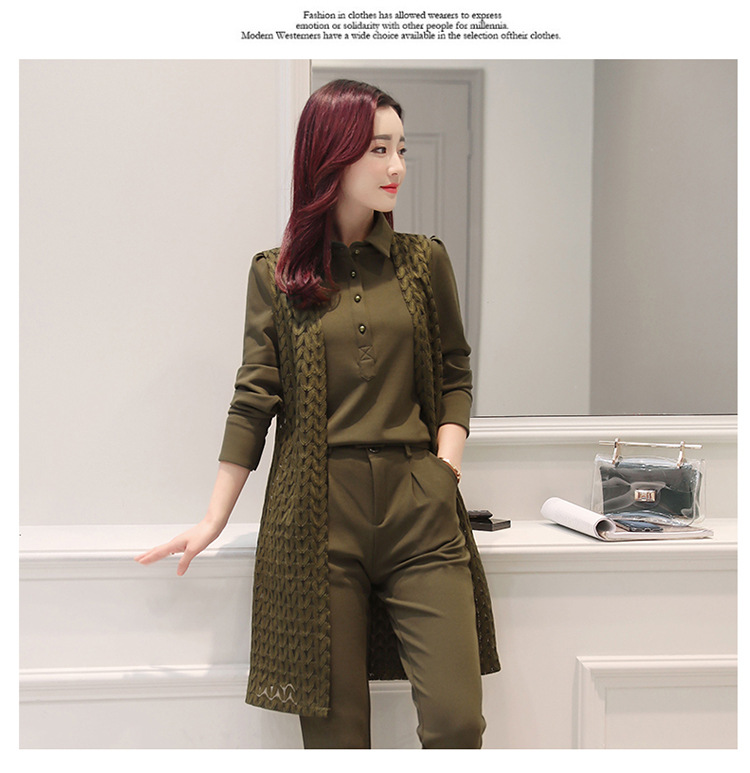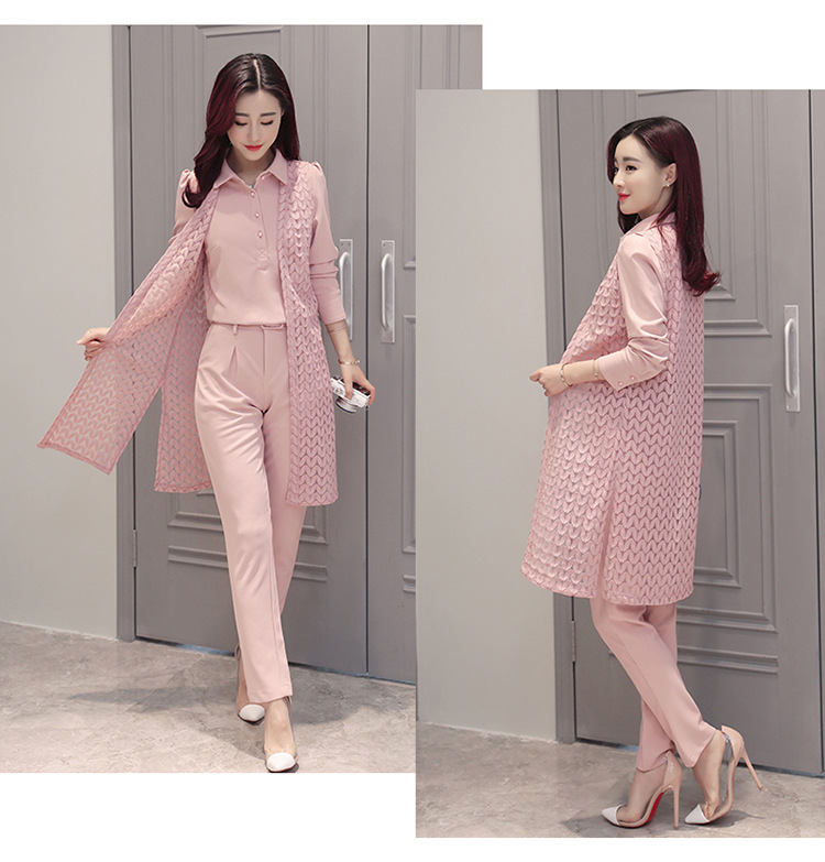 CQ HBLJR6016 春季新品翻领长袖纯色雪纺衫女式哈伦裤三件套
