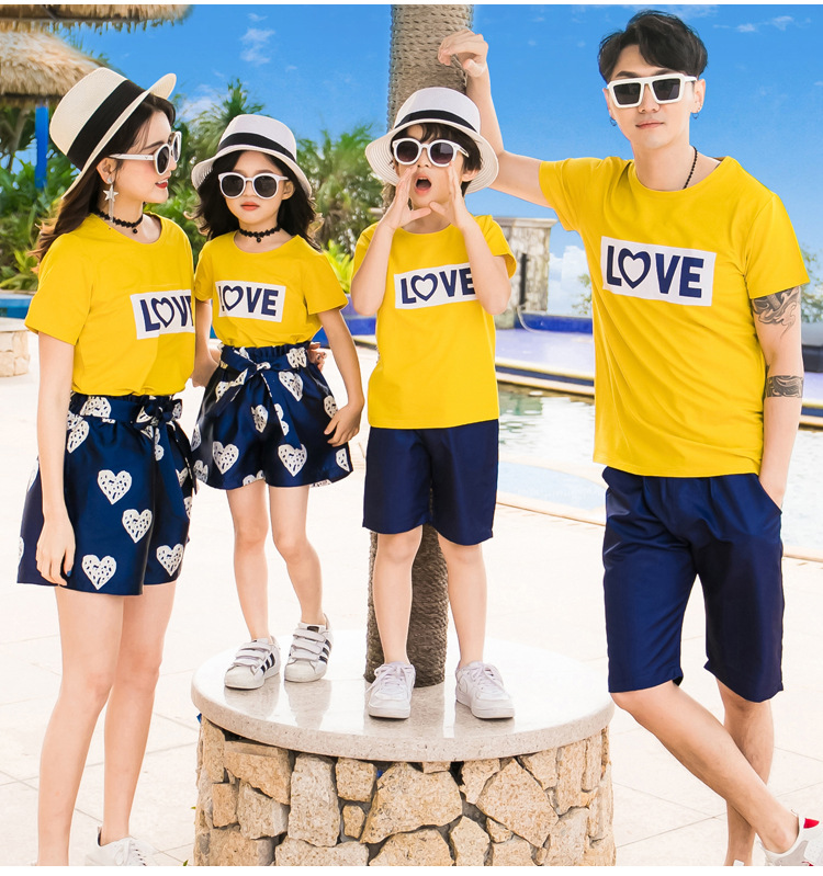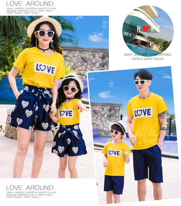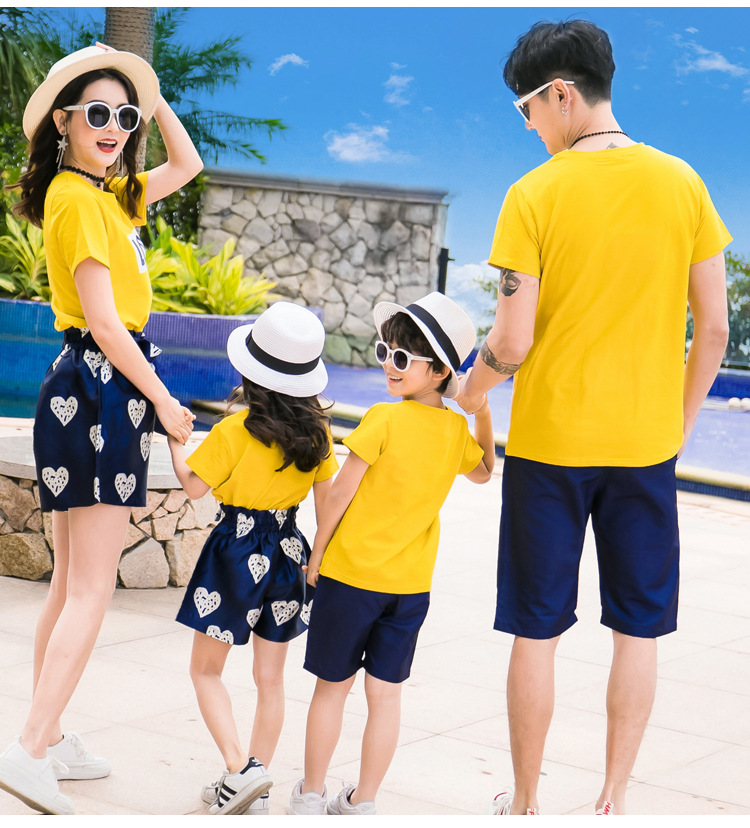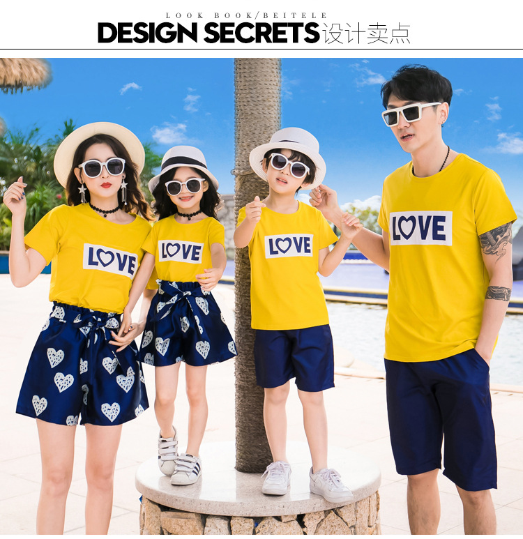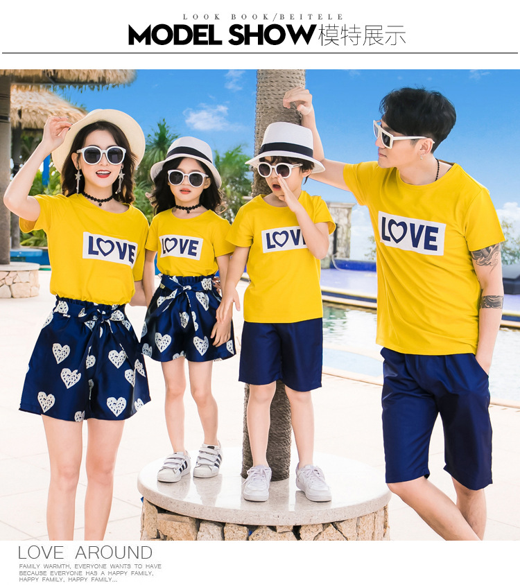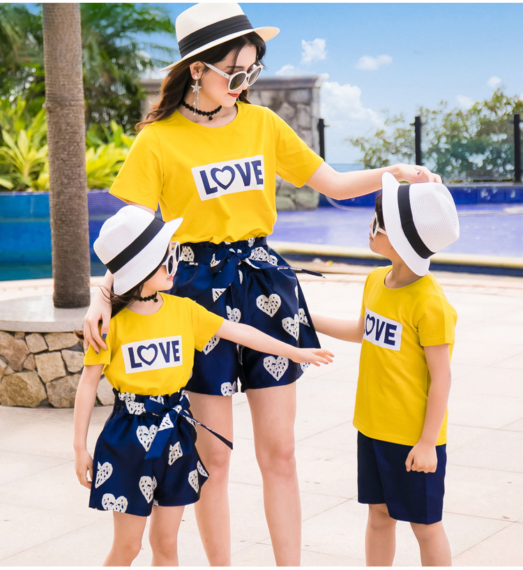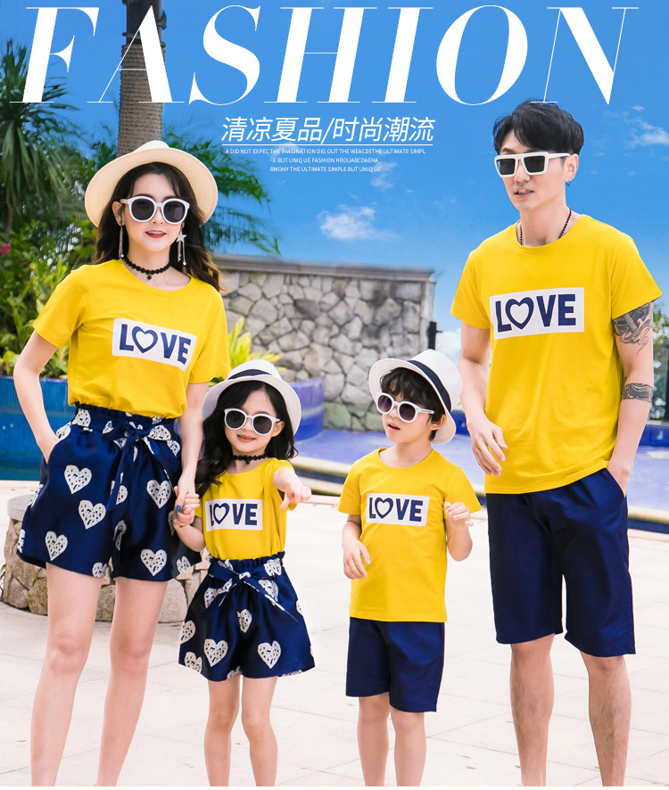 JYZ-(亲子沙滩装)清凉夏装四口母女父子洋气夏季时尚两件套装