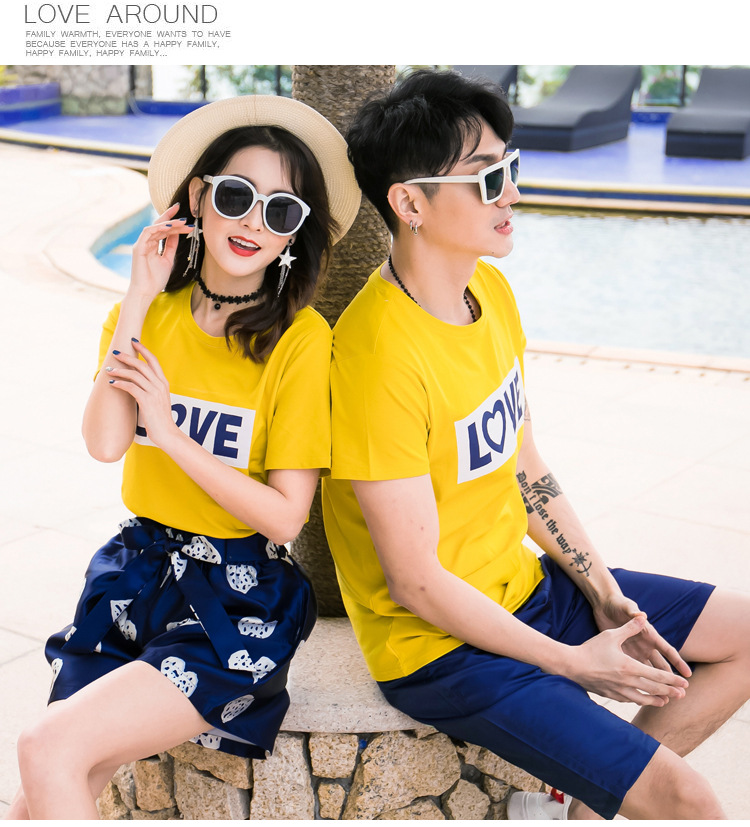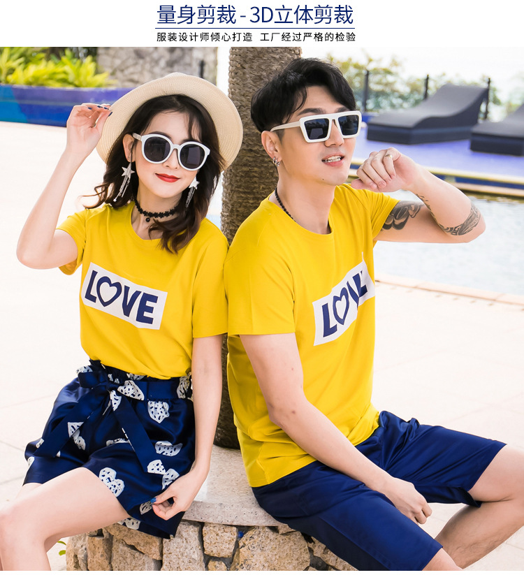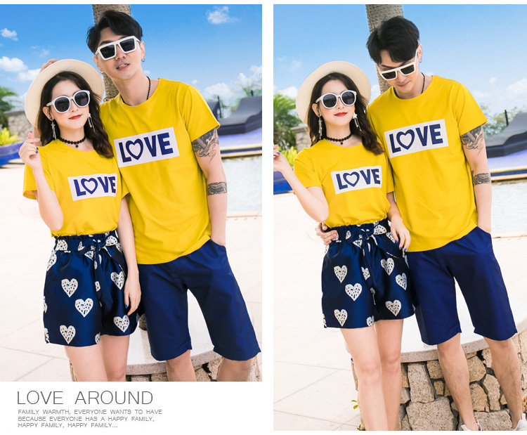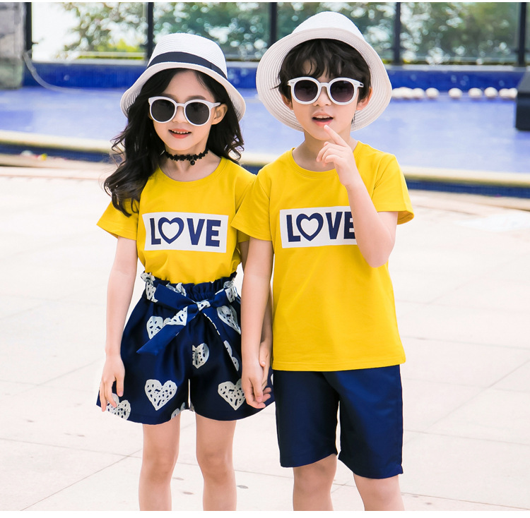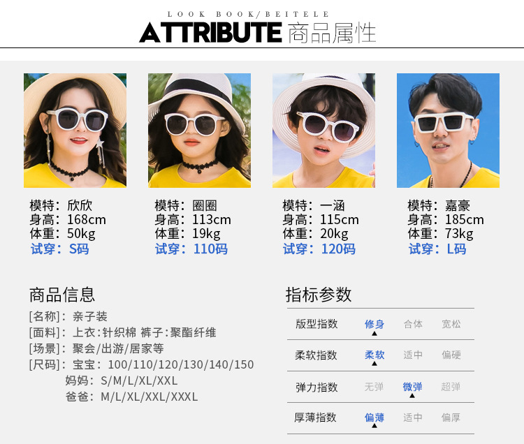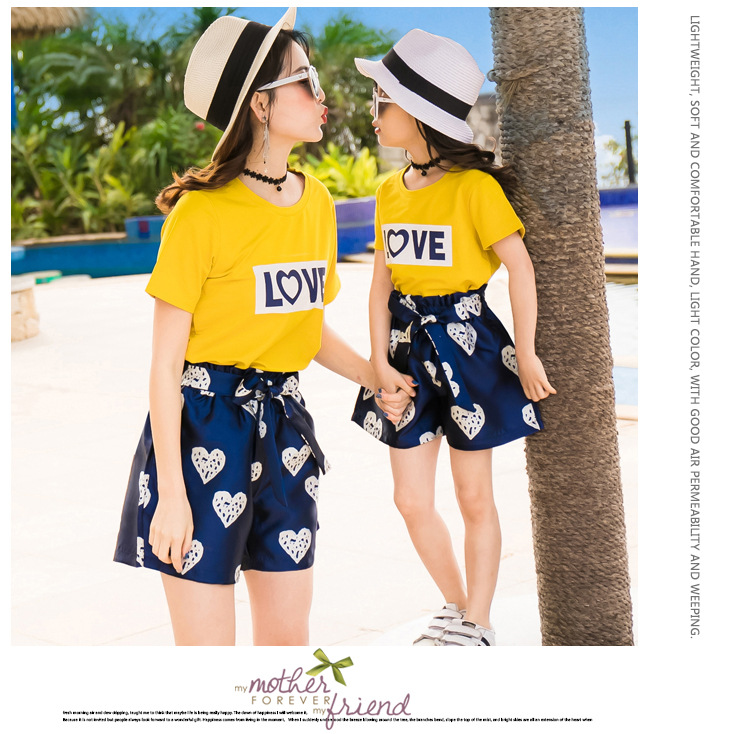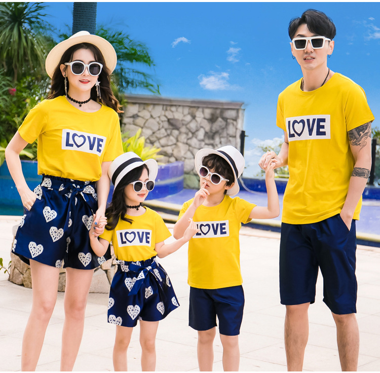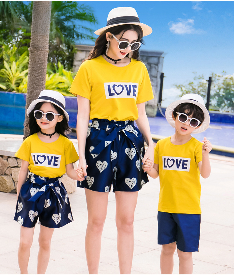 JYZ-(亲子沙滩装)清凉夏装四口母女父子洋气夏季时尚两件套装