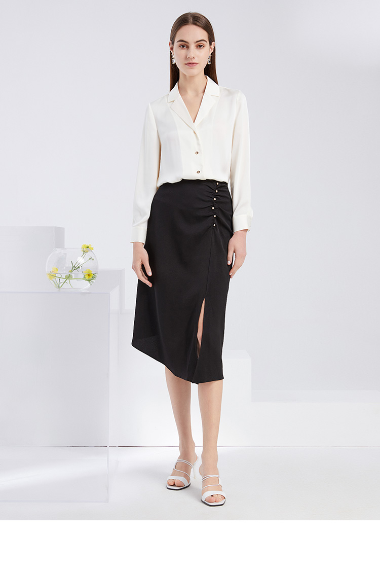 EITIE爱特爱秋季新款时尚气质金属印花衬衫女上衣A2009409