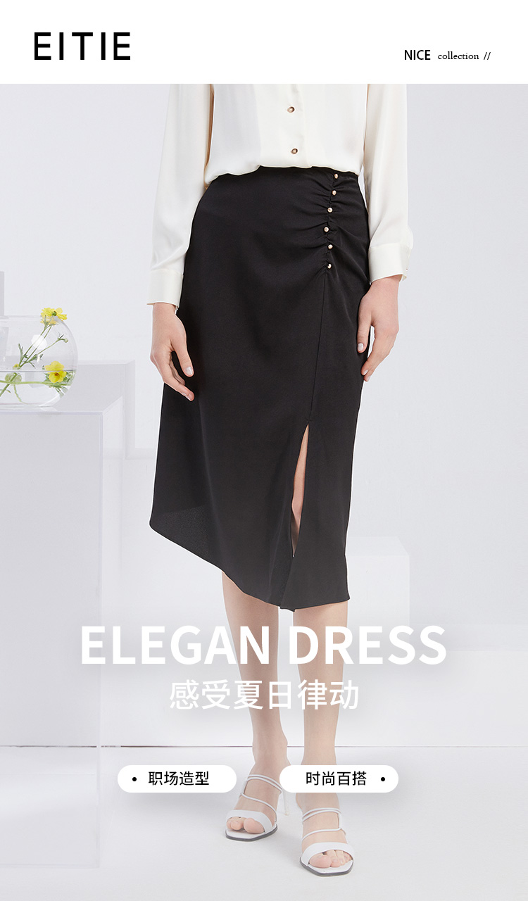 EITIE爱特爱新款女装连衣裙时尚OL漏肩通勤女士中裙3907690