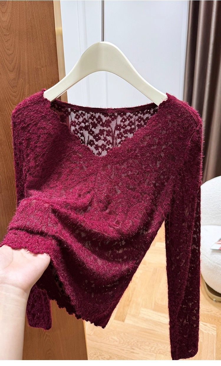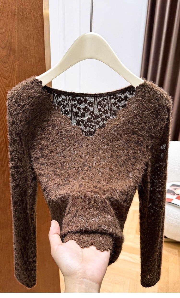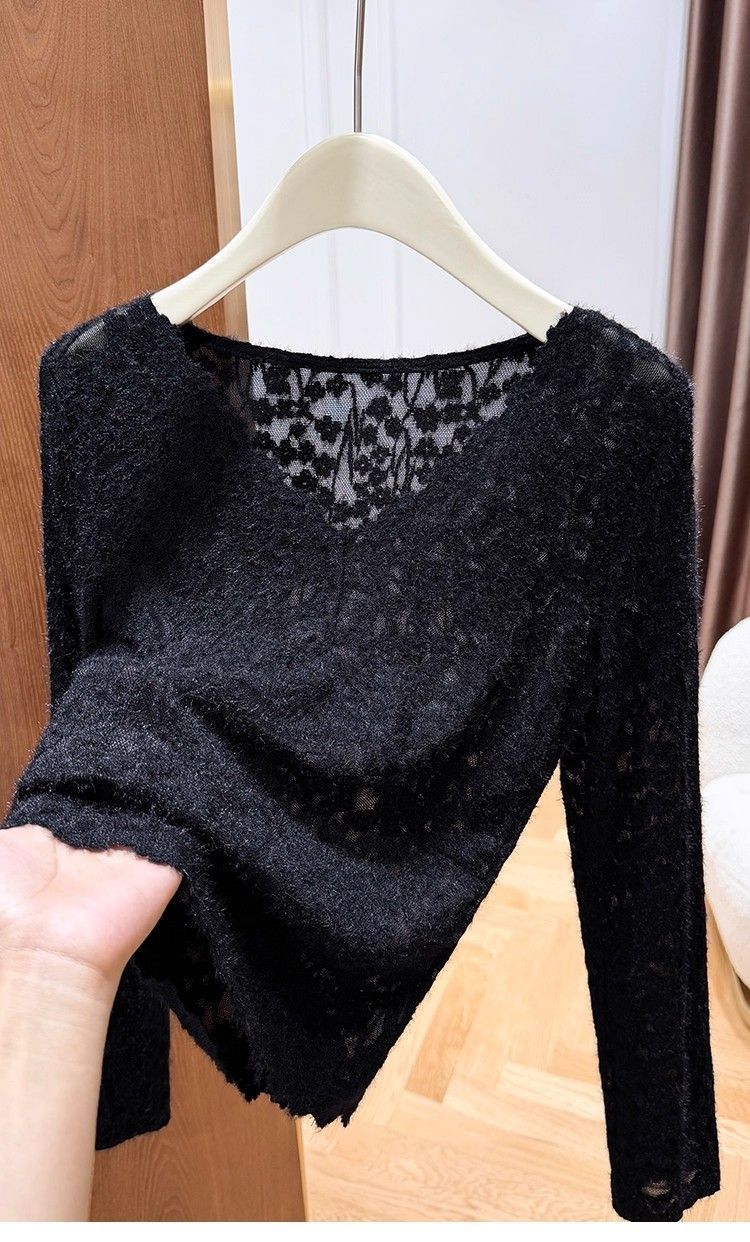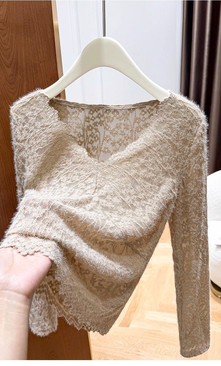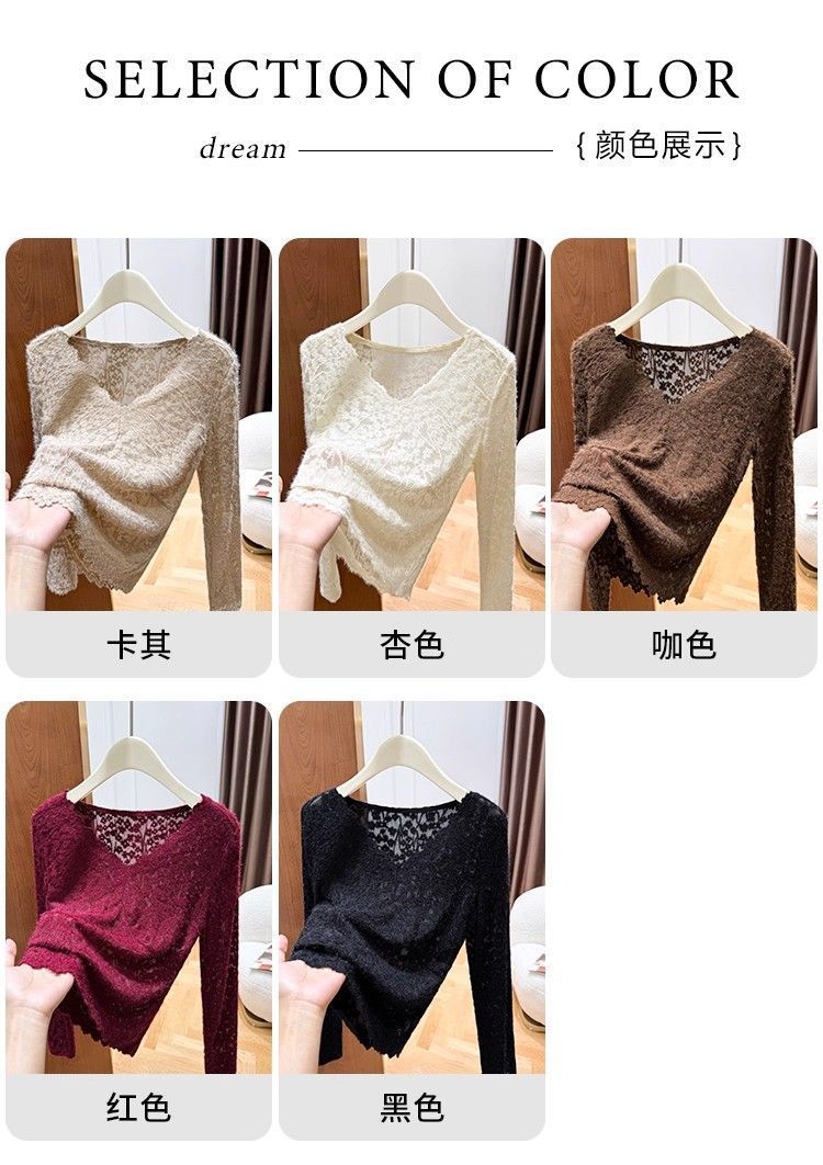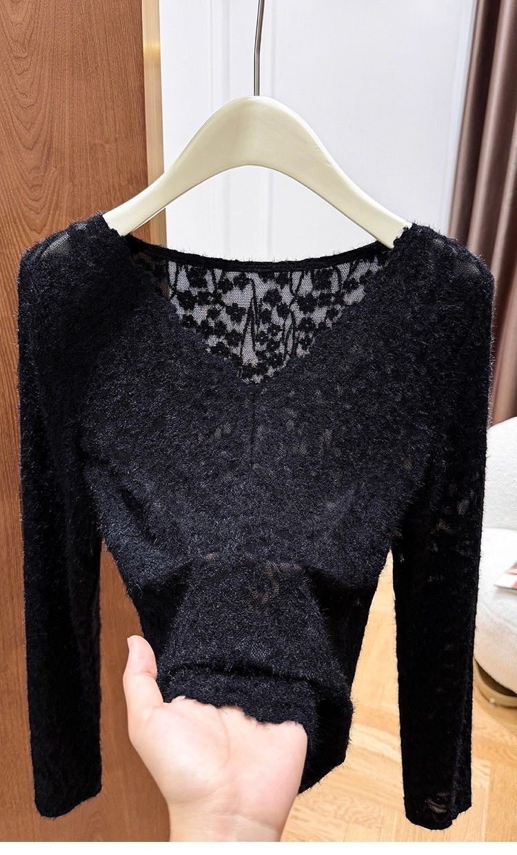 百媚生 镂空磨毛蕾丝打底保暖漂亮长袖内搭