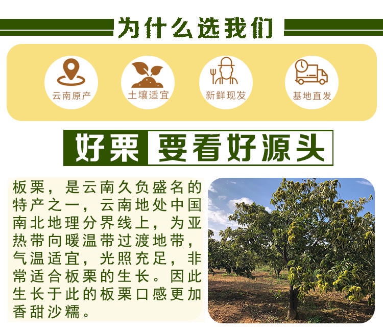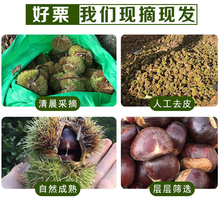 【新鲜生板栗】应季栗子 粒粒饱满 甘甜清脆 色泽自然鲜亮 果仁呈米黄色 生吃甘甜清脆 煮熟吃香甜软糯 多种规格任选