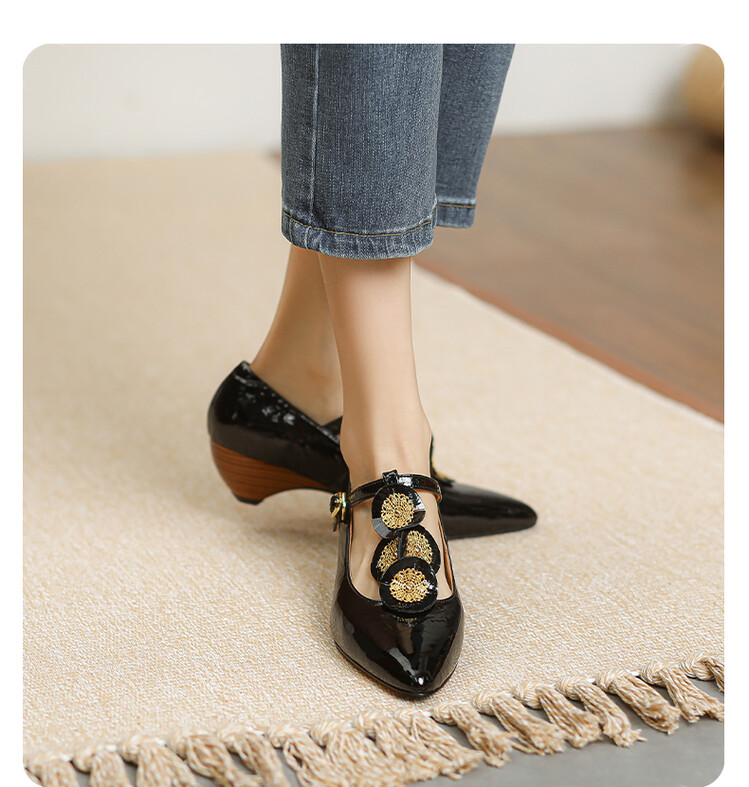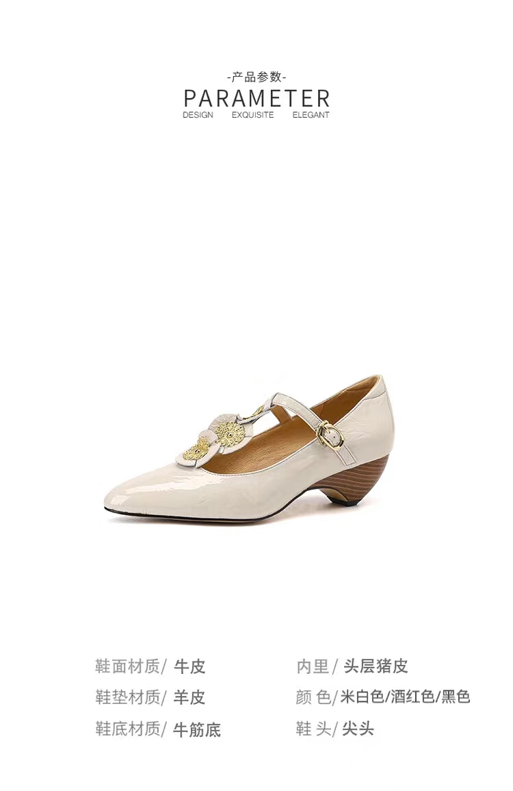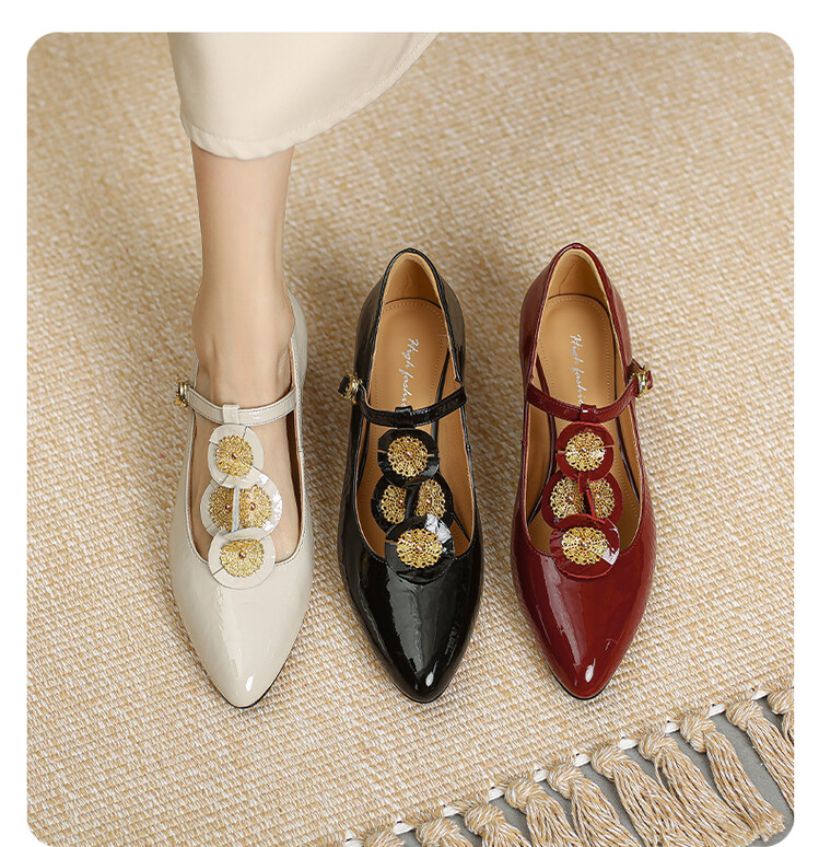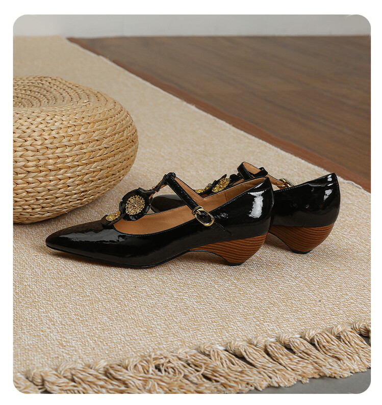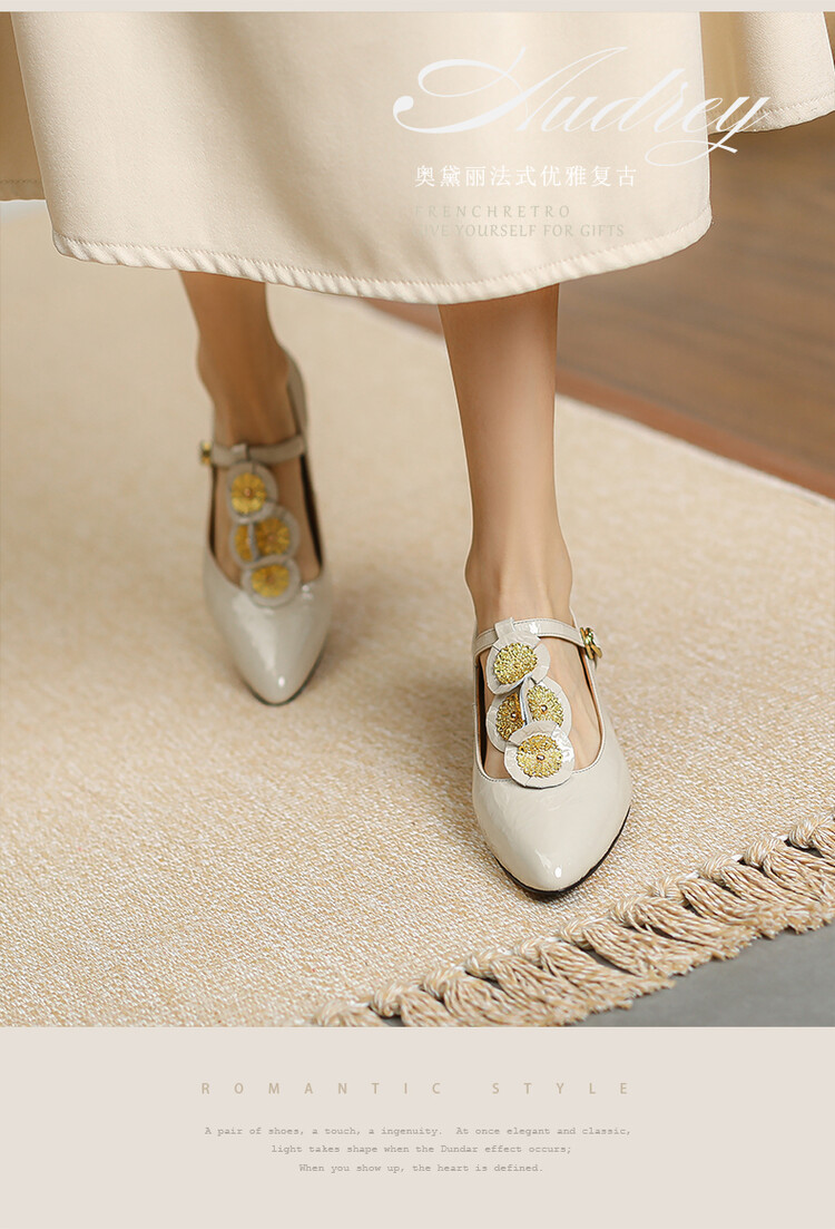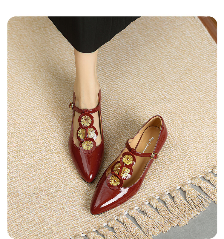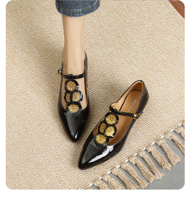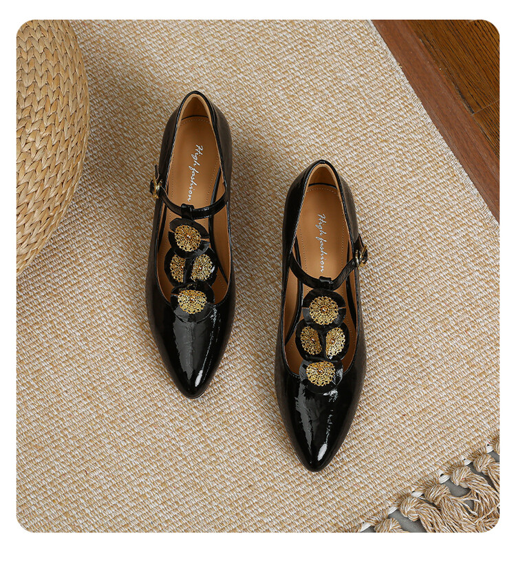 复古法式低跟花朵玛丽珍鞋,漆皮时尚尖头浅口单鞋MBJR&708【预售5天】