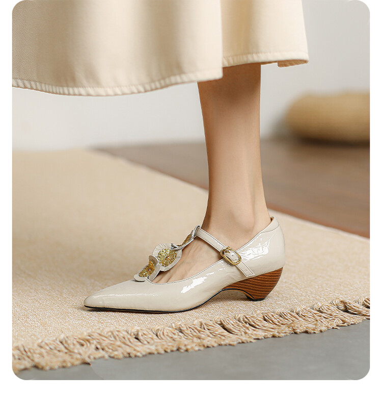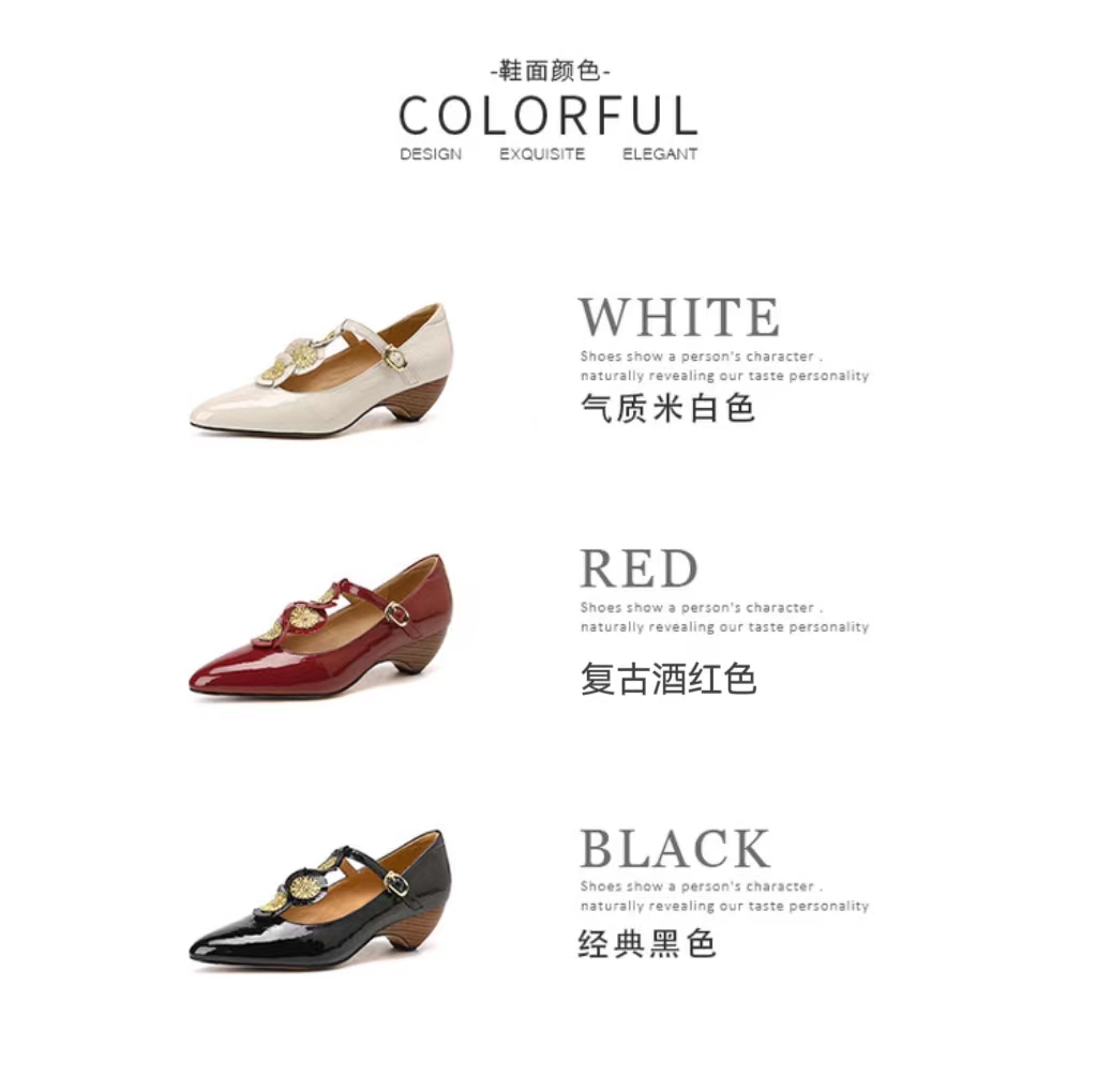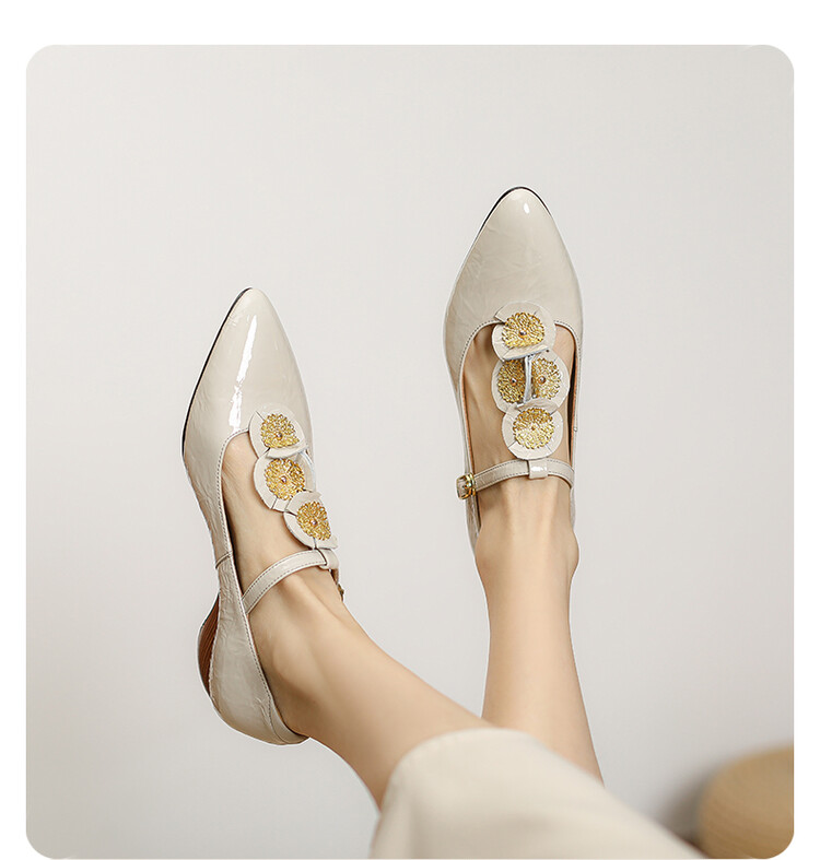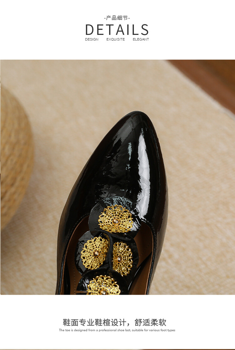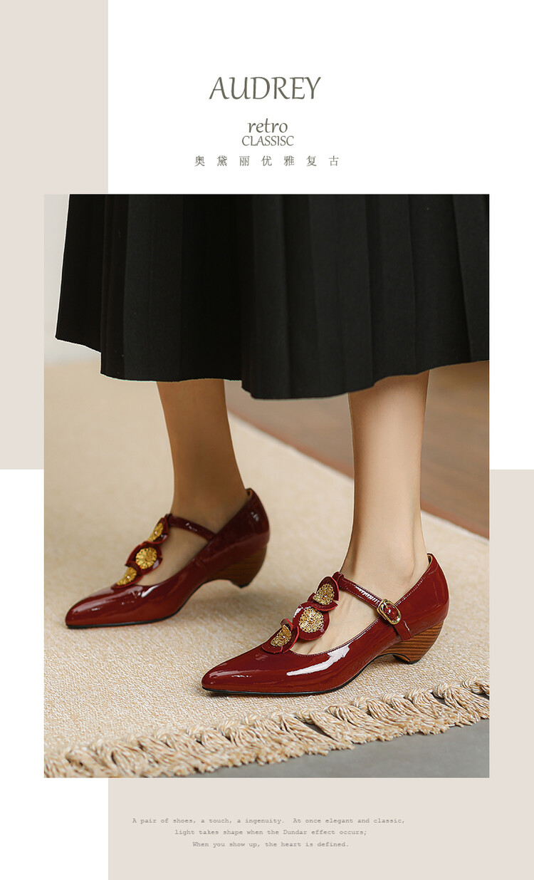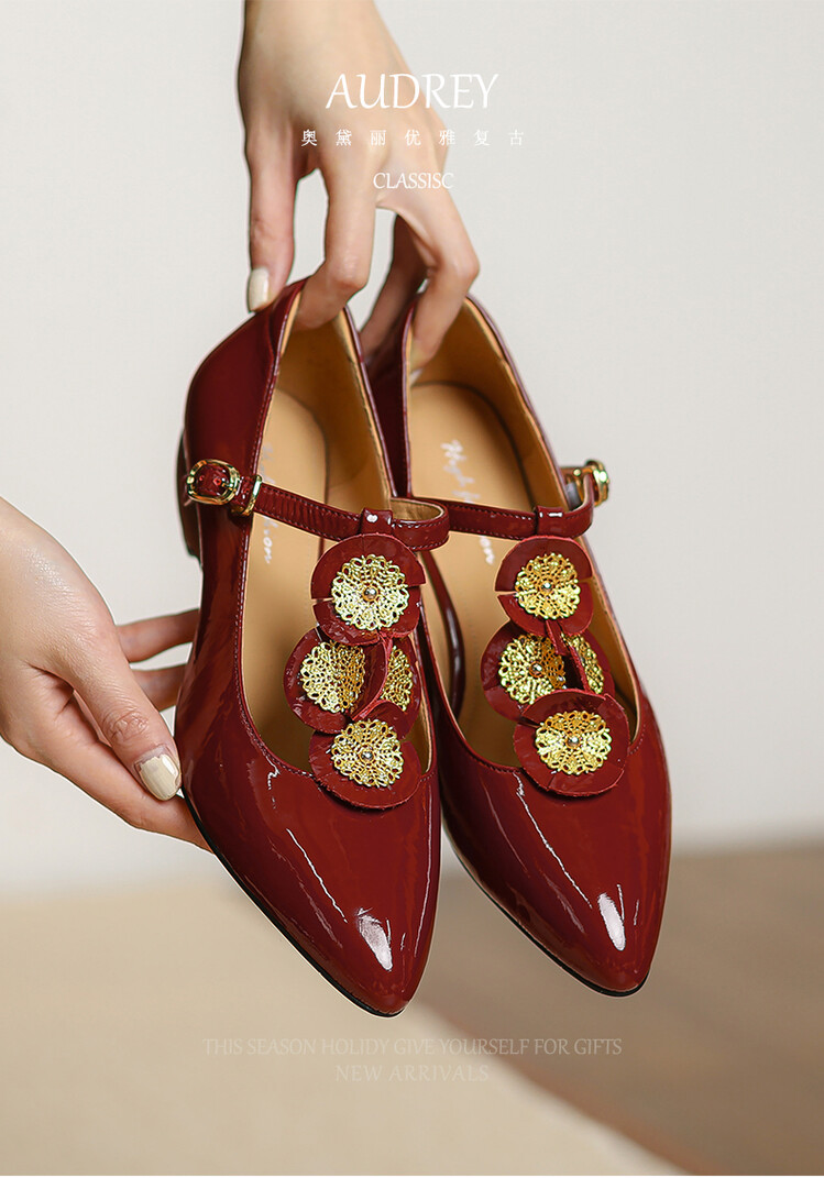 复古法式低跟花朵玛丽珍鞋,漆皮时尚尖头浅口单鞋MBJR&708【预售5天】