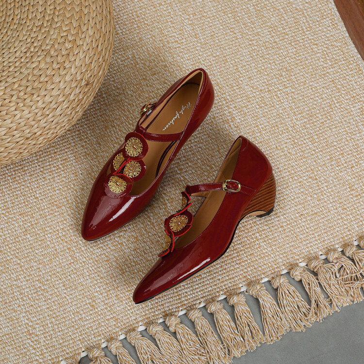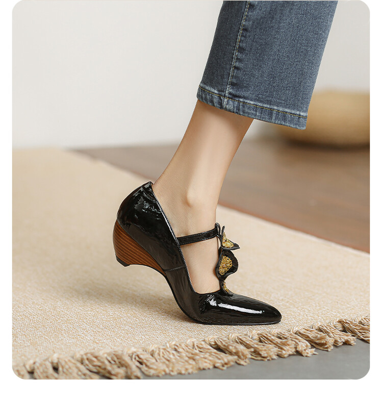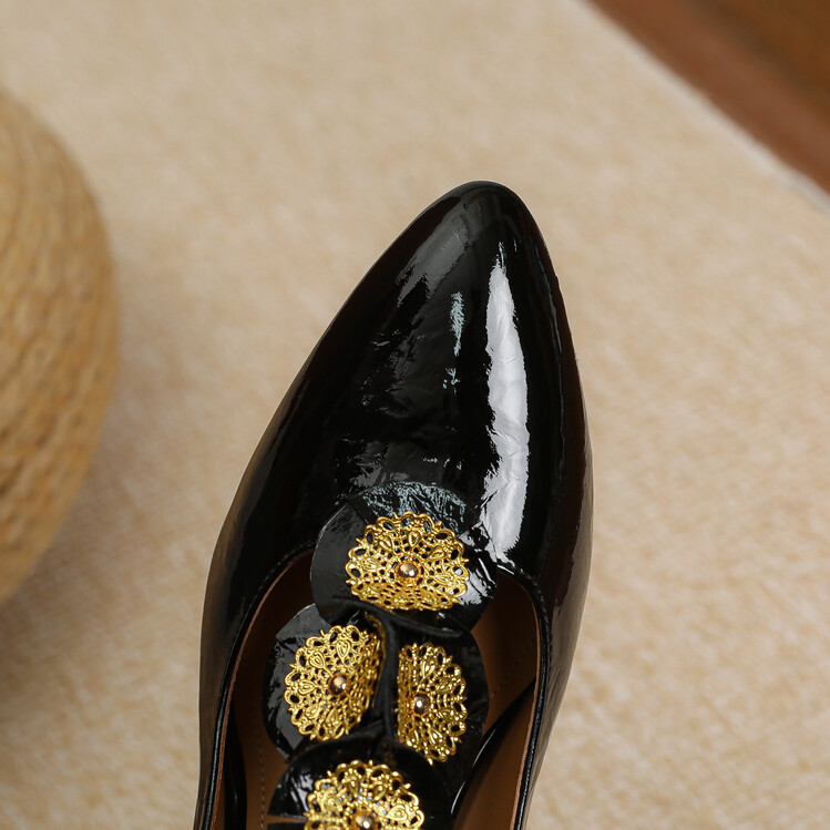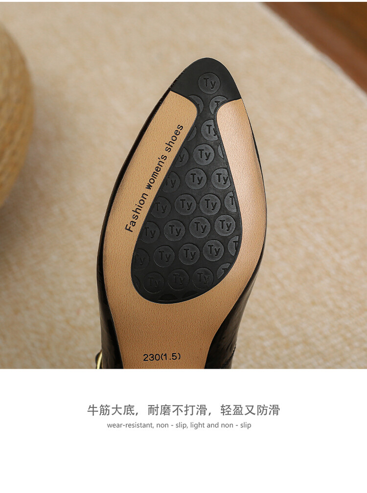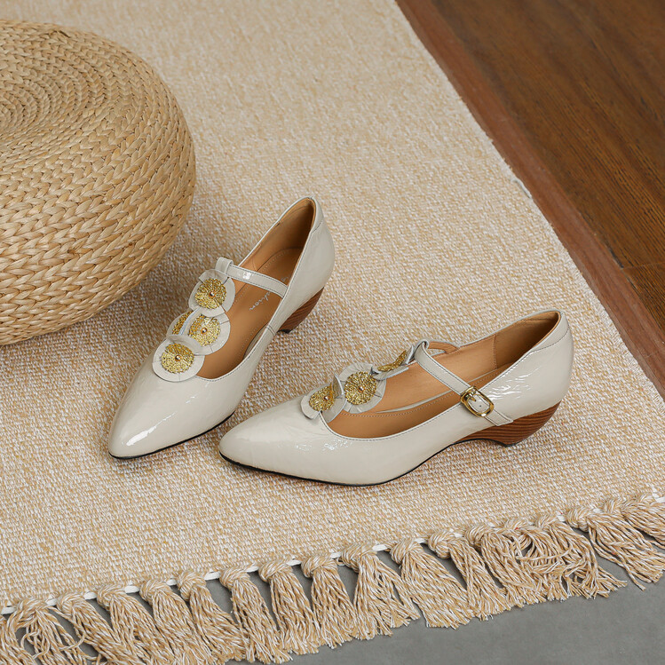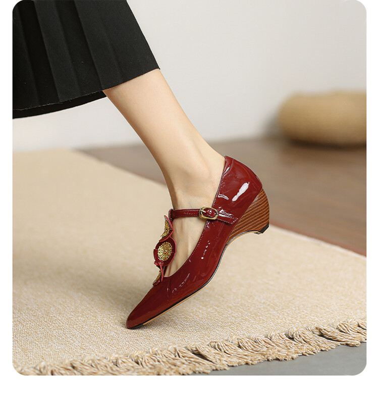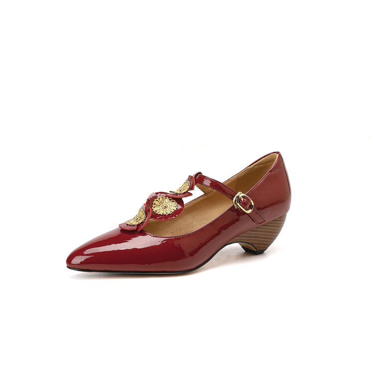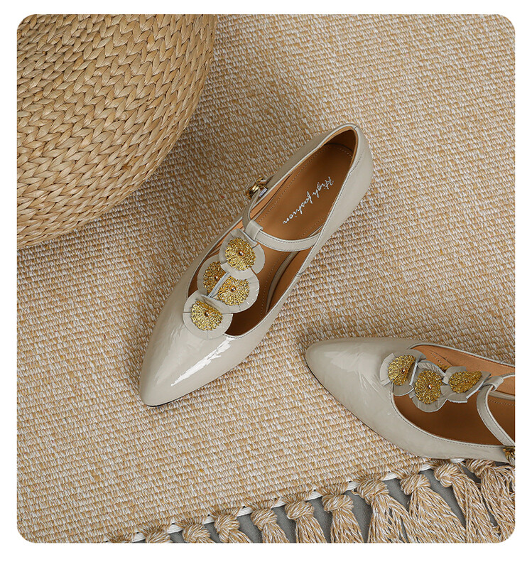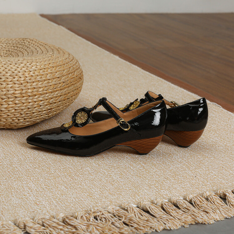 复古法式低跟花朵玛丽珍鞋,漆皮时尚尖头浅口单鞋MBJR&708【预售5天】