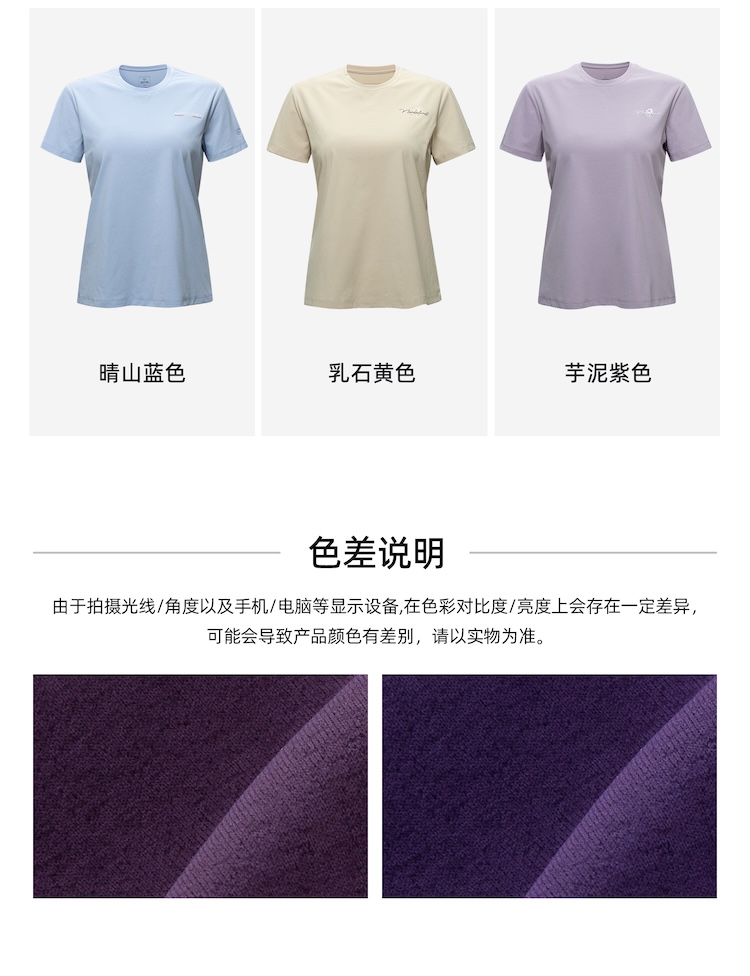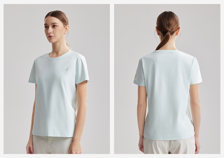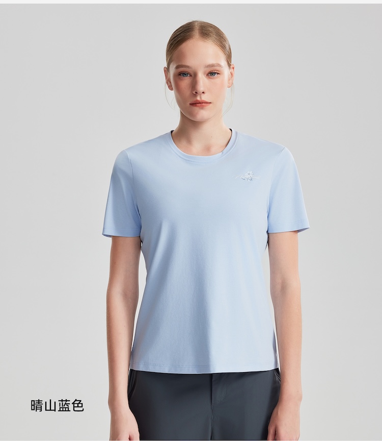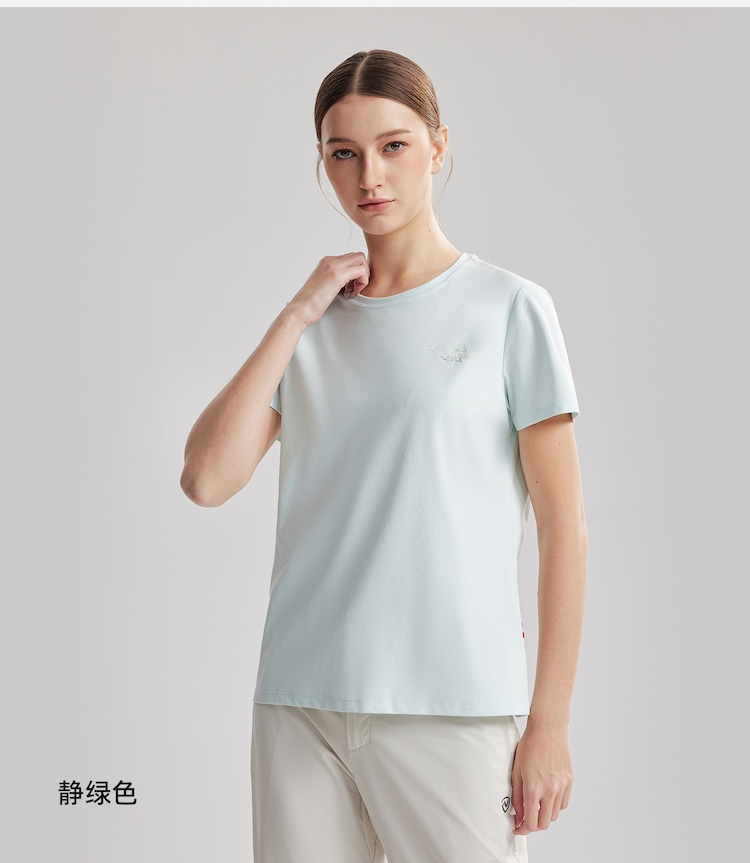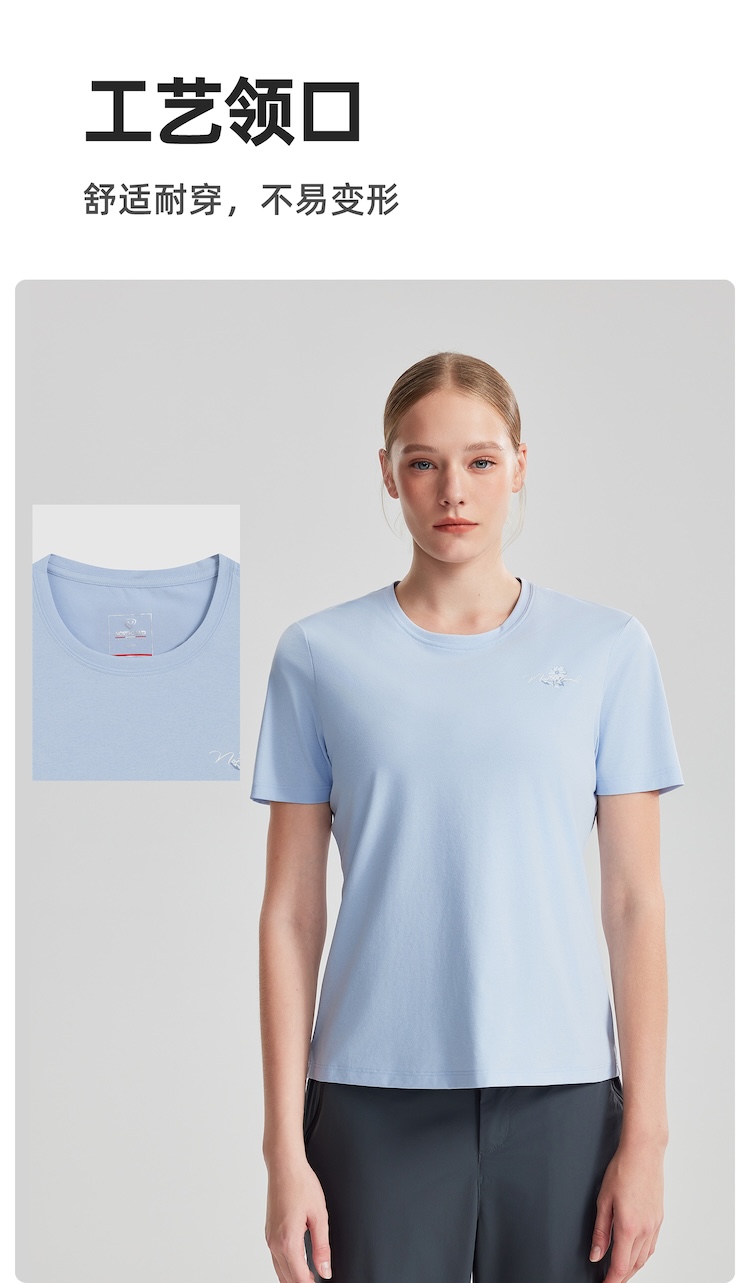 诺诗兰 向岳II女式圆领短袖T恤 科技防晒阻隔UVA/UVB多波段紫外线,99%防护力,吸湿速干面料保持清爽不粘腻,户外出行更安心舒适。NTSGT2324E