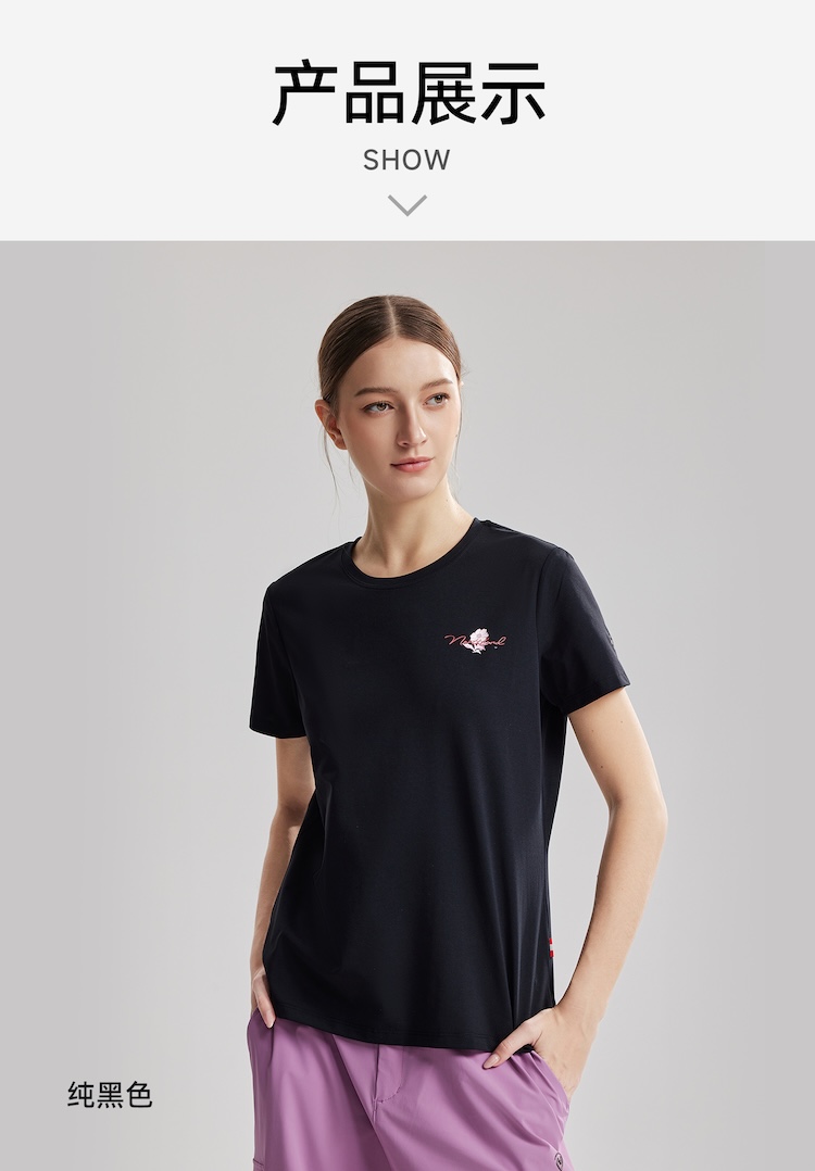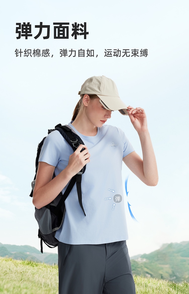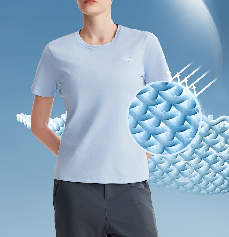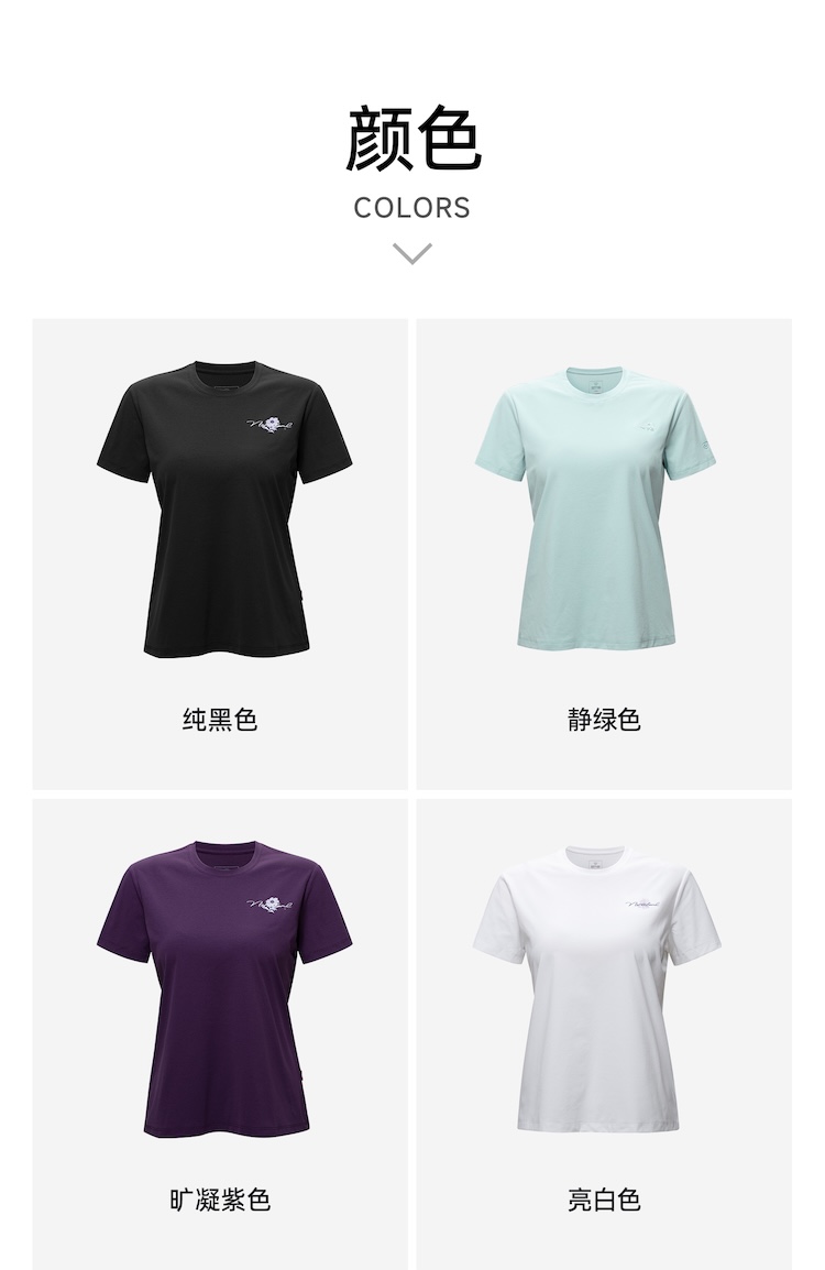 诺诗兰 向岳II女式圆领短袖T恤 科技防晒阻隔UVA/UVB多波段紫外线,99%防护力,吸湿速干面料保持清爽不粘腻,户外出行更安心舒适。NTSGT2324E