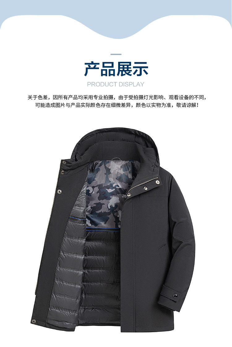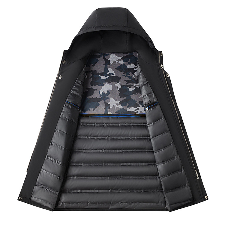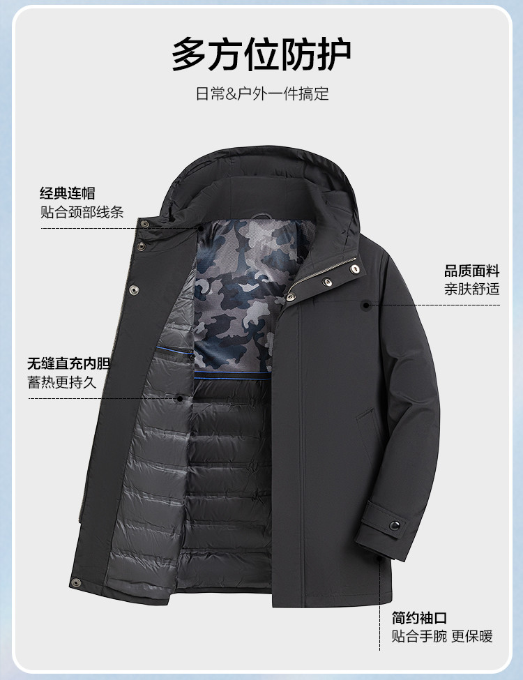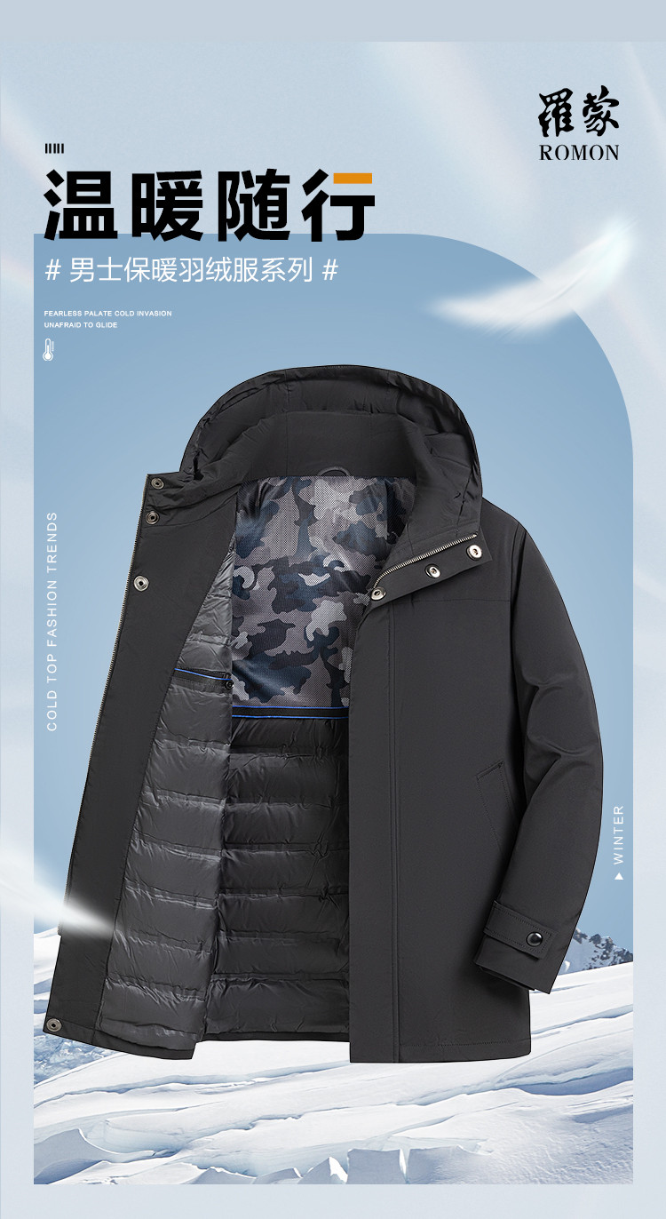 【90白鸭绒】罗蒙冬季男士连帽羽绒服厚实保暖中年爸爸装中长款羽绒外套