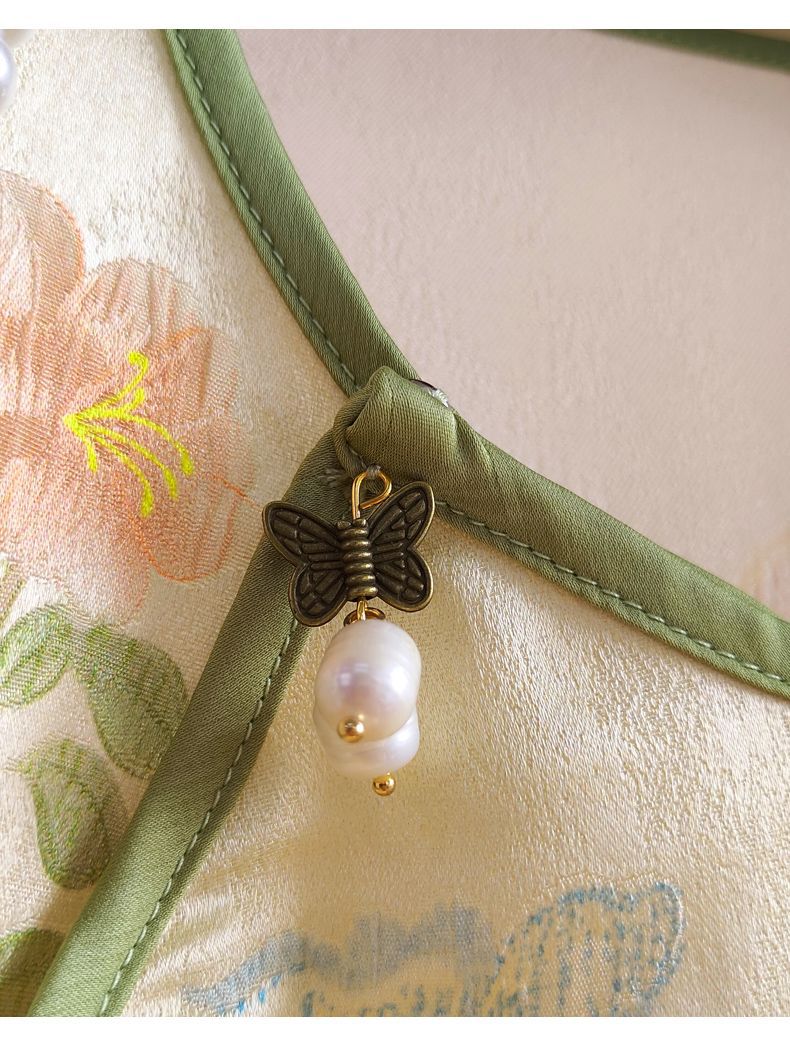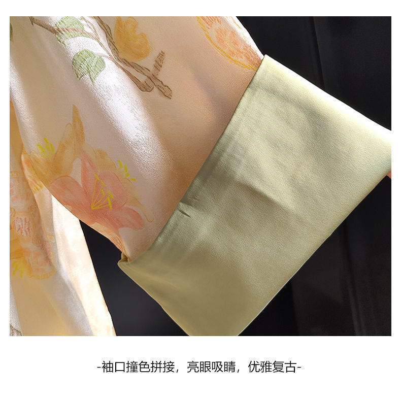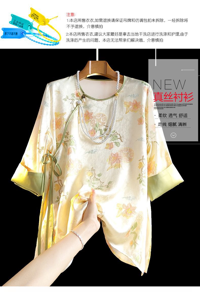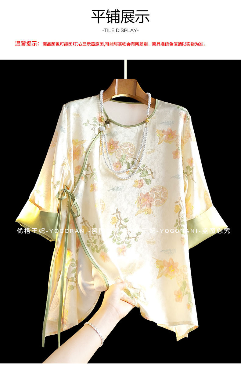 丁摩 小香风衬衫女夏季新款宽松复古提花新中式植物花卉轻国风上衣5ZF-298