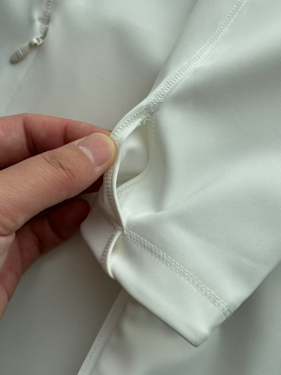 接缝处三针五线覆盖缝制,大大提高了整体衣服的平整度和立体感,还有服装的耐用性