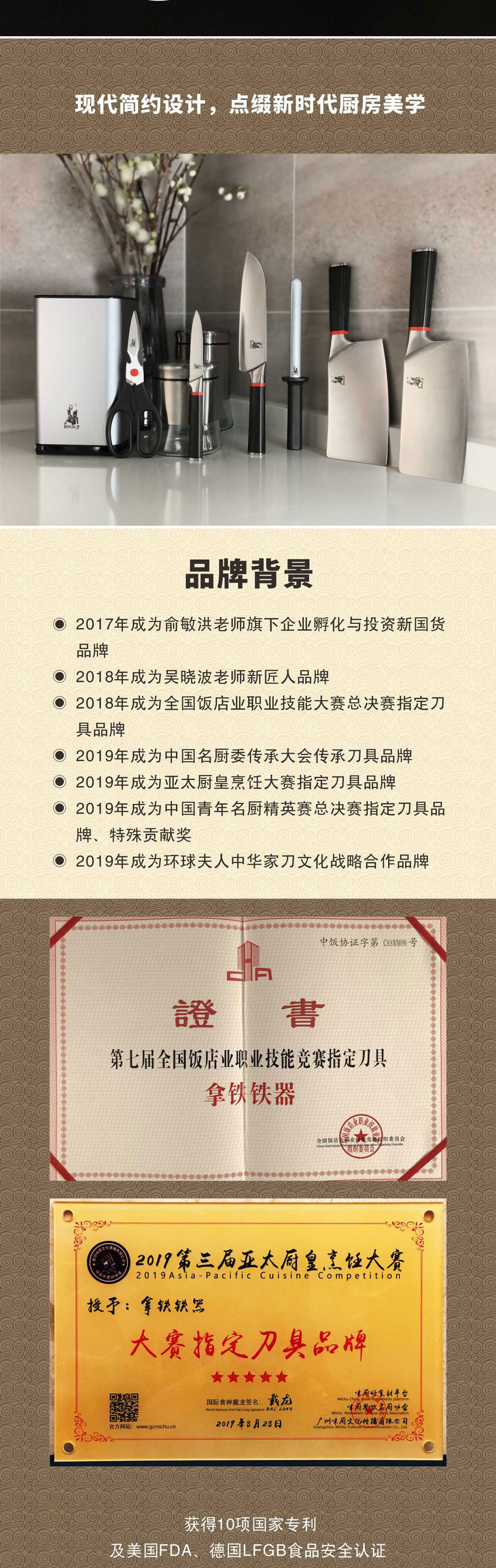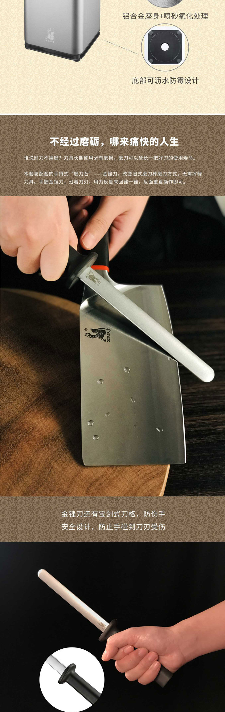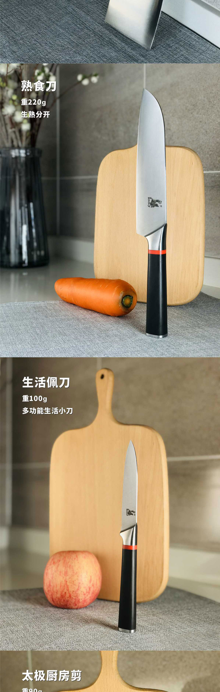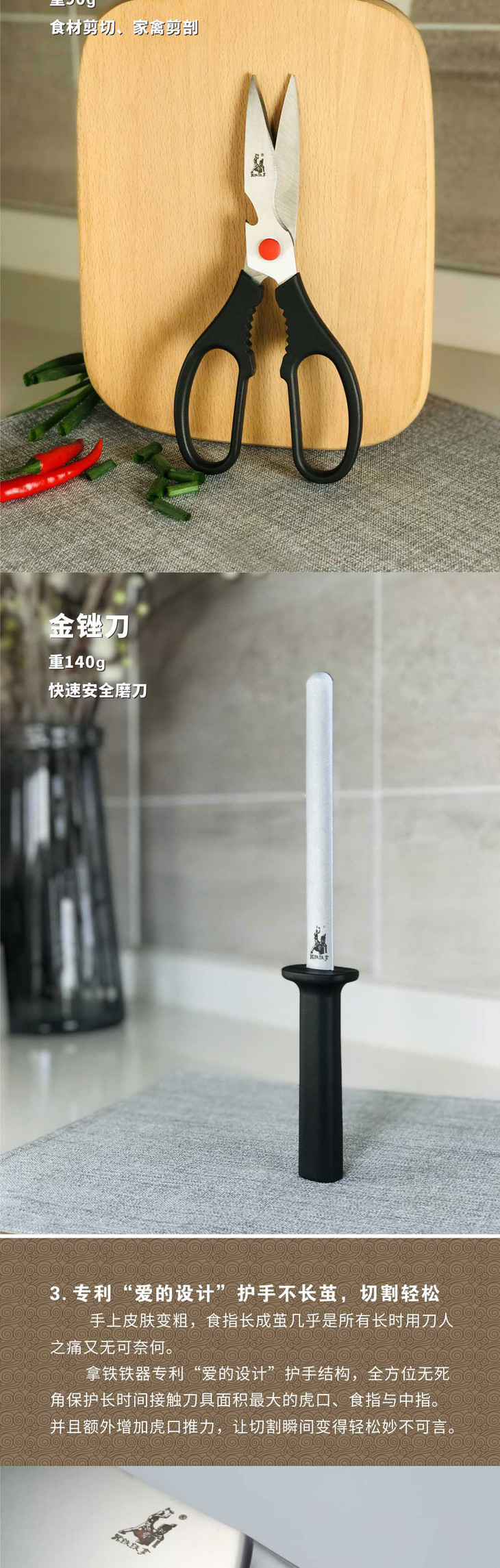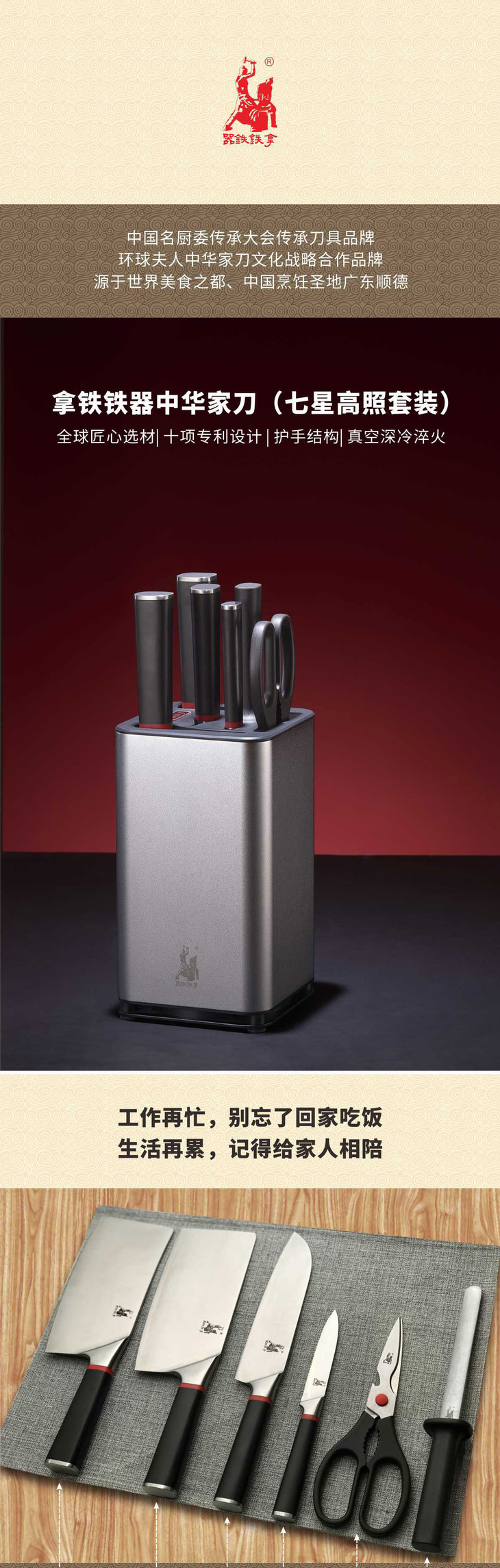 【拿铁铁器中华家刀】美系列M3七件套 七星高照厨房全套菜刀 切片刀斩骨刀熟食刀水果刀剪刀磨刀棒