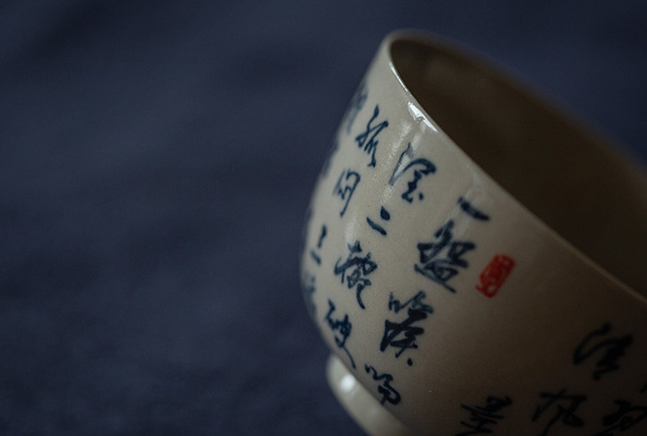 碗身上以青花的水墨笔法手书“七碗茶诗歌“,
