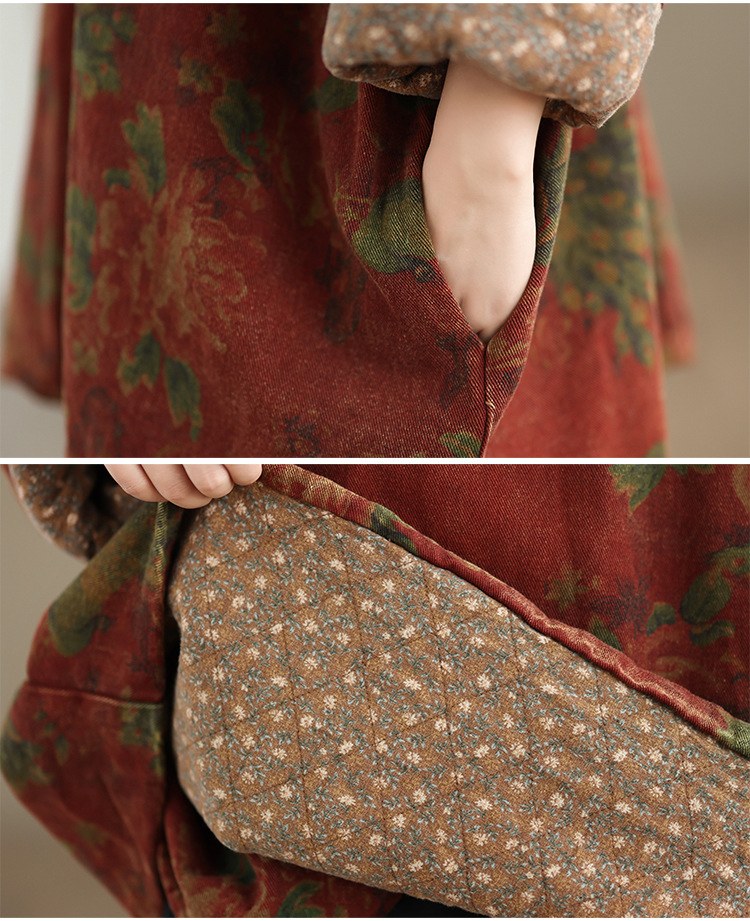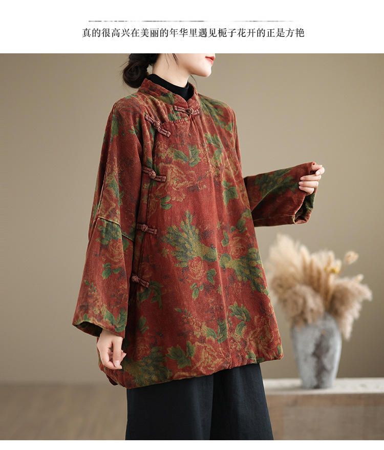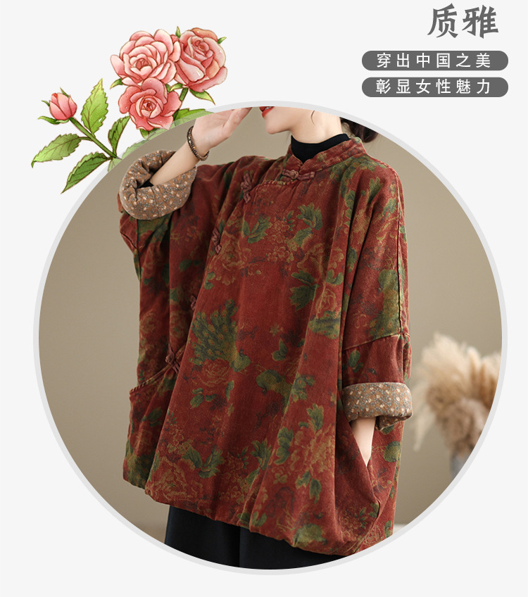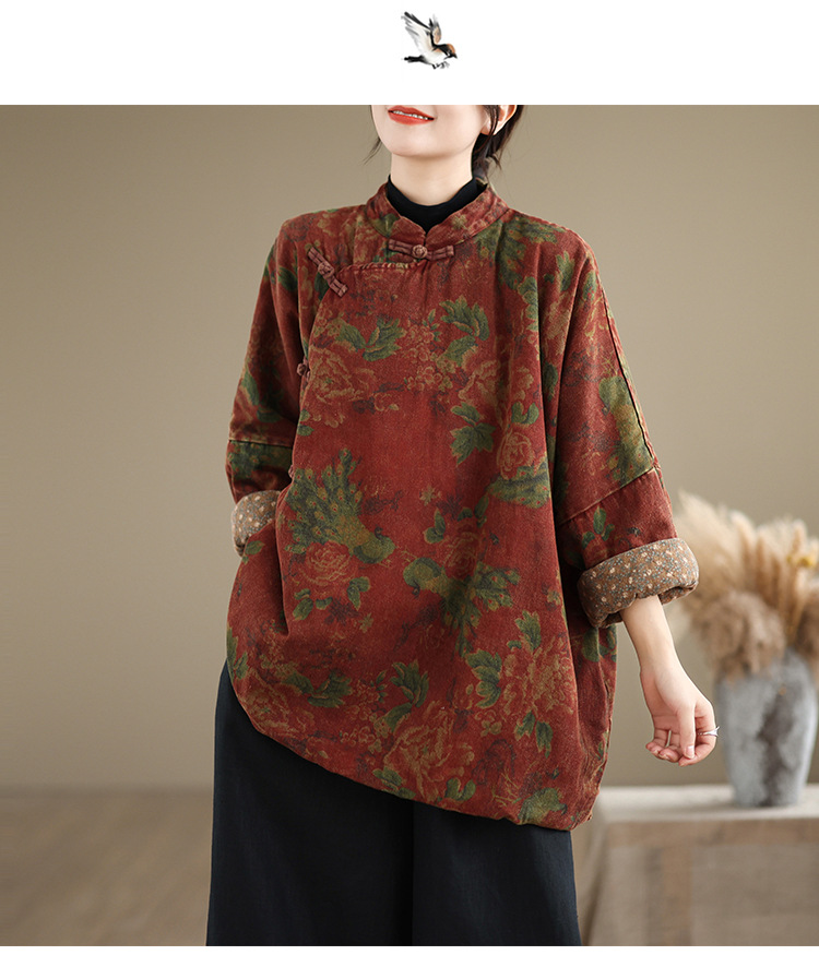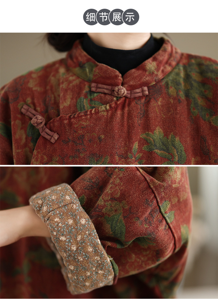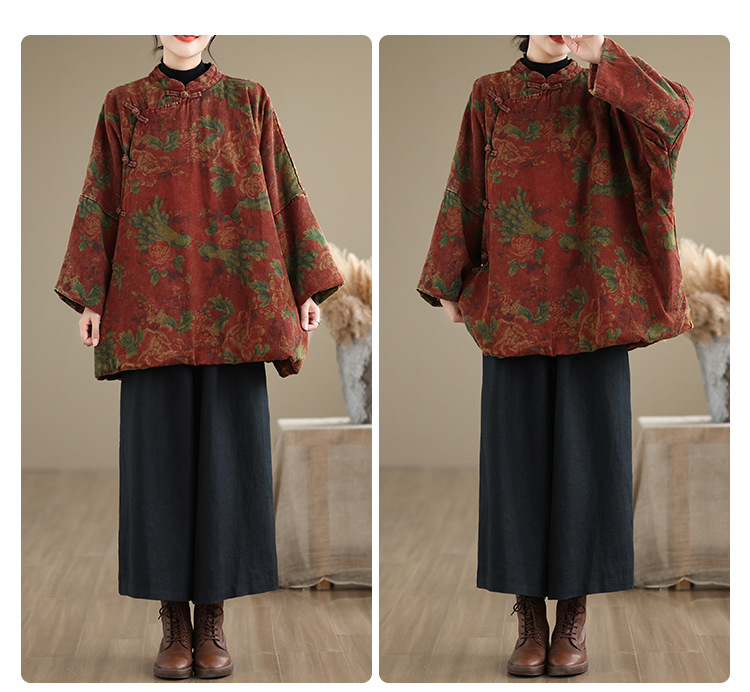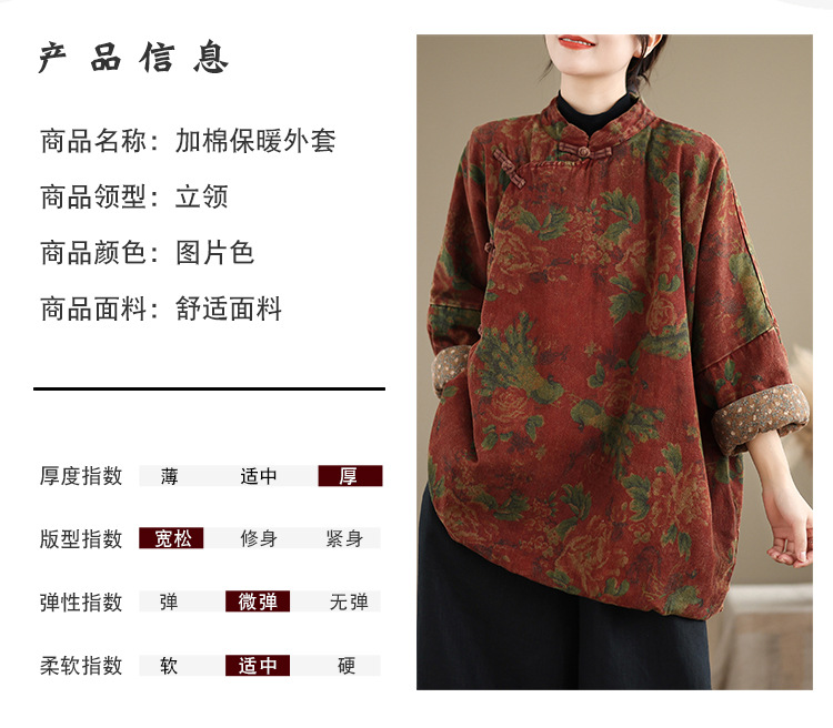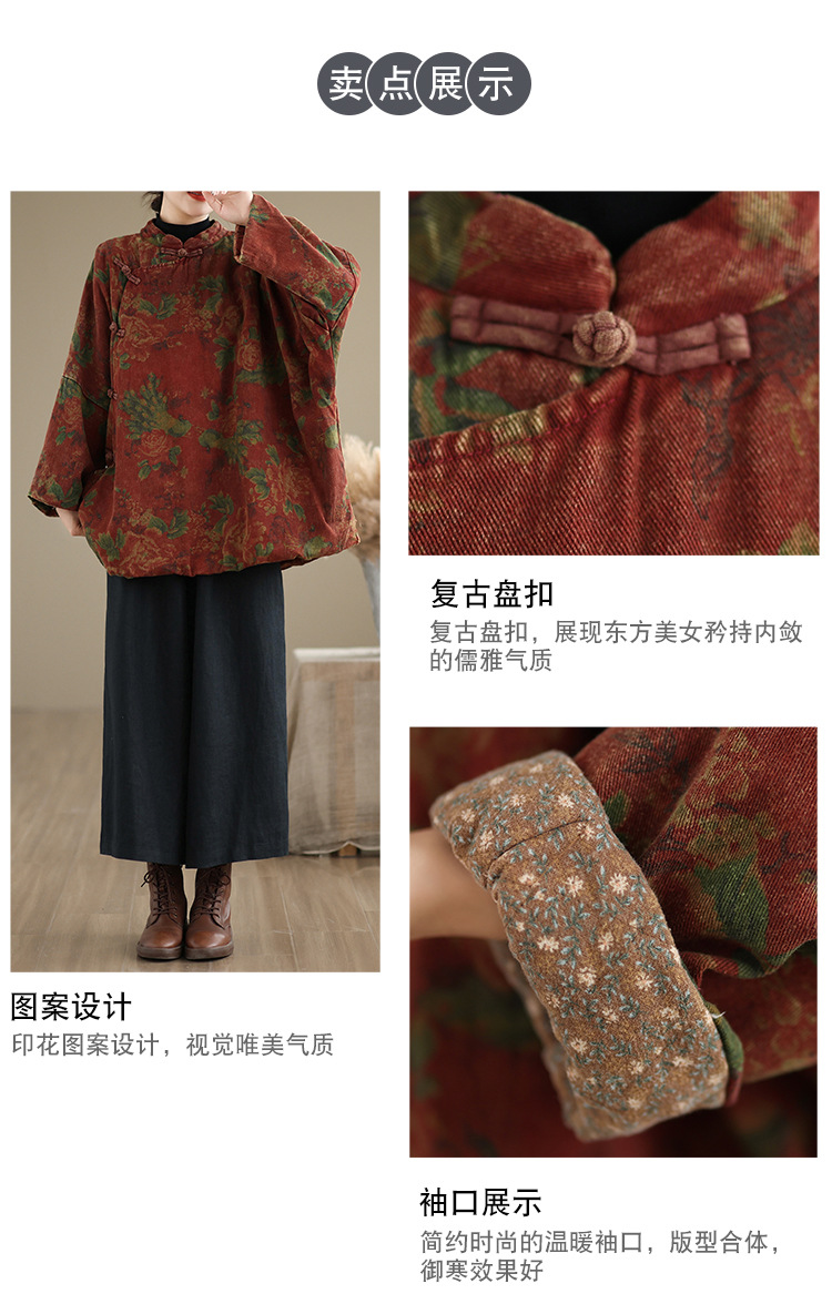 AHM9650 2024冬季新款女装新中式复古斜纹棉盘扣印花棉衣外套宽松大码棉服