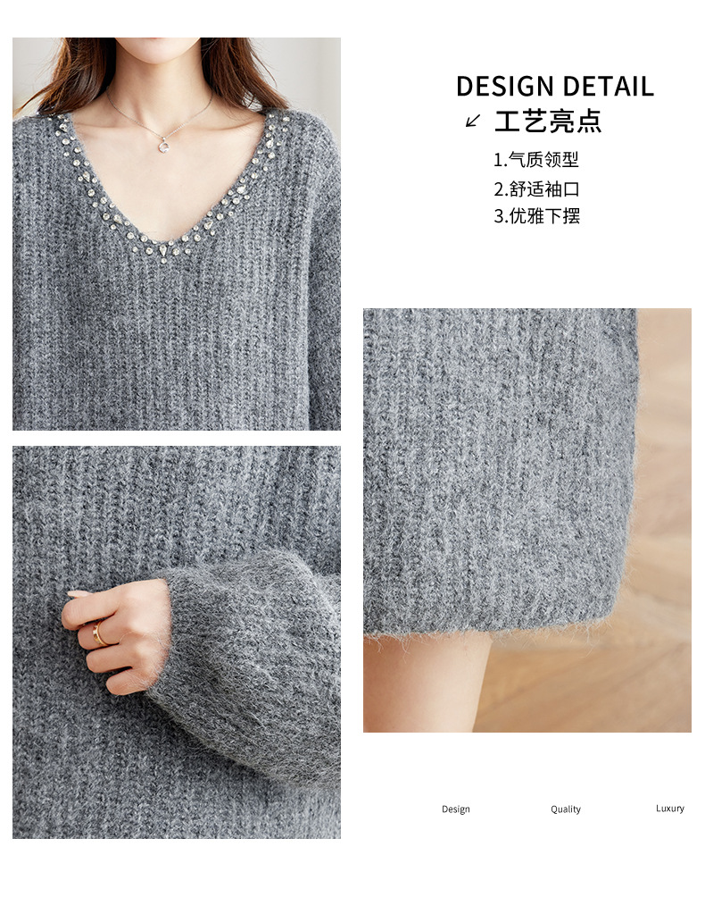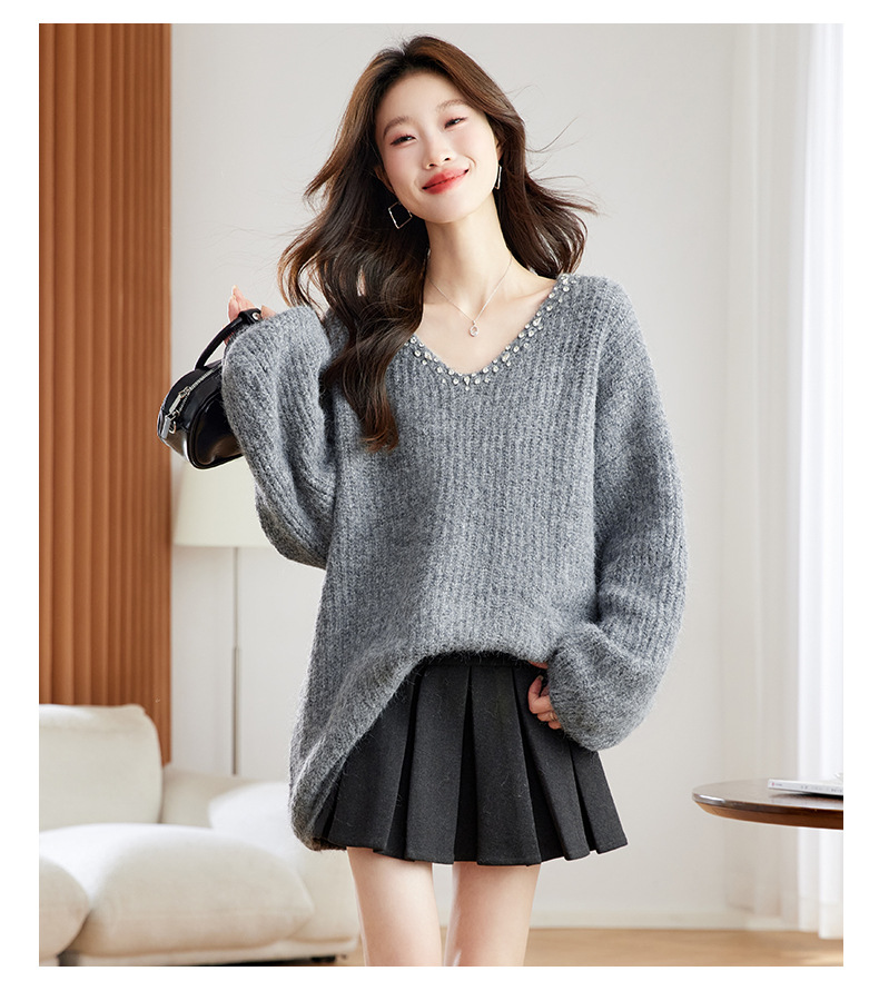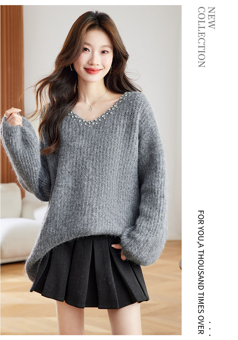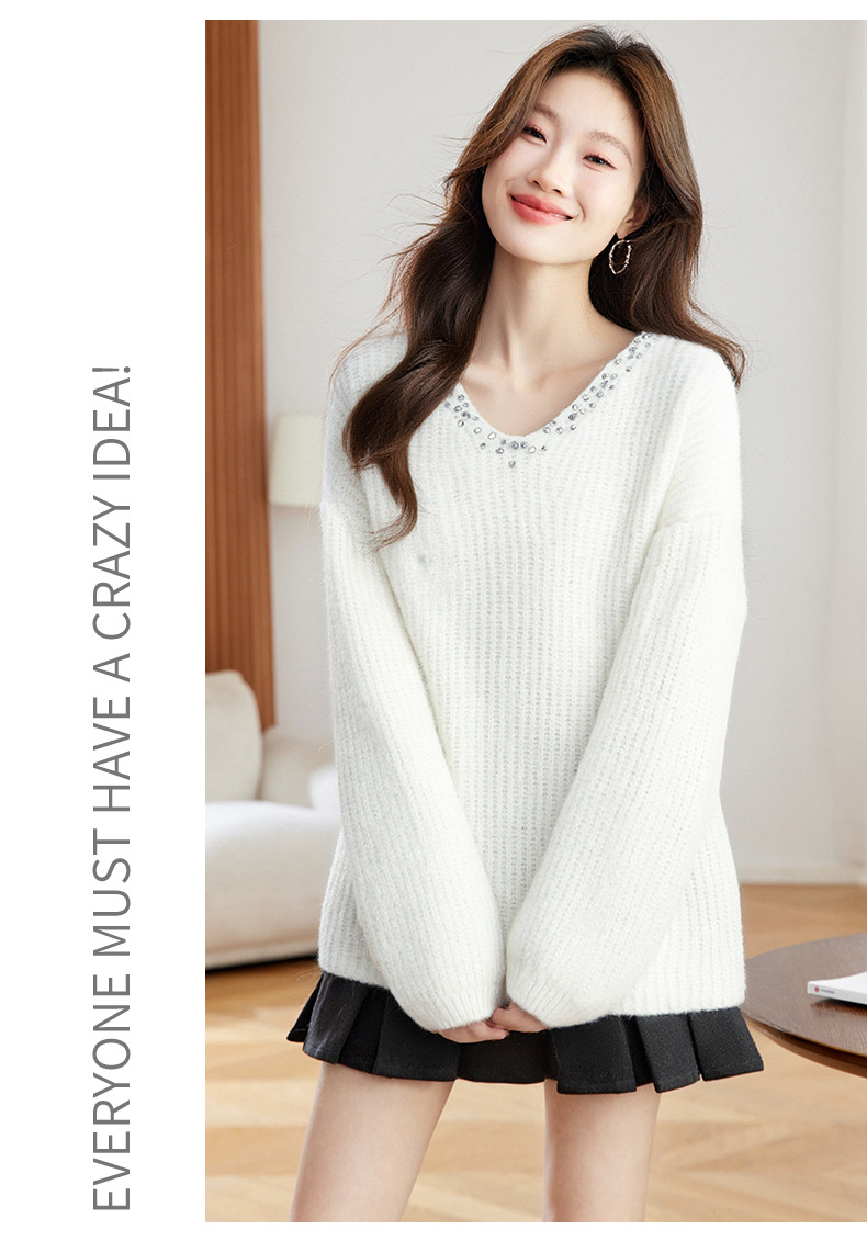 CC红色本命年慵懒风v领针织衫女秋冬大码宽松毛衣遮屁股小个子上衣