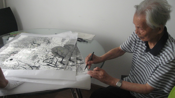 我用水墨,把握了线之刚劲与屈曲,用线构建前后层次,寓“疏”、“漏”于稠密之重叠交错中。