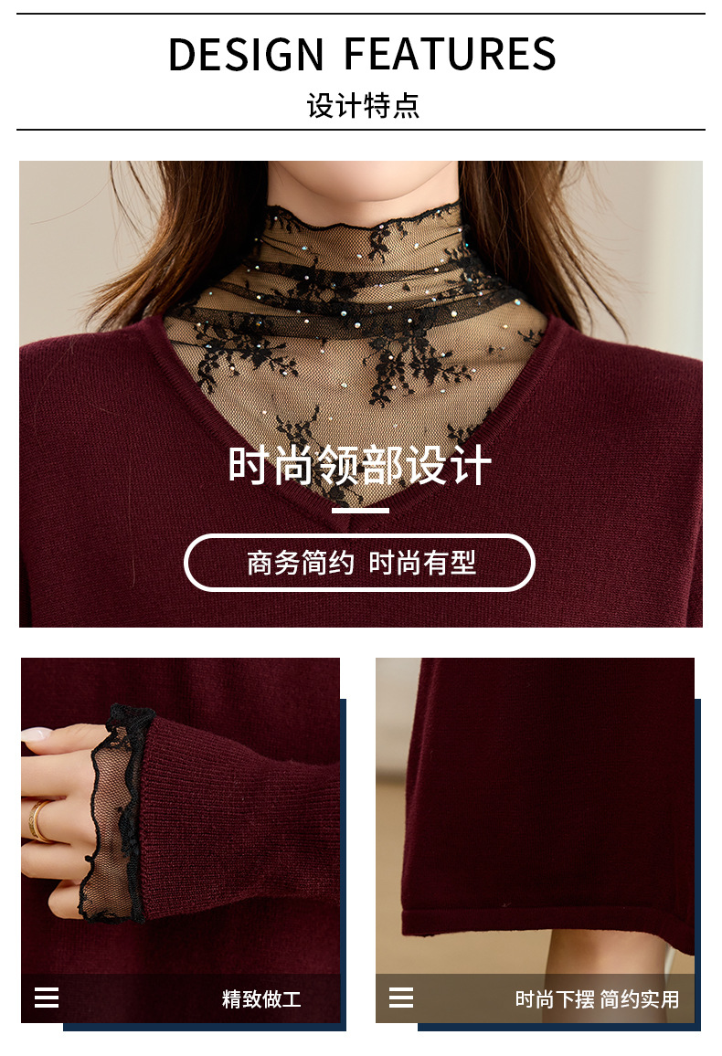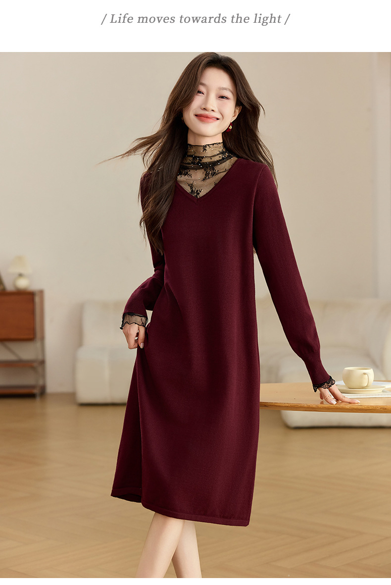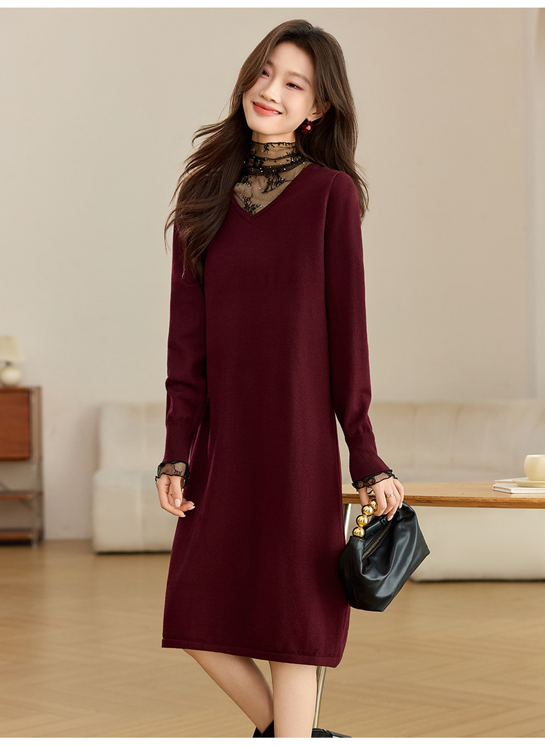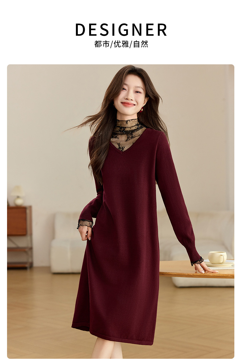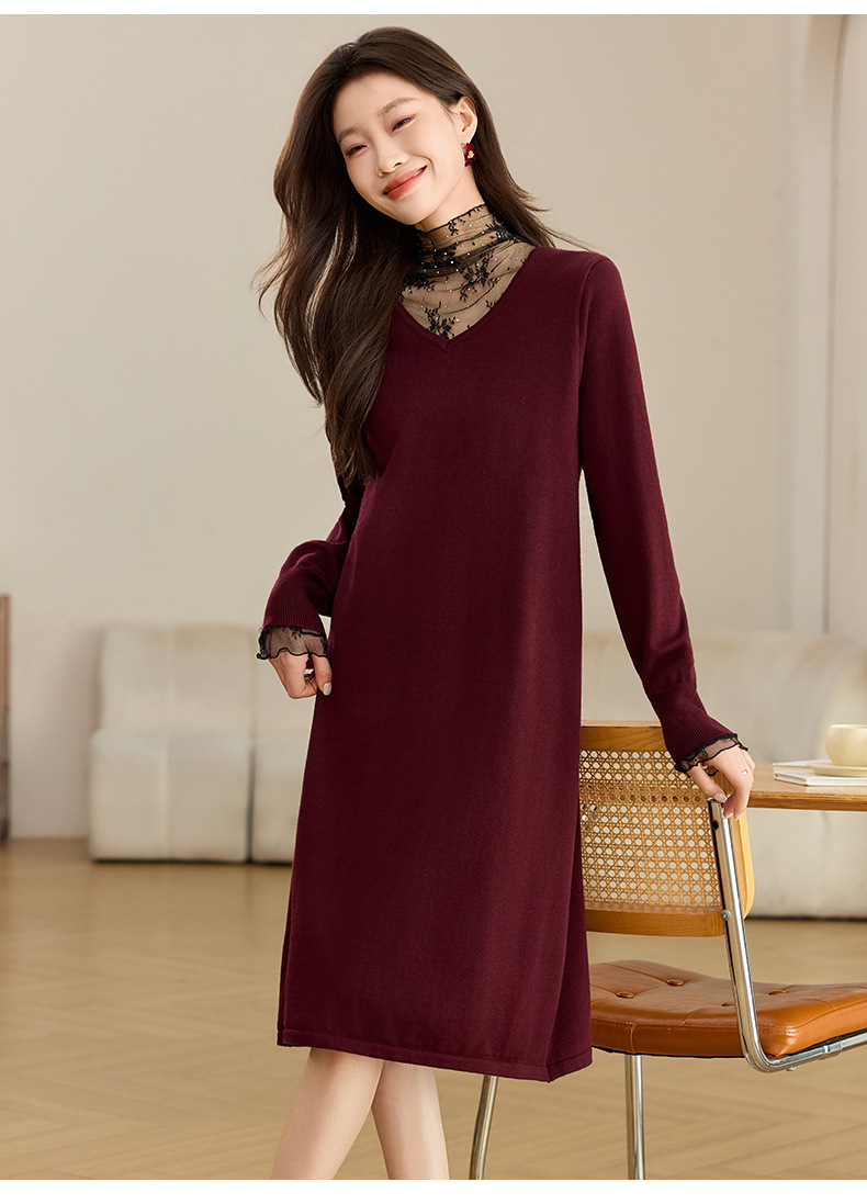 CC-XFY-2338蕾丝拼接毛衣连衣裙女中长款秋冬小个子配大衣内搭打底裙