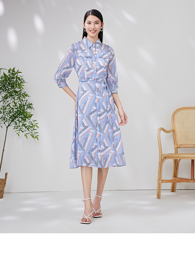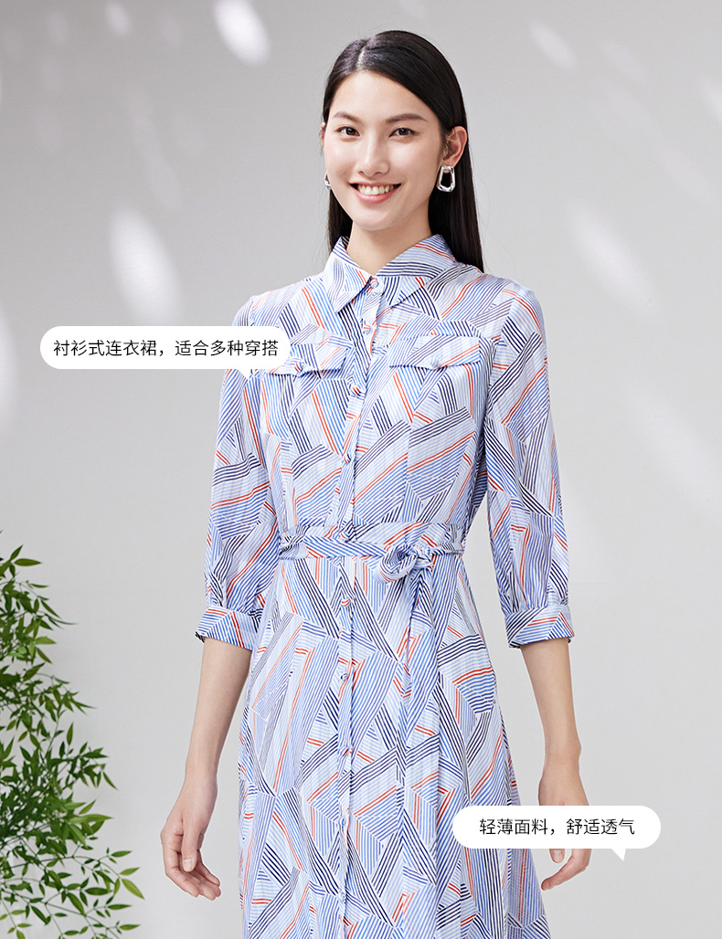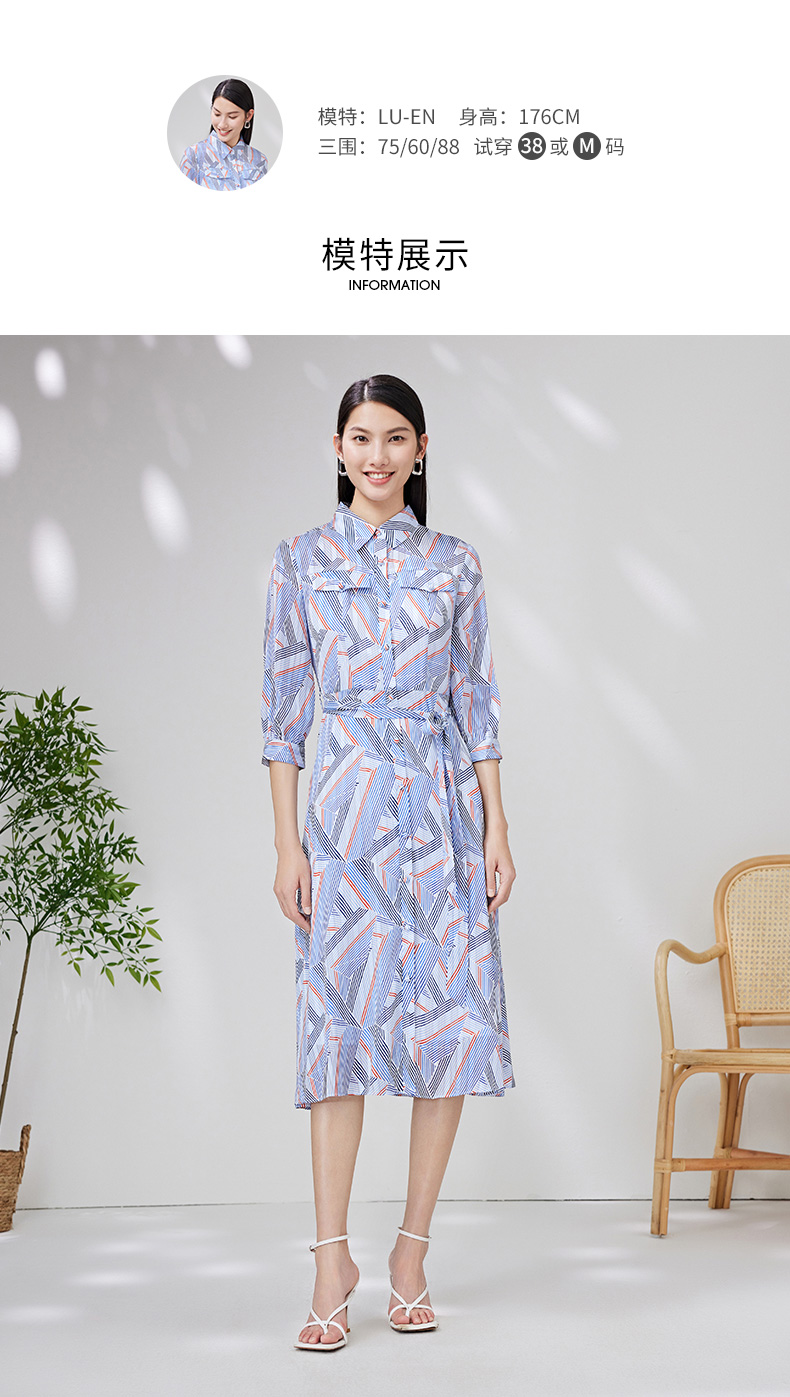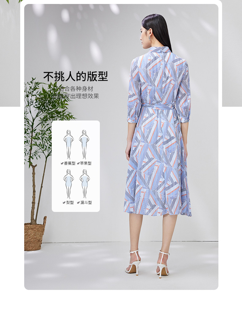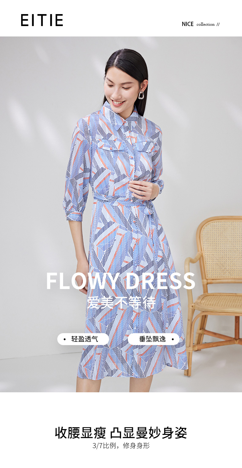 EITIE爱特爱夏季新款洋气显瘦几何印花通勤系带连衣裙7007736