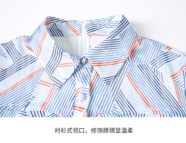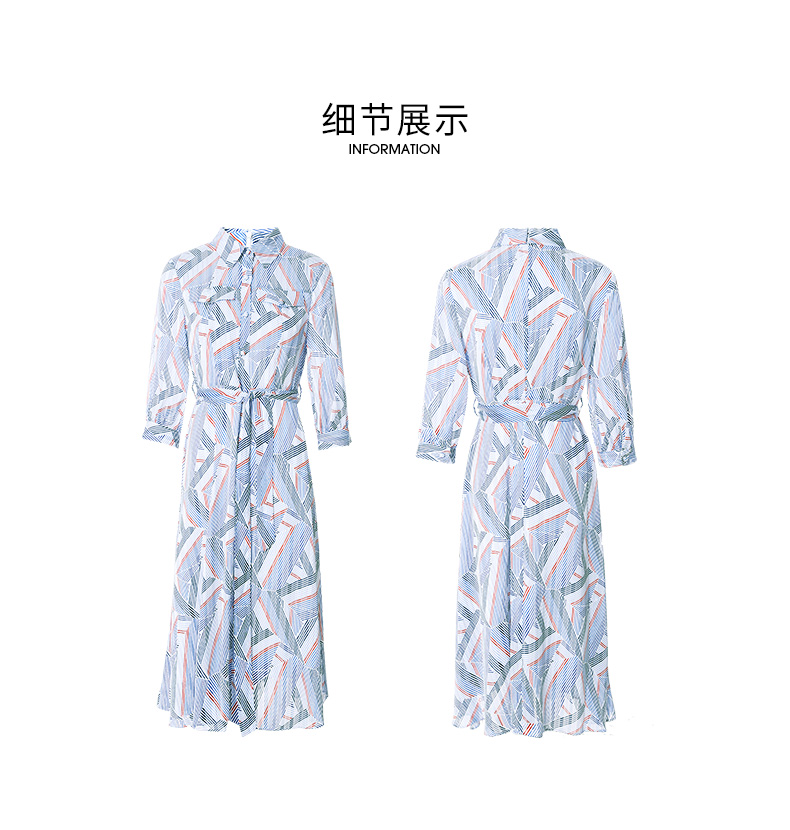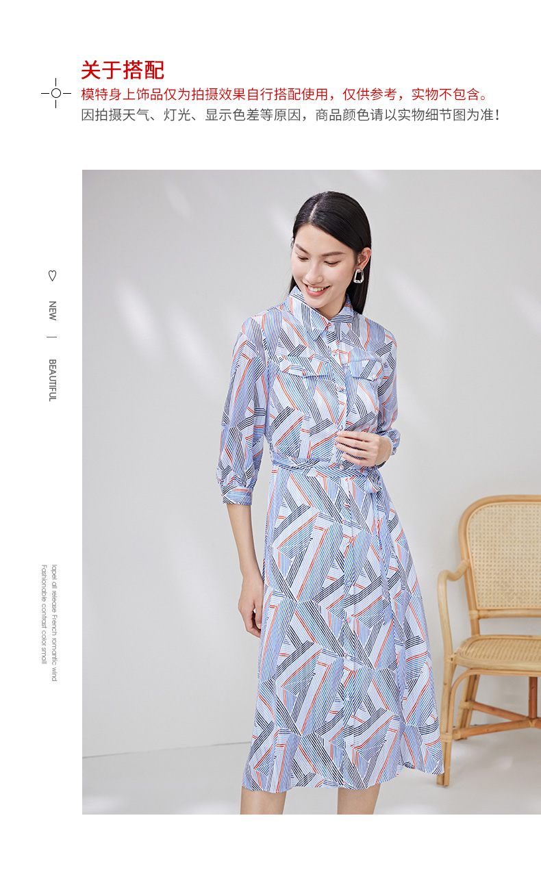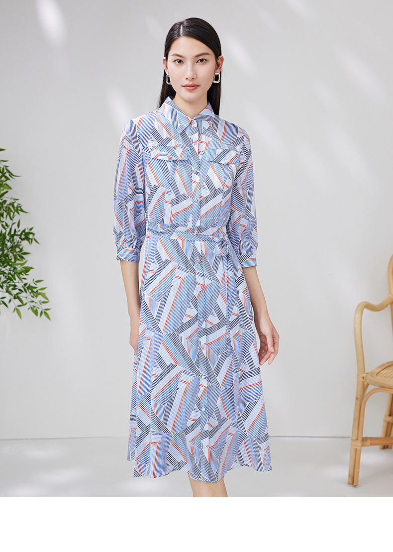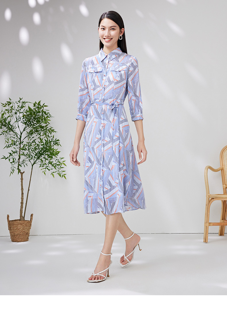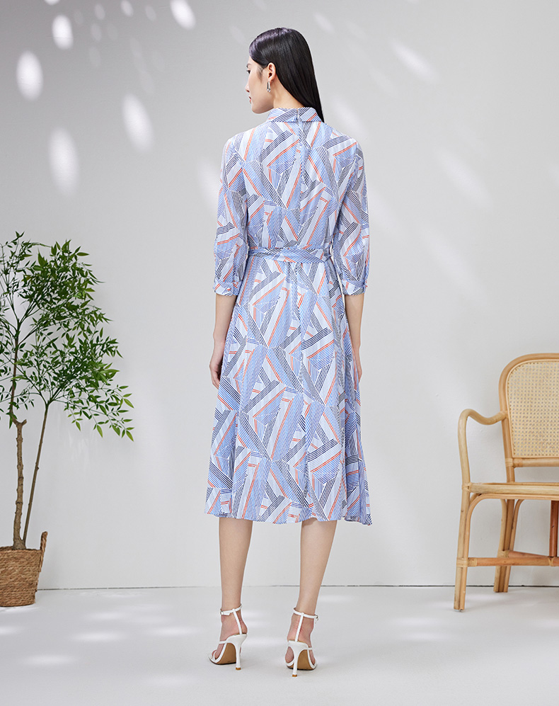 EITIE爱特爱夏季新款洋气显瘦几何印花通勤系带连衣裙7007736