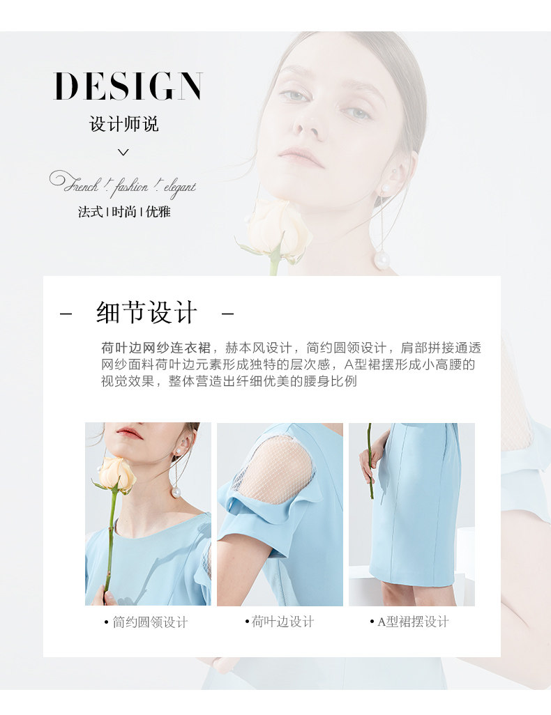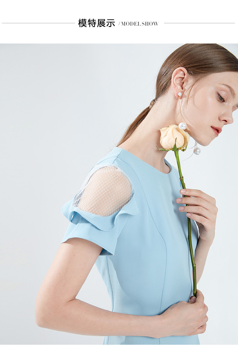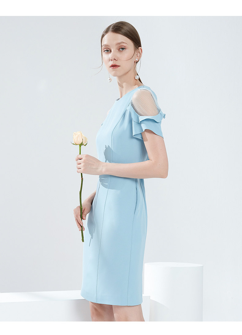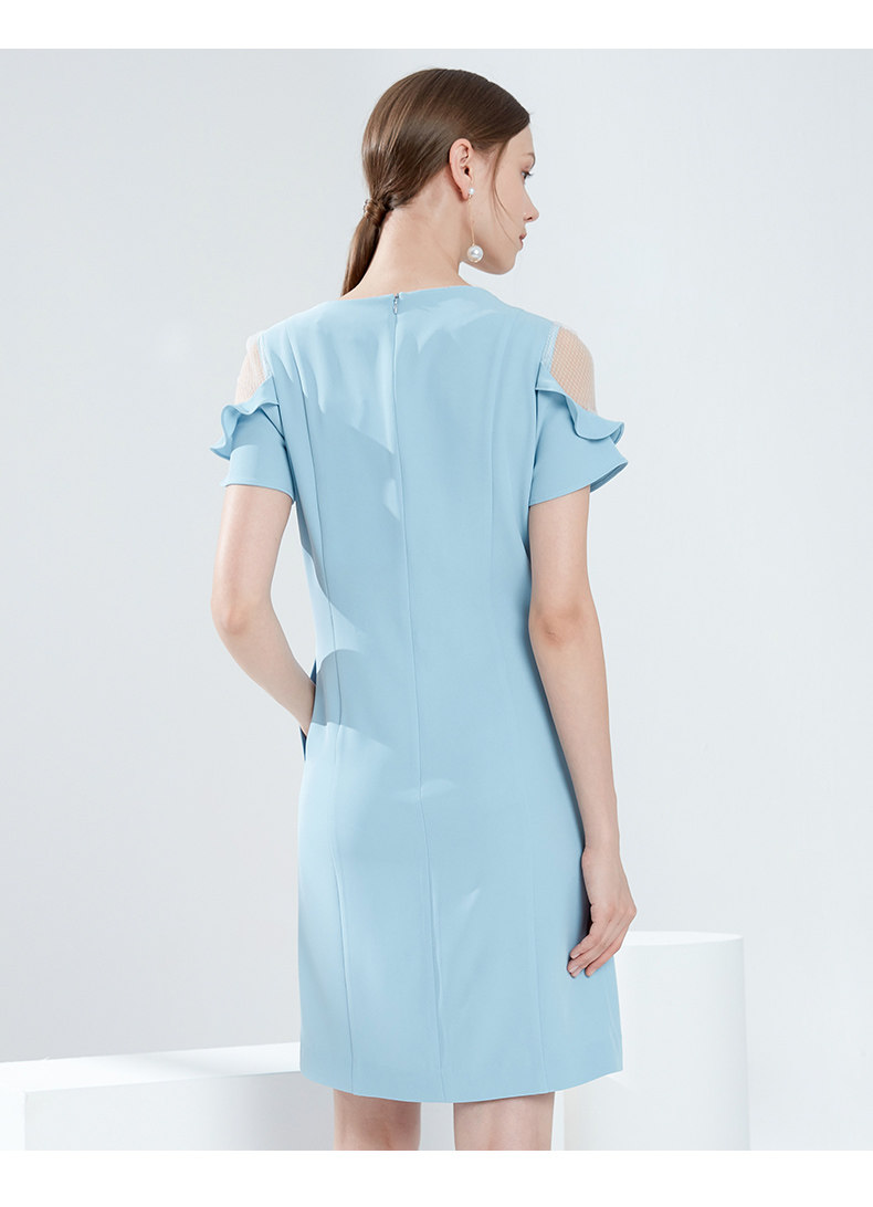 EITIE爱特爱女装夏季新款荷叶边短袖露肩圆领修身显瘦连衣裙B1907322
