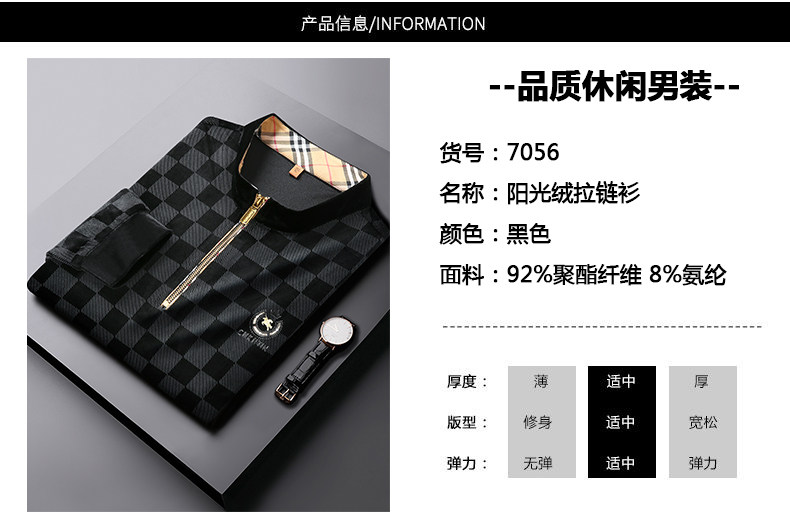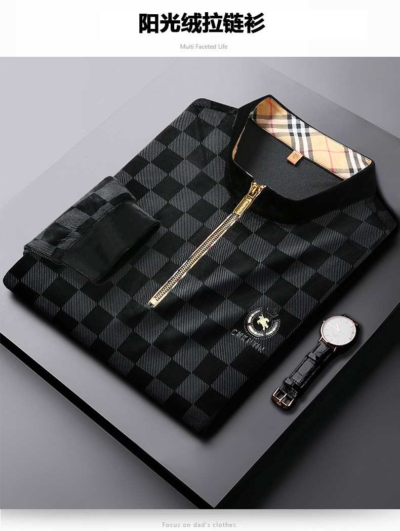 【DWP】大依优型大码男装半拉链阳光绒拉链衫休闲商务加肥加大码长袖上衣